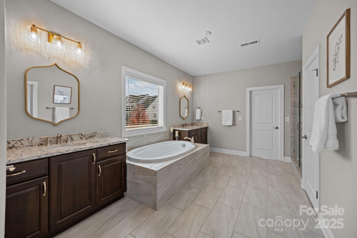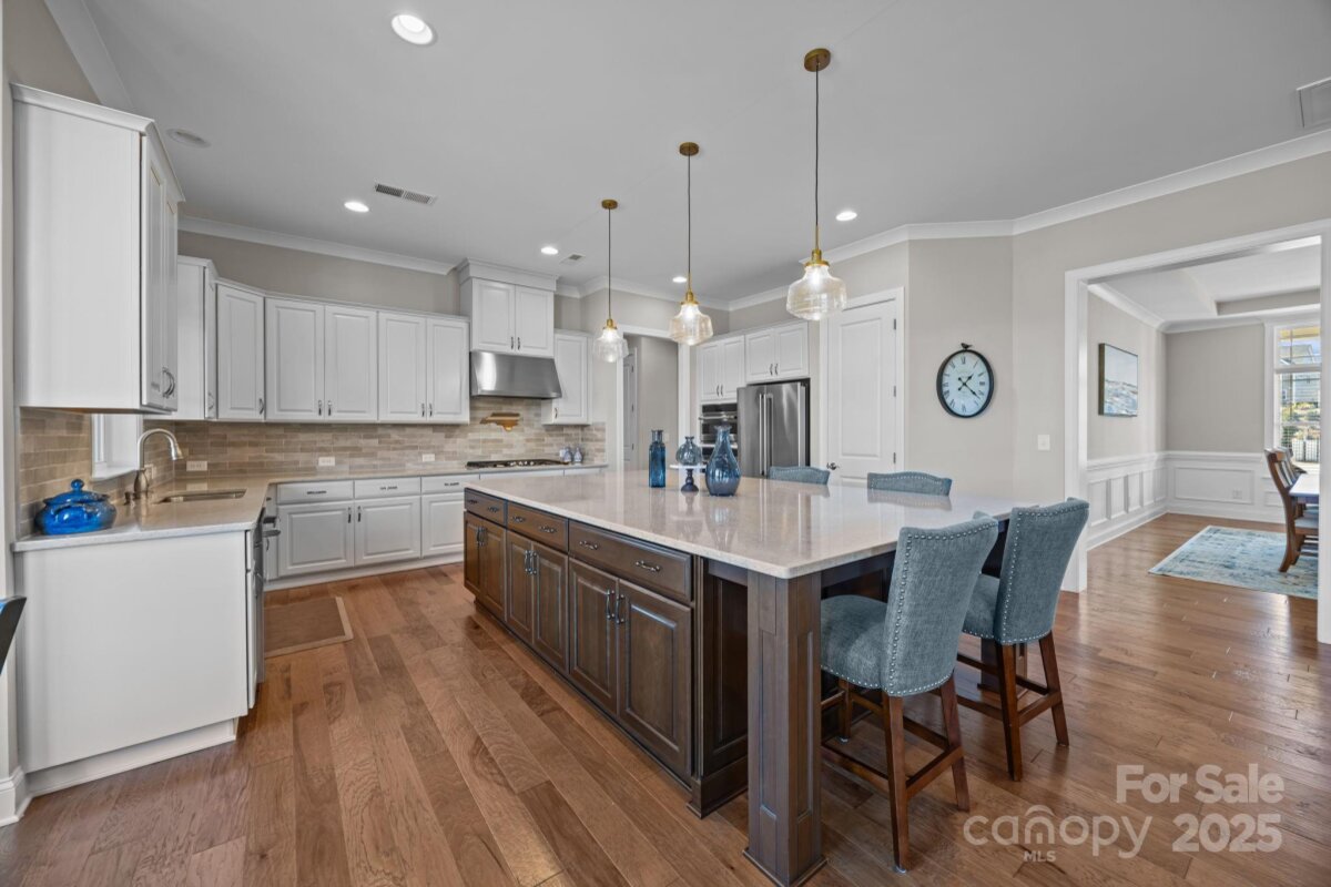 This is the one you’ve been waiting for - new dream house with incredibly landscaped 0.41 acre fenced yard in Hough HS and Bailey MS area! The backyard oasis of privacy, professional landscaped trees and flat space await you! This exceptional home offers 5 bedrooms, 4 full baths, 1 half bath and over 4,200 sq ft of open, light-filled living space. Two offices provide the perfect blend of home-work life balance with one on each level! The main level flows beautifully into both a screened porch and an open-air patio—ideal for entertaining or relaxing. Gourmet kitchen features oversized island, extensive cabinet storage, GE Cafe appliances and large walk-in pantry. Primary bedroom suite is complete with a light filled office. Primary bathroom features dual sinks, large soaking tub, elegant shower and dual closets with abundant space with professionally installed built-in shelving. This premium lot has an incredible private tree-lined landscaping plan with gorgeous flow, colorful flowering, unique plantings, stone and a flat area in the center. Yard includes pre-wire for a hot tub and drip irrigation. Paver stones surround the built-in Bull Outlaw 30" 4-burner outdoor gas grill! Enjoy evenings sitting around the built-in stacked stone Gas Fire Pit surveying your elegant paver stone patio which reaches to the garage and driveway. Additional highlights include a 3-car garage, spacious second-floor bonus room, and great finishes throughout including 10' ceilings. Black Aluminum 54" Fence encloses the backyard with 2 gates (front and side) and a gorgeous Dry River Bed. Residents of the sought-after Walden community of 377 homes enjoy access to amenities including a clubhouse, pool, playground, basketball hoop and picnic area. Ideally located near Lake Norman, I-77, Charlotte, restaurants, shopping and more. Trees include 29: Nellie Stevens Holly, Arbovitae, Little Gem Magnolias, Pink Dogwoods, Eastern Redbuds, Cherries, Plums, Crepe Myrtles, Cryptomeria, Sugar Maples, River Birch and Japanese Maple. Bushes/Shrubs: Limelight Hydrangea, Azalea, Sunshine Ligustrum, Kaleidoscope Abelia, Pink Muhley Grass, Tea Olive, Dwarf Loropetalum, Camellia, Dwarf Butterfly Bushes and Oak Leaf Holly. Seller is related to listing agent.