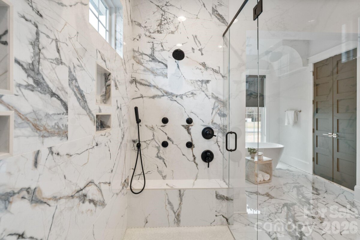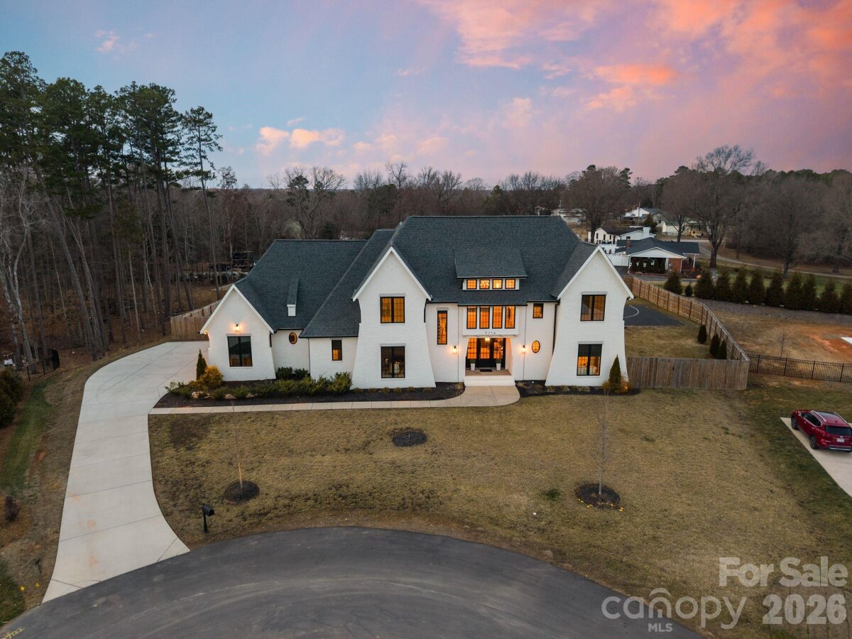 Experience luxury living on a rare 1-acre homesite in an exclusive enclave of just five custom homes. This over 4500 sq ft residence blends modern design with exceptional functionality, offering 5 bedrooms, 5.5 bathrooms, and multiple ensuite retreats ideal for multi-generational living or hosting guests in comfort. The main level features a stunning open-concept layout with vaulted ceilings, exposed beams, and a dramatic chandelier anchoring the great room. Oversized windows and sliding glass doors fill the space with natural light and create a seamless connection to the outdoor living areas. The primary suite is conveniently located on the main floor, providing privacy and ease of access. Upstairs, a spacious loft and a large bonus room offer flexible spaces for work, play, or media. Every bedroom is generously sized, with several featuring private ensuite baths. Step outside to your own private resort. The fully fenced backyard includes a sparkling pool, a half-court basketball court, and a screened-in porch perfect for year-round entertaining. Thoughtful landscaping, a manicured lawn, and custom hardscaping complete the outdoor experience. With its rare acreage, custom construction, and unmatched amenities, this Huntersville home delivers the space, privacy, and lifestyle today’s buyers are seeking.