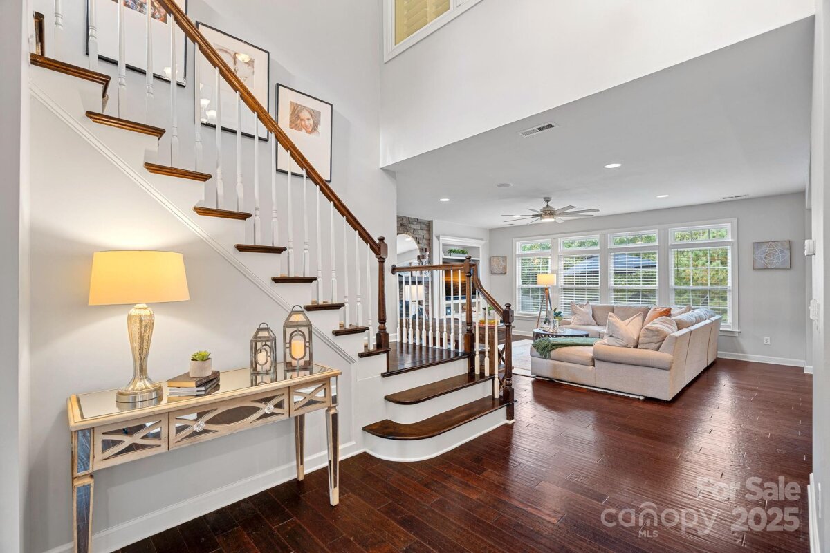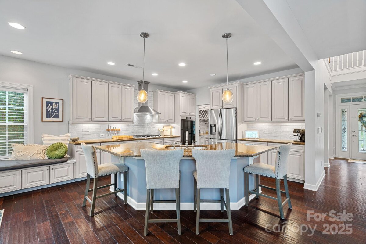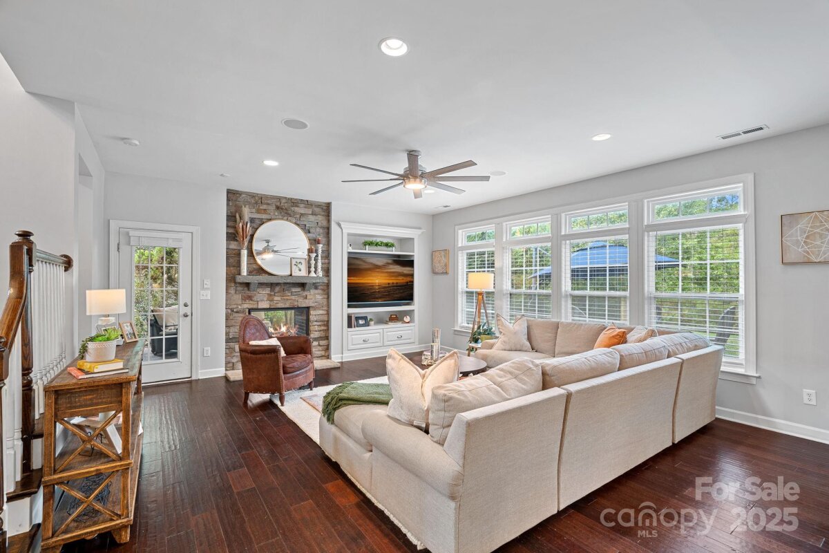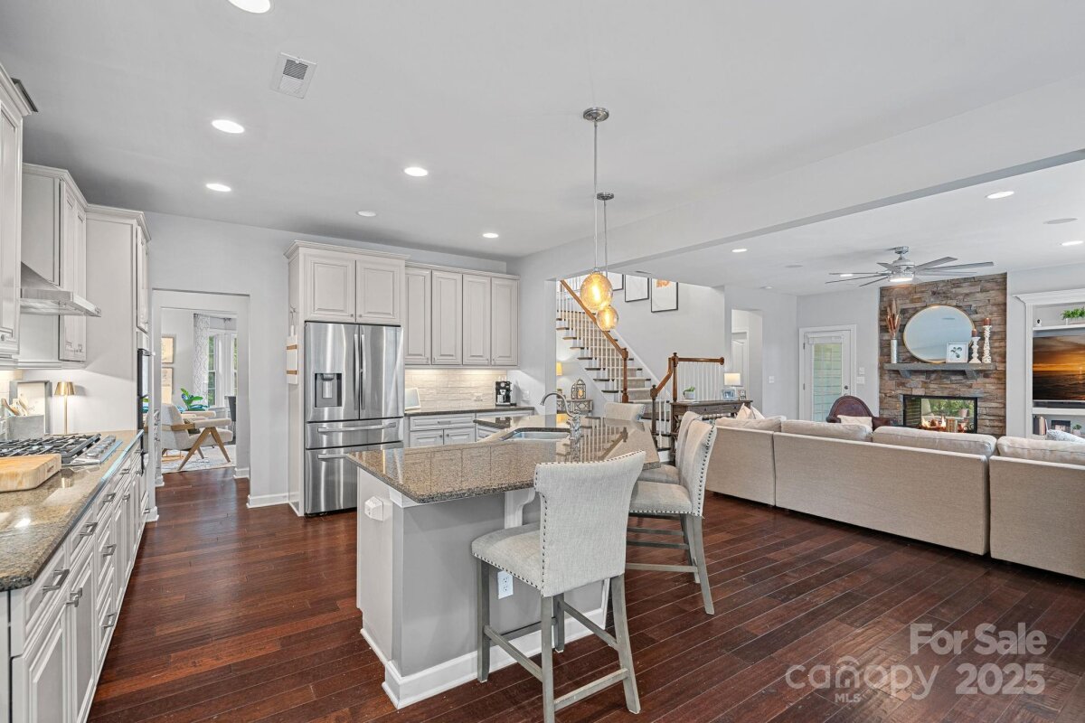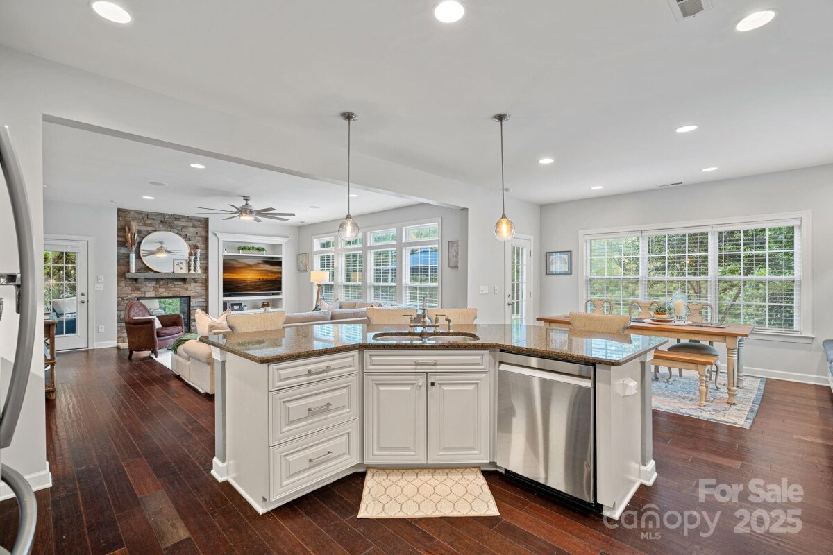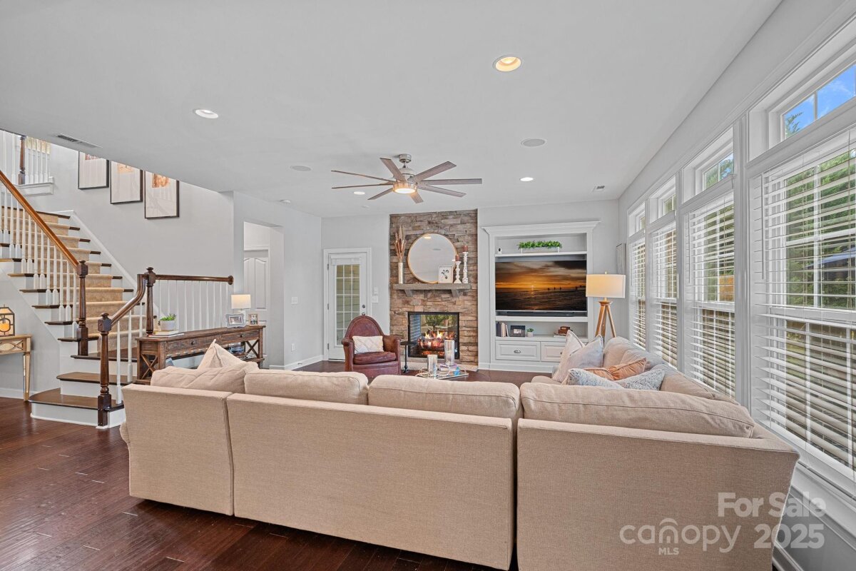 Tucked away on one of the most beautiful WATERFRONT lots in Audubon Lake, 1869 Still Water Lane offers the perfect blend of comfort, charm, and convenience. Overlooking a peaceful fishing pond and surrounded by trees bursting with autumn color, this move-in ready home feels like a private retreat—yet it's just minutes to Ballantyne, Blakeney, and Fort Mill. Step inside to a bright, open-concept layout ideal for everyday living and entertaining. The updated kitchen boasts brand-new stainless appliances, stylish backsplash, refinished cabinetry, and LED under-cabinet lighting—all seamlessly connected to a spacious family room with picture-perfect water views and a stunning double-sided stone fireplace that anchors both the living area and the covered porch outside. Upstairs, the luxurious primary suite features a spa-inspired bath and custom closet built-ins. Three additional bedrooms and a flexible bonus room offer the perfect setup for work-from-home, playroom, or guest space. Start your mornings with coffee on the porch as the sun rises over the pond, and unwind by the fireplace as golden sunsets reflect off the water. Community trails, a playground, and award-winning schools complete the lifestyle package. With recent upgrades throughout, scenic views, and the serenity of nature right in your backyard—this home is more than turnkey—it’s unforgettable. Don’t miss the attached features sheet—this one checks every box!