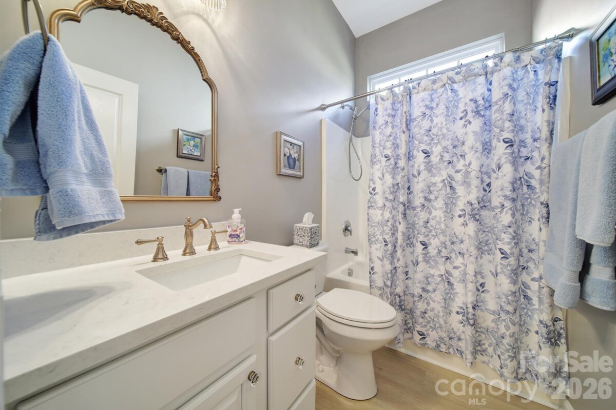 STUNNING! UPDATED! PRIME LOCATION! This beautiful home tucked away on a quiet cul-de-sac street is a must-see GEM! From the minute you walk in, graceful archways, architectural nooks, new white oak flooring, and exquisite molding exhibit timeless charm at every turn. This 3-bedroom, 3-bath home offers plenty of flexibility with a multitude of living areas including a flex space, ideal for an office, craft room or even a 4th bedroom. The spacious living room flows seamlessly into an open-concept dining area and features a cozy gas log fireplace and a wall of windows allowing for maximum natural light. Walk out the living room through french doors onto the screened-in porch with cooling ceiling fan and privacy shades. The updated kitchen has that WOW factor! Beautiful and functional featuring high-quality white cabinetry with roll-out shelves, stainless steel appliances, stunning tile work, eat-in dining space and an open archway that provides a lovely view of the main living area. The primary suite is conveniently located on the backside of the home overlooking the tranquil backyard. Featuring a trey ceiling, ensuite bath with dual vanities, glass shower and custom walk-in closet. Guest suite is situated at the front of the home with access to a full hall bath. Upstairs, you’ll find an additional suite with full bath and a loft - ideal for visiting guests or multi-generational living. Additional highlights include a generous walk-in attic, a large storage closet under the stairs, and an extra utility sink in the garage installed in 2025. Enjoy outdoor living at its finest on the expansive stone paver patio overlooking the thoughtfully landscaped yard featuring a new fence (2025), irrigation system with drip lines for newer plantings, and a convenient stone pathway from the front yard to the backyard. This charming home offers inviting curb appeal, mature landscaping, and tree-lined streets in the highly desirable Indian Land area. Within walking distance to the neighborhood pool, clubhouse, and local grocery store. Conveniently located to the new Target, Costco, YMCA, restaurants, medical and banking, this home combines comfort, style, luxury and an unbeatable location. ***Make sure to check out the FULL list of updates and upgrades in attachments.