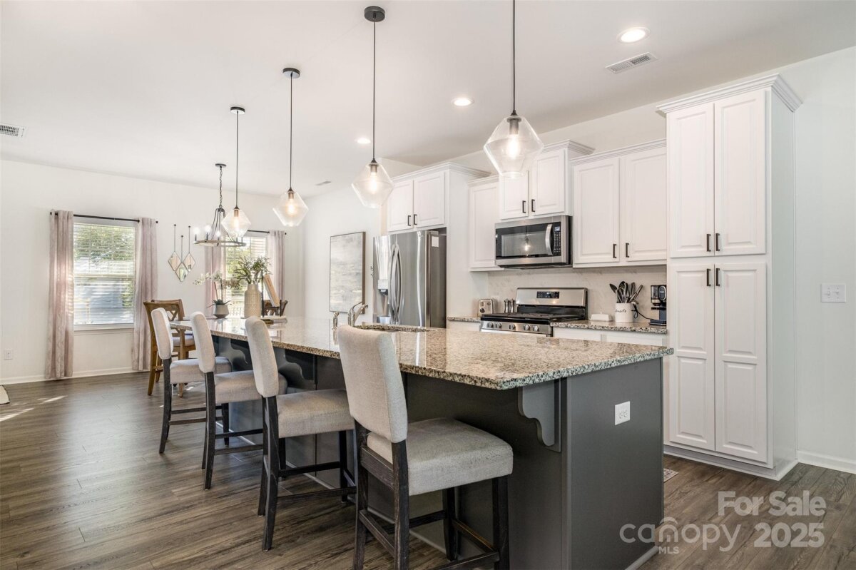 Honey stop the car!! This is a 3 bed/3 bath home in the desirable Prestwick community, you must see! You will love the open floor plan downstairs with a large kitchen island for entertaining. The beautiful kitchen is the focal point, with a separate dining area, and large living room you will love. On the main floor is a spacious master suite with a wonderful ensuite w/ double sinks and large walk-in closet. The laundry room is conveniently located downstairs. There are 2 add'l bedrooms upstairs with a full bathroom and a loft/flex space as well. Enjoy your evenings on the extra large outdoor paver patio in your private backyard perfect for entertaining. Location-Location-Location, with easy access to top-rated schools, shopping, & only 5 miles to the new Ballantyne Bowl or downtown Pineville.