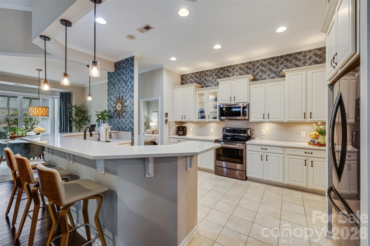Prepare to be impressed as you enter this immaculately maintained home with thoughtful upgrades at every turn and added touches like the Japanese maple in the front yard and stamped concrete on the front porch! When you walk through the front door, you’ll be wowed by the high ceilings, beautiful arches, custom accent wall, updated light fixtures, and rich hardwood floors throughout the main living areas. The beautifully updated kitchen features light, bright cabinets with both under- and over-cabinet lighting, subway tile backsplash, SS appliances and stunning quartz countertops & sink! The kitchen is open to the high-ceilinged living room, which boasts a stone fireplace with wood mantels that adds warmth and texture, and the large breakfast room with custom moldings. Rest and relax at the end of the day in the spacious main-floor primary suite, complete with a trey ceiling and bay window. The primary bath has updated ivory cabinets, and a deep tub & frameless glass shower, leading into an over-sized custom closet. The main floor layout is thoughtfully designed to include a secondary bedroom with full bath, home office or 3rd bedroom, and laundry room. The first floor windows have all been custom-tinted for energy efficiency. Step through the French doors to enjoy a peaceful retreat on the screened porch with large sliding glass windows that can make it a 4-season room. The back yard features a stamped concrete patio with a custom-made brown cedar pergola, tea olive trees, the calming trickle of a fountain, and fully fenced yard surrounded by fragrant jasmine for enhanced privacy. Upstairs you’ll find a large bonus room that could be a 4th bedroom with a full bath, walk-in closet and extra storage. Enjoy your favorite movies with surround sound! Additional features of this home include pull-out drawers in the kitchen and primary bath cabinets, as well as the pantry; a whole-house UV air purification system; central vacuum; widened driveway for ease of parking; irrigation system; natural gas line for your grill; and the entire house is carpet-free except for the stairway. The HOA dues even include lawn care and trash removal, making this home low-maintenance. Cobblestone is a "hidden gem" in Indian Land. It's a friendly community with sidewalks and tree-lined streets, where residents enjoy the community pool with cabana, clubhouse, and picnic area. Cobblestone is conveniently located near the new Costco and Target, nearby shopping at Hobby Lobby and other stores, several grocery stores, the YMCA and other fitness facilities, tons of restaurants, as well as health care and banks. Convenient to Charlotte with low SC taxes! Showings to begin on 3/5/26!