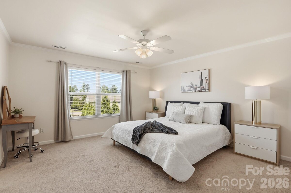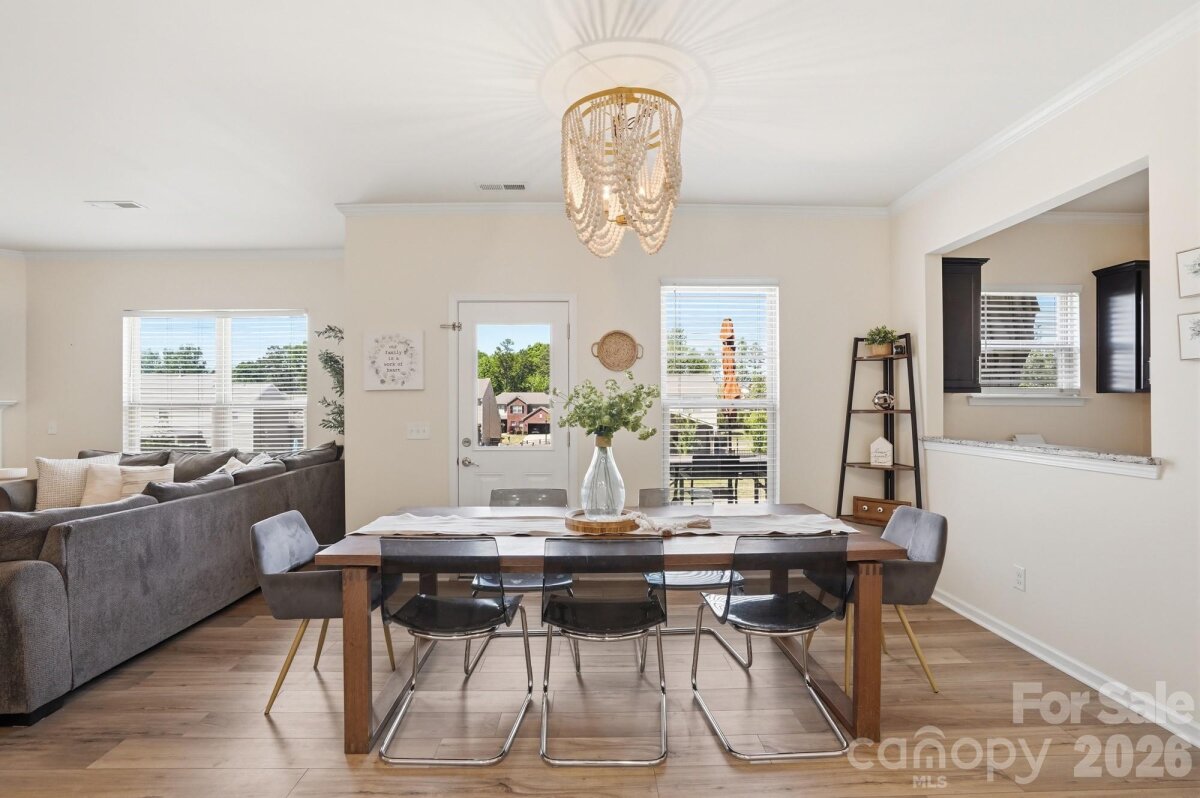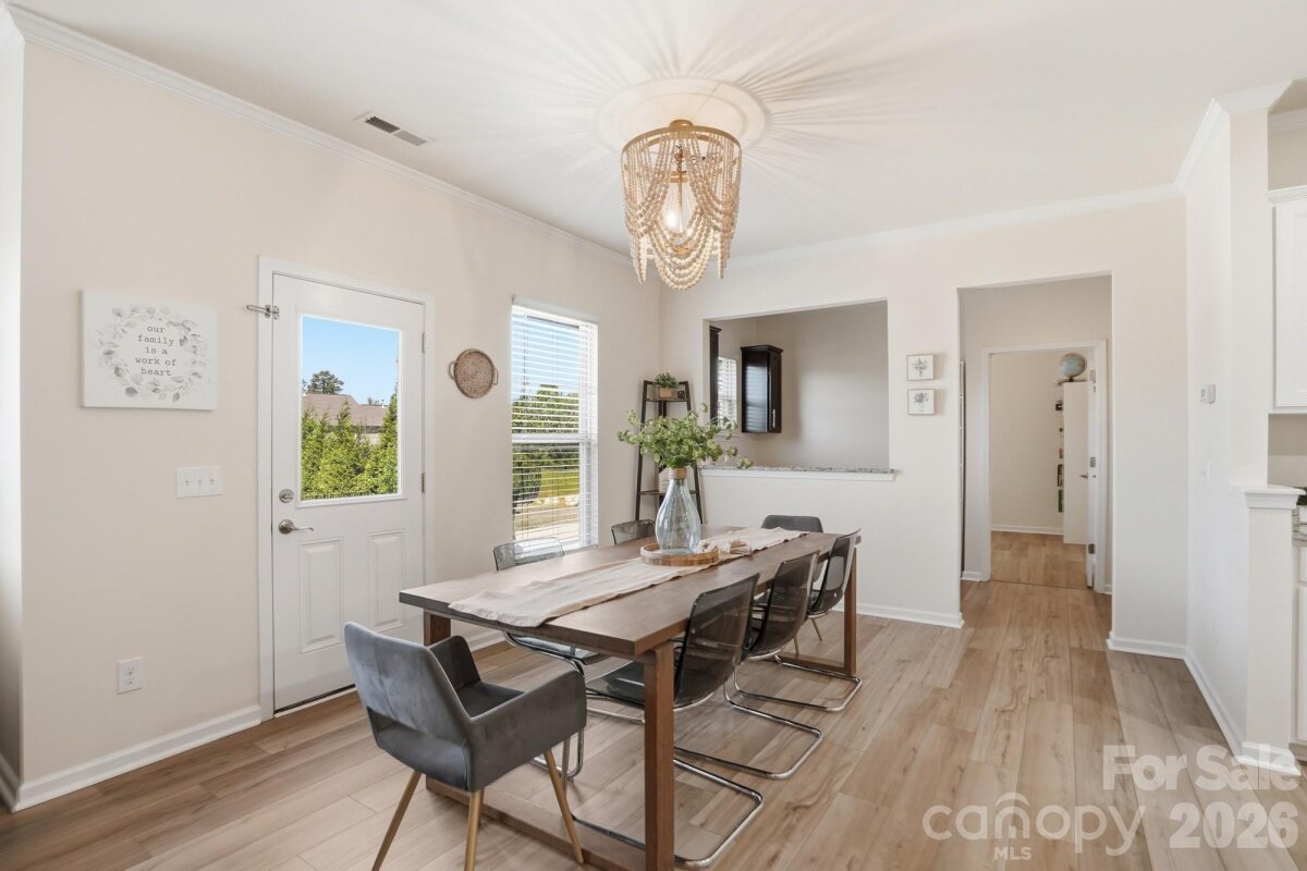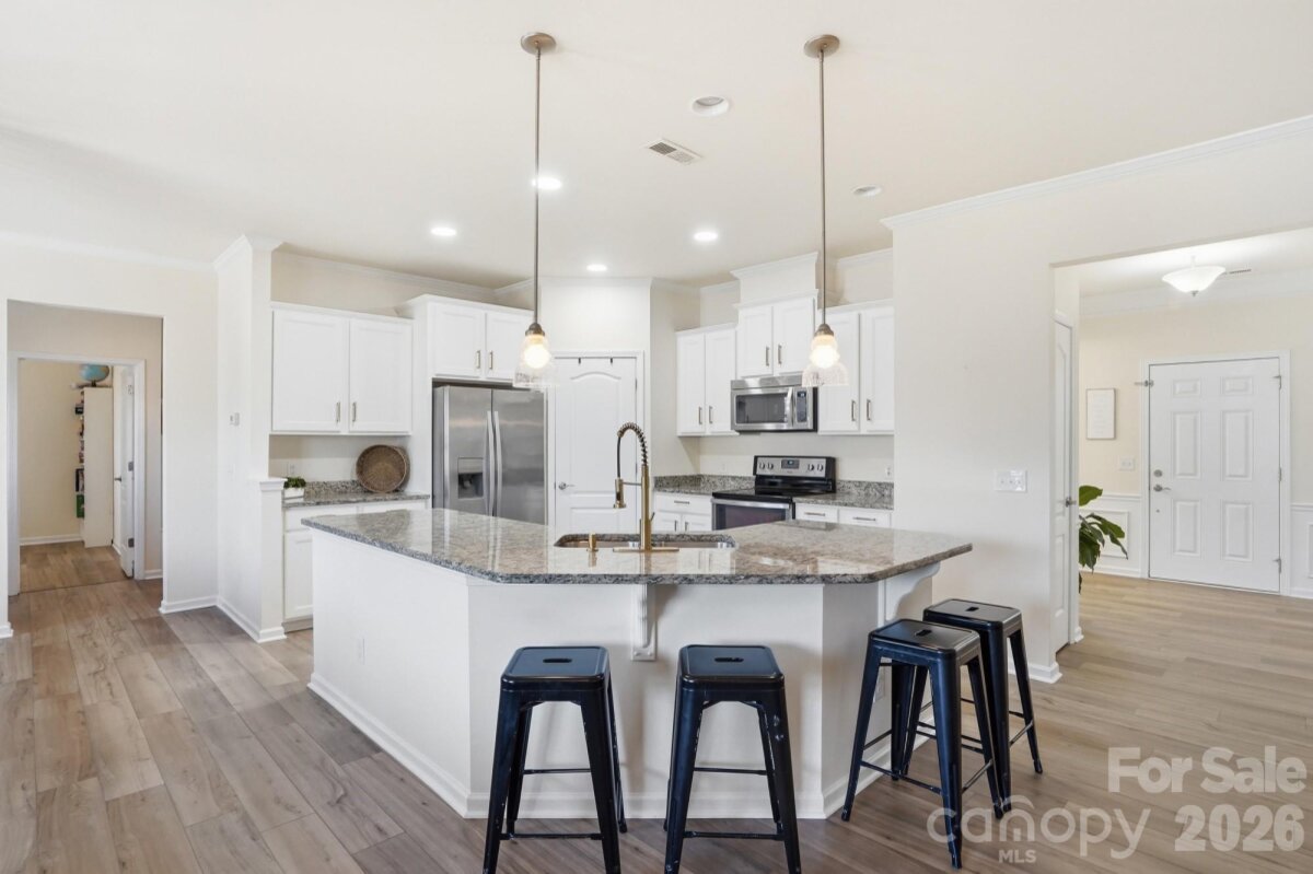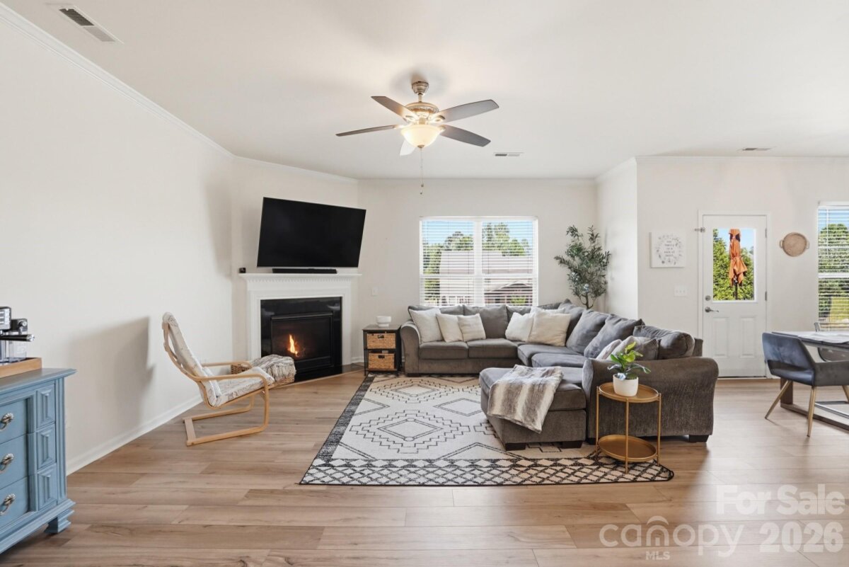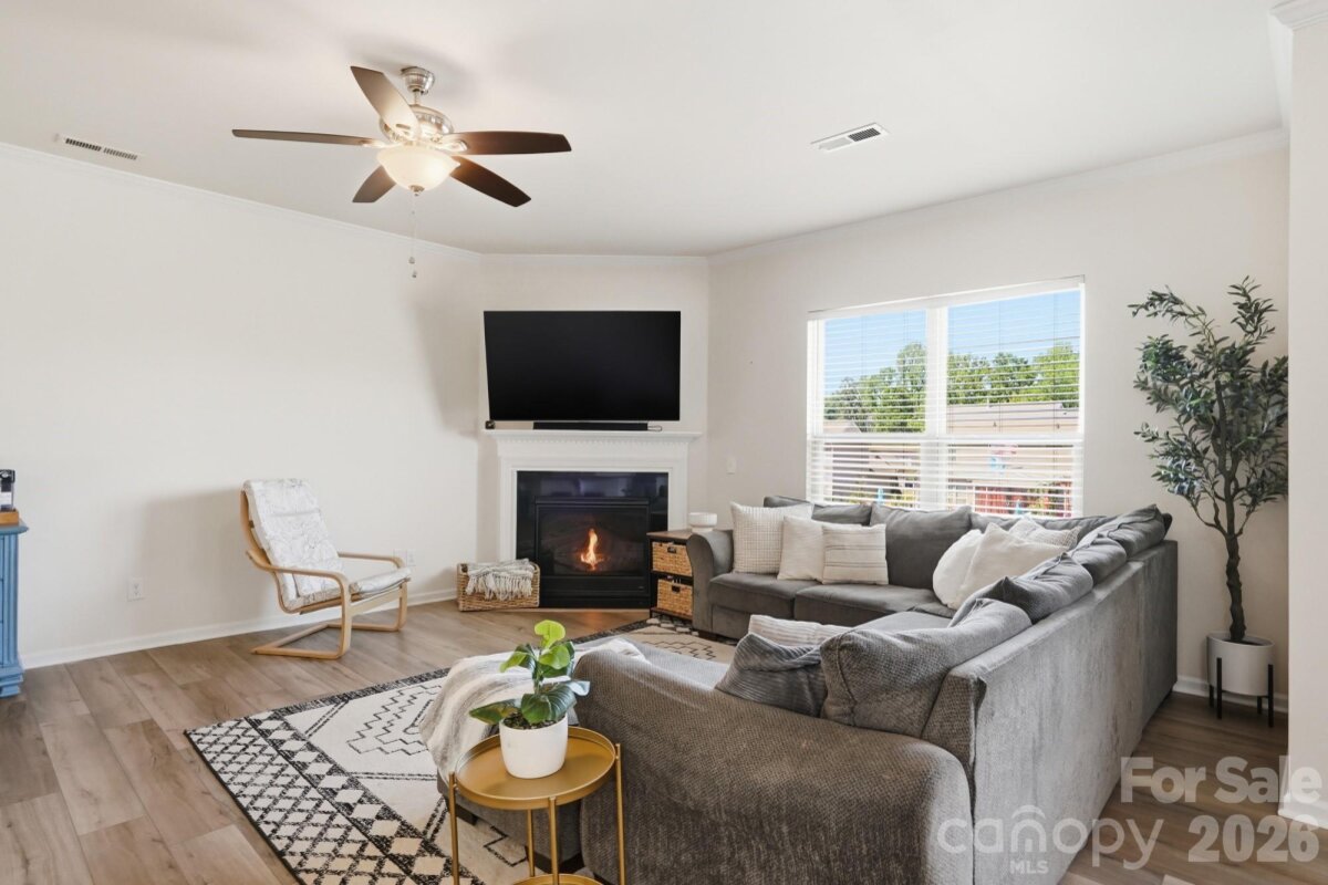 Beautiful 2-story home offering 4 bedrooms and 2.5 baths with an open, spacious floorplan. The main level features BRAND-NEW LVP flooring, a flex room, and a dedicated work-zone area—perfect for today’s lifestyle. The kitchen includes an island, FRESHLY PAINTED cabinets, a microwave with exterior venting, and a walk-in pantry, and it opens to the dining area and living room with a cozy gas fireplace. Upstairs, the primary suite is accompanied by three additional bedrooms and a convenient laundry room with a sink. Enjoy the fenced backyard with an extended patio—ideal for relaxing or entertaining. Located in a beautiful community with a fantastic location, and the pool, playground, and picnic area are just across the street.