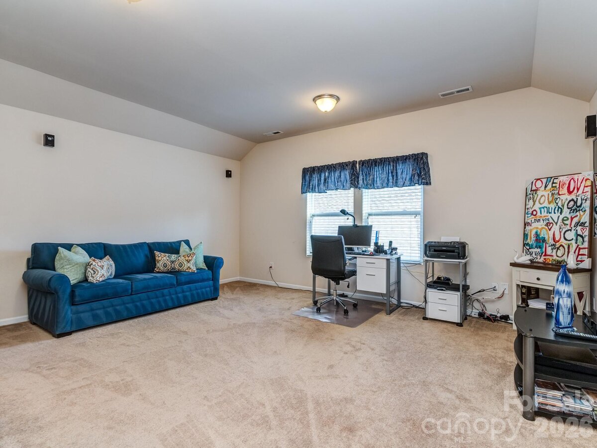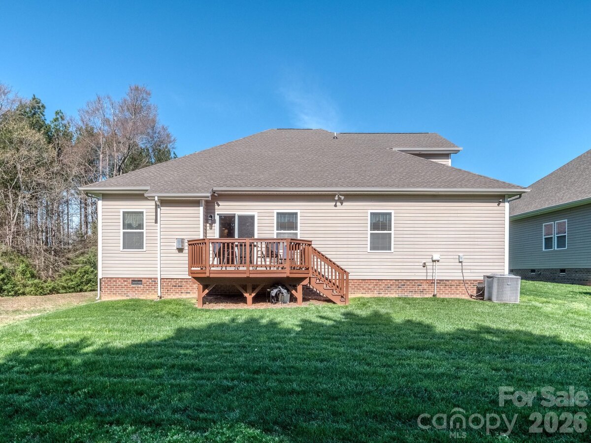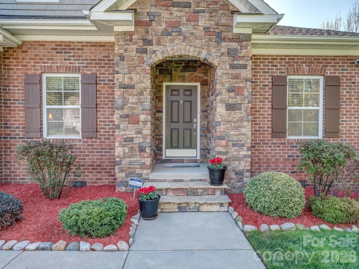 Lifestyle meets private serenity in Chastain Village! Lovely single-owner 4 bedroom 3.5 bath ranch home (upstairs bonus/bedroom & full bath) in this charming amenity neighborhood located close to the NC/SC line. The owners have meticulously cared for this home and it is in beautiful condition. Features include a NEW ROOF LATE 2025, full irrigation system, open floor plan, spacious kitchen with gas cooktop & breakfast bar, main level primary with huge walk-in closet, dining room & office/LR, versatile upstairs bonus room with a full bath, a covered front entry and a rear deck to enjoy the spring season's wooded display and bird life. Low maintenance with brick, stone & shake-shingle front. Uniquely situated on a private cul-de-sac lot backing up to a $1M+ estate and adjoining HOA common area acreage, owners enjoy peace and quiet in a smaller subdivision setting with a community pool, cabana, street lights and sidewalks. Terrific Indian Land schools and proximity to dining, shopping and entertainment in Ballantyne or the 521 corridor.
