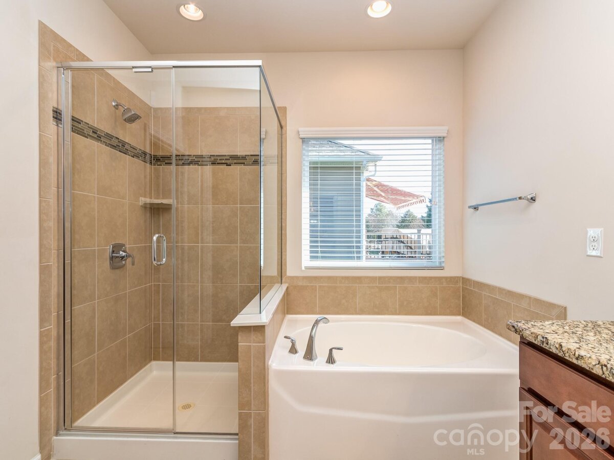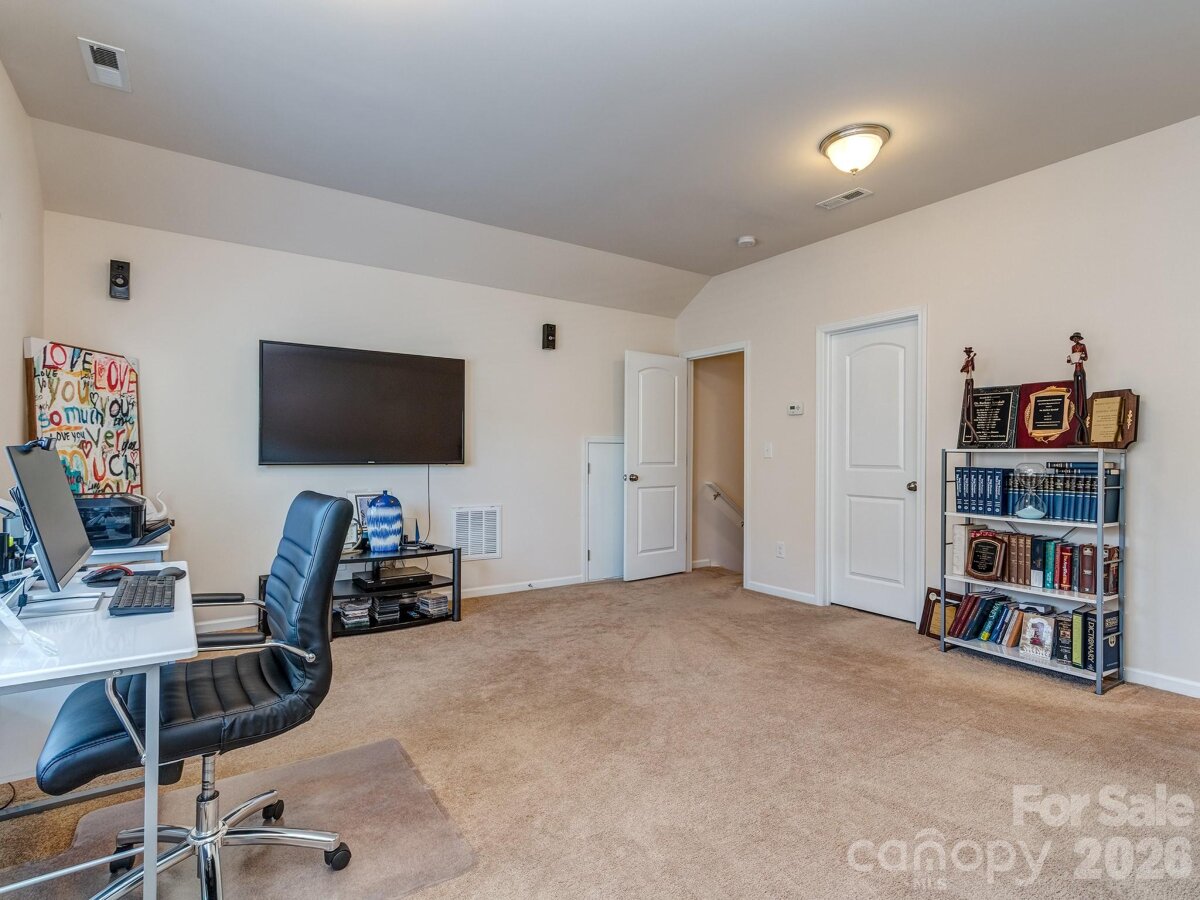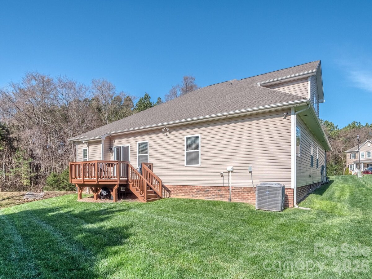 Lifestyle meets private serenity in Chastain Village! Lovely single-owner 4 bedroom 3.5 bath ranch home (upstairs bonus/bedroom & full bath) in this charming amenity neighborhood located close to the NC/SC line. The owners have meticulously cared for this home and it is in beautiful condition. Features include a NEW ROOF LATE 2025, full irrigation system, open floor plan, spacious kitchen with gas cooktop & breakfast bar, main level primary with huge walk-in closet, dining room & office/LR, versatile upstairs bonus room with a full bath, a covered front entry and a rear deck to enjoy the spring season's wooded display and bird life. Low maintenance with brick, stone & shake-shingle front. Uniquely situated on a private cul-de-sac lot backing up to a $1M+ estate and adjoining HOA common area acreage, owners enjoy peace and quiet in a smaller subdivision setting with a community pool, cabana, street lights and sidewalks. Terrific Indian Land schools and proximity to dining, shopping and entertainment in Ballantyne or the 521 corridor.