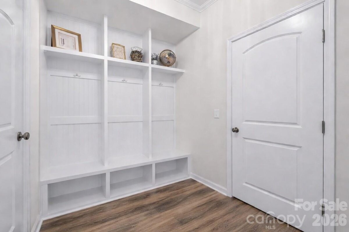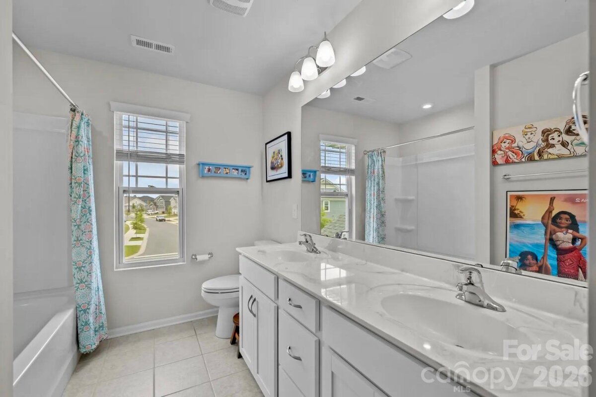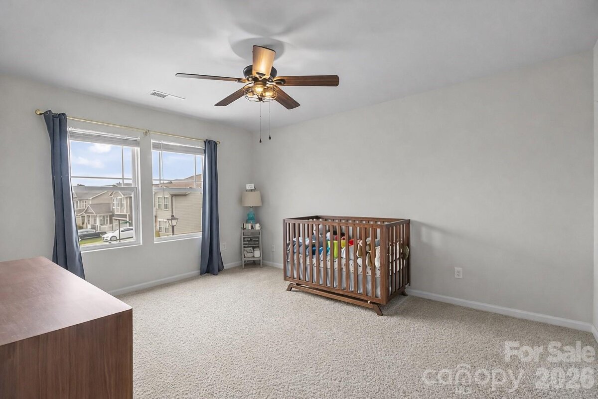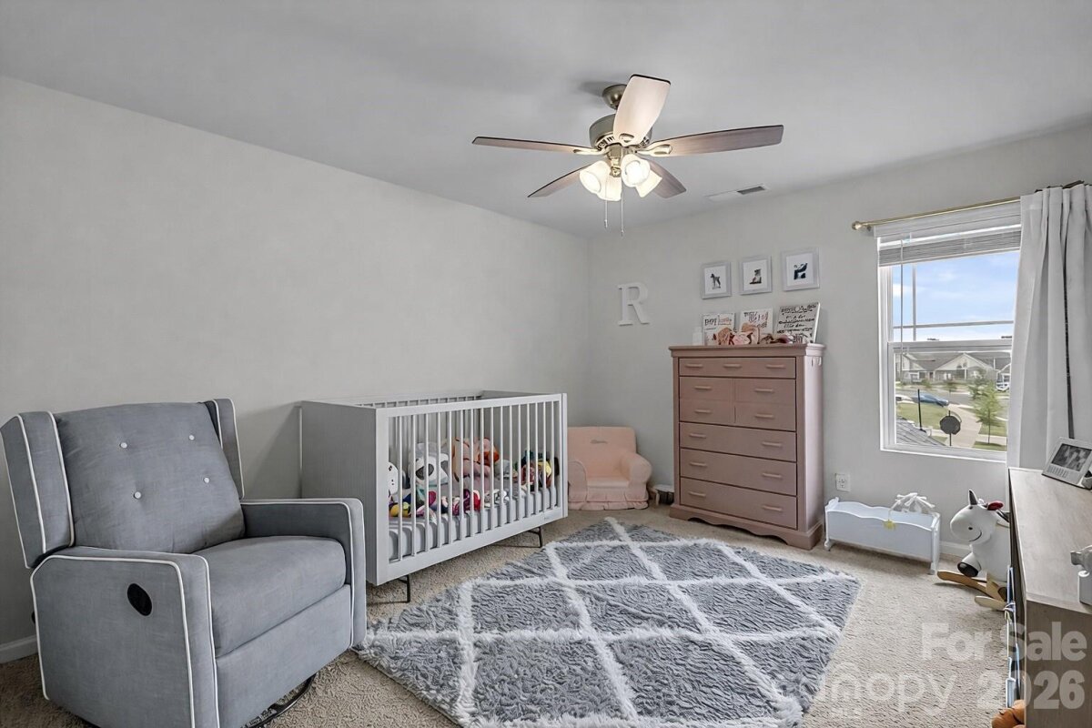 Welcome to this stunning 5-bedroom, 3.5-bath home nestled on a quiet cul-de-sac, offering direct access to scenic nature trails and exceptional community amenities. The fully fenced backyard backs to a peaceful wooded area, creating a private outdoor retreat complete with a spacious covered porch, extended patio, and relaxing hot tub—perfect for entertaining or unwinding. Step inside to an inviting open-concept floor plan designed for modern living. The gourmet kitchen is a true centerpiece, featuring a massive island with breakfast bar seating, granite countertops, and smart appliances, all overlooking the cozy family room with a gas fireplace. Additional highlights on the main level include a functional mudroom, generous drop zone, and an oversized pantry for ample storage. Downstairs, you will find a private in-law suite, including a bedroom and full bath - ideal for guests or multigenerational living. Upstairs, there is a versatile loft space that is ideal for an additional living room and/or play area. Also on the upper level is the luxurious primary suite which boasts a tray ceiling, elegant chandelier, and expansive walk-in closets. Throughout the home, you’ll appreciate refined details such as crown molding, modern lighting, updated flooring, and a whole-home air purification system. Spacious secondary bedrooms and a large laundry room with abundant storage complete the interior. Enjoy resort-style living in a vibrant community offering a pool, clubhouse, playground, sidewalks, street lights, walking trails, and volleyball court with various social activities. Located in a highly sought-after school district and just minutes from major highways including I-485, this home combines comfort, convenience, and style in one exceptional package. **Note: Roof Condition is good. It is a 30-year architectural shingle roof on year 6. **Note: HVAC system has smart thermostats. Room Info: **Main level rooms include: Family Room, Dining Room, Half Bath, Kitchen with Breakfast Nook and Island Seating, Dining Room, Drop Zone, In-Law Suite with Bedroom and Full Bath. **Upper level rooms include: Bonus Room/Loft Area, Primary Suite with Bedroom, Dual Walk-in Closets and a Spa-Like Bath, 3 Additional Bedrooms, another Full Bath, and Laundry Room.