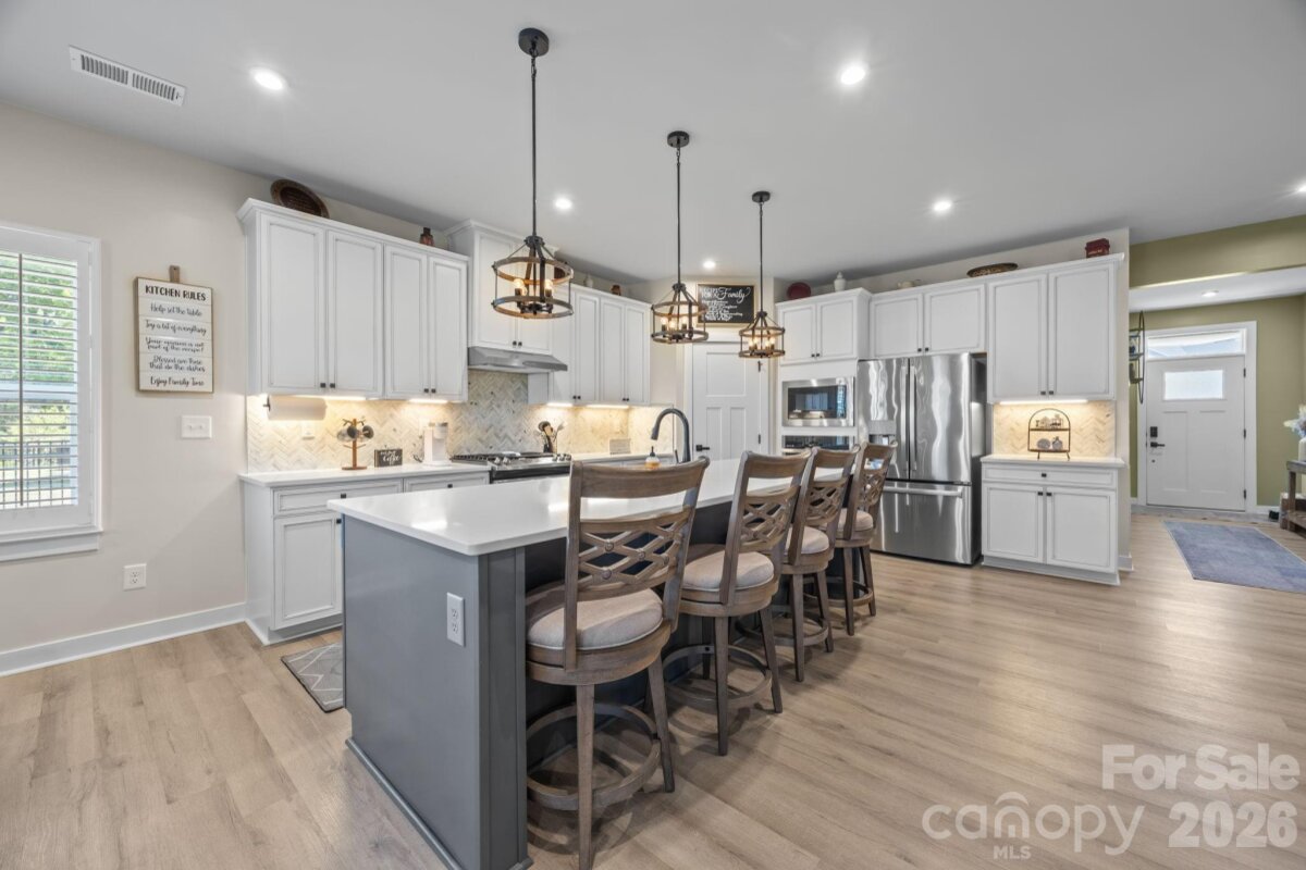 Welcome home to this inviting property featuring a functional layout and comfortable living spaces, perfect for everyday living and entertaining. The bright main living area flows into a well-positioned kitchen with ample storage, generous prep space, two separate ovens, plus a dining area ready for gatherings. The primary suite offers a private retreat, while additional bedrooms and bonus space provide flexibility for an office, guests, or play. Step through charming sliding barn doors to enjoy the backyard, complete with a back patio and screened-in patio—ideal for relaxing or hosting. Conveniently located near Sun Valley Commons, Weddington Corners, and I-485 for easy access to shopping, dining, and commuting.