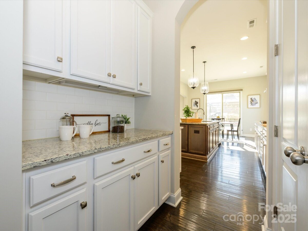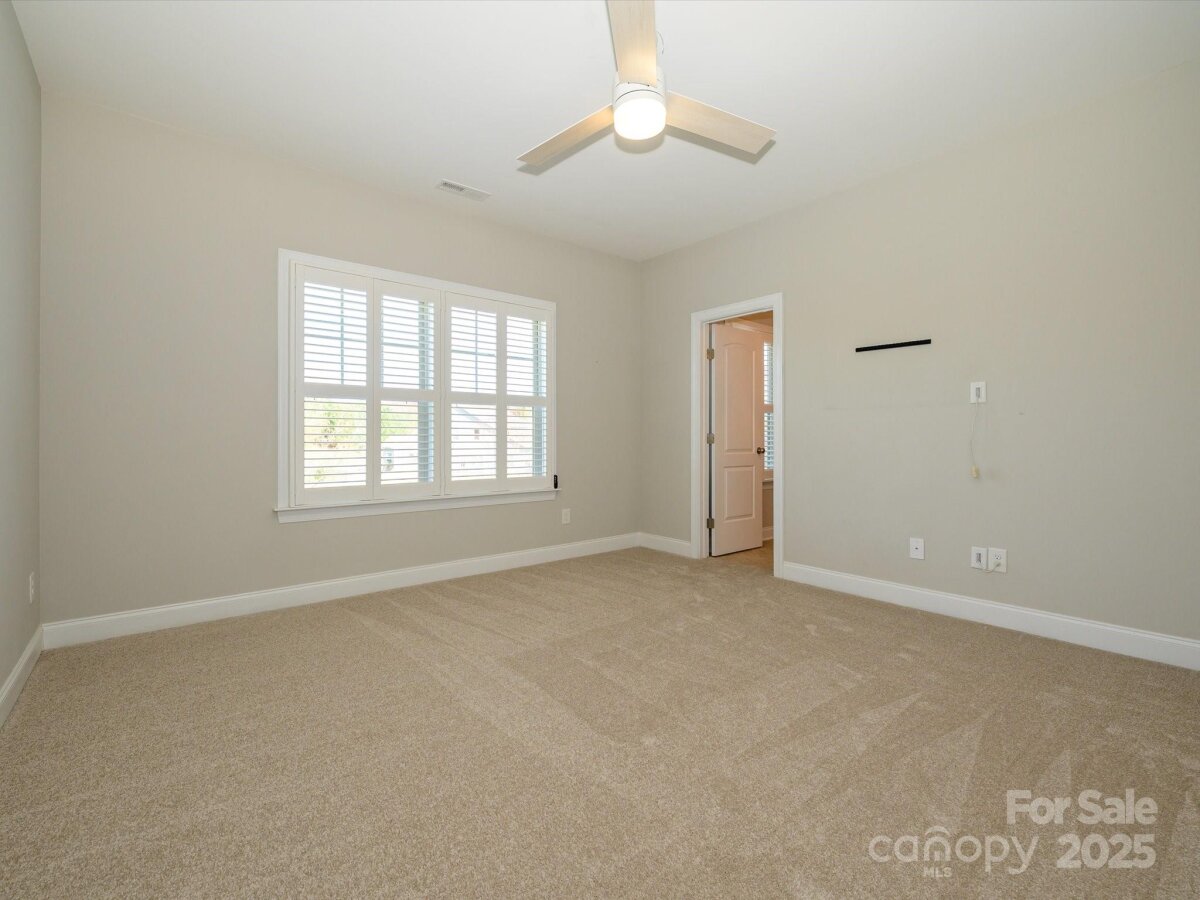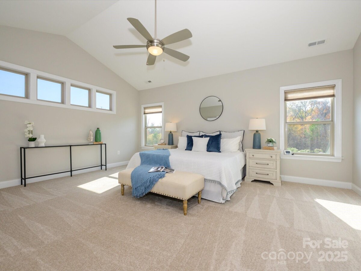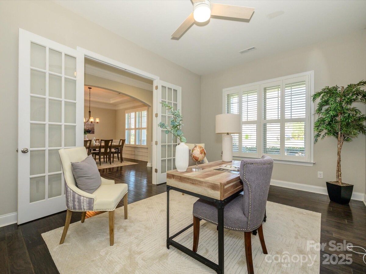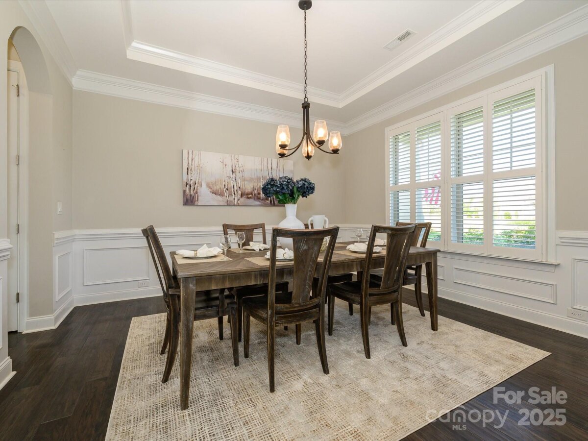 Welcome to this exceptional 2017 Bonterra-built home, where timeless elegance meets modern comfort. With striking Stackstone and cedar-style fiber cement accents, a covered front porch, and board-and-batten shutters, the exterior exudes curb appeal and invites you inside. A three-car side-load garage with pedestrian access, keypad entry, and ample hanging storage offers both convenience and style, complemented by a double-wide driveway and charming walkway to the front door with sidelights and transom. This home backs to trees and has no neighbor to the left. Step inside to discover gleaming hardwood floors throughout the main level, 10-foot ceilings, crown molding, and wainscoting, setting the tone for the sophisticated living spaces. To the left of the entry, a home office features French doors, plantation shutters, and ceiling fan with light kit—perfect for working from home. To the right, a formal dining room boasts tray ceilings, a stunning chandelier, and plantation shutters, ideal for entertaining. The great room is an inviting centerpiece with a coffered ceiling, gas-log fireplace with mantle, ceiling fan, and recessed lighting, seamlessly flowing into the gourmet kitchen. Here you’ll find 42-inch white cabinets with molding, granite countertops, subway tile backsplash, a large island, gas cooktop, wall oven and microwave, and dishwasher, along with a Butler’s pantry and spacious two-door pantry for all your culinary needs. A breakfast nook bathed in natural light completes this chef-ready space. The main floor guest suite provides privacy and comfort with a walk-in closet, en suite bath with walk-in shower, gentleman-height granite vanity, and tile flooring. A thoughtfully designed mudroom features a stainless steel utility sink, 18-inch tile, and built-in storage, conveniently located off the garage. Upstairs, wood treads with a carpet runner lead to a series of spacious bedrooms, including a Jack and Jill bath with dual sinks and tile surround. The bonus room with vaulted ceiling and ceiling fan overlooks the backyard, providing a versatile space for recreation or relaxation. The luxurious owner suite is a private retreat with vaulted ceilings, large windows, spa-inspired bath with garden tub, seamless glass walk-in shower, dual vanities, water closet, and an expansive walk-in closet with organizers. The backyard is a serene oasis designed for entertainment and relaxation, featuring a saline pool with PebbleTec finish, hot tub (sold as-is with no known issues), patio with a pergola and built-in grilling area, deck with seating areas, outdoor fireplace, built-in fire pit, pavilion, greenhouse, raised garden beds, and outbuilding. With solar energy, this home combines eco-friendly efficiency with upscale living. This has been a non-smoking household.