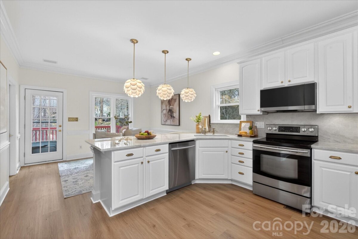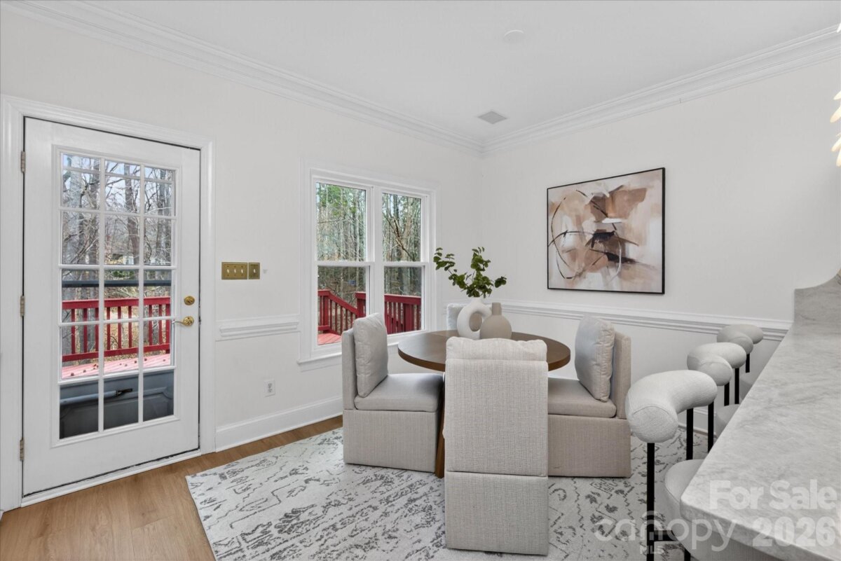 Welcome to your dream home, nestled on a picturesque, tranquil cul-de-sac of Hunter's Pointe in Indian Trail. This spacious residence boasts almost 3,000 square feet of living space and the perfect blend of comfort and function. Welcoming foyer opens to formal dining room and formal living room. Kitchen has beautiful Taj Mahal countertops and a perfect breakfast nook for your morning coffee. Enjoy cozy evenings in the living room by the fireplace. First and second floors have new gorgeous light oak LVP floors throughout. All new windows in 2023, second floor HVAC replaced in 2021. This home features 3 generous bedrooms and 3.5 baths. Basement has a full bath and a wet bar and could be used as a den, playroom, or additional fourth bedroom! Head outside to your private oasis with a deck overlooking a charming patio, a large flat fenced yard, and beautiful trees. Hunter's Pointe boasts beautiful tree-lined streets. Home is close to shops, restaurants, and highway access! Don't miss the opportunity to make this stunning property your forever home.