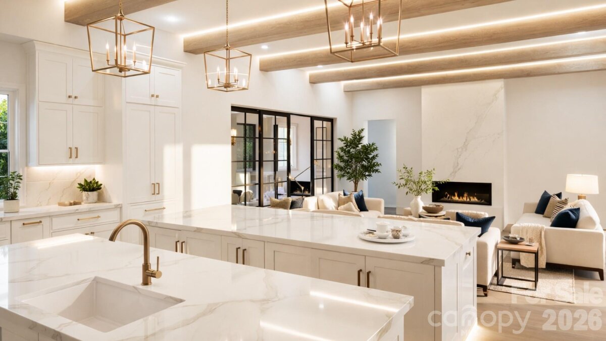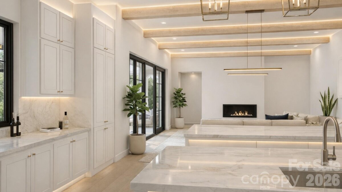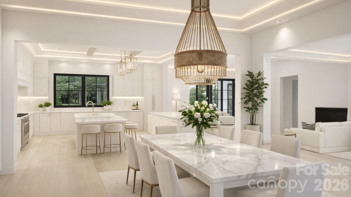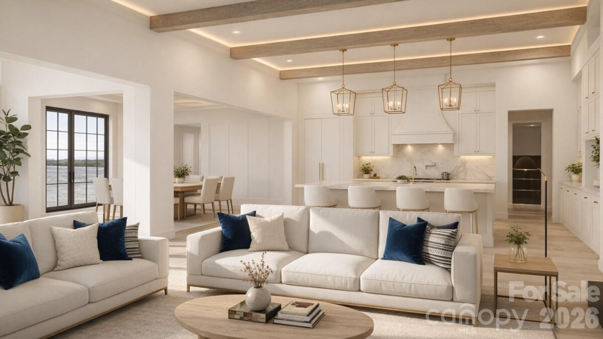 Positioned within the private enclave of Fern Hill on Lake Norman, this to-be-built 4,640-square-foot waterfront residence represents a rare opportunity to create an architecturally significant estate on an extraordinary setting. Spanning a rare 8 waterfront acres, the property offers a remarkable sense of arrival, where mature woods open to 120 feet of shoreline in a protected deep water cove, complete with a private dock for immediate access to the lake. Crafted by Plattner Builders, the proposed four-bedroom, five-and-a-half-bath design is thoughtfully conceived to maximize water views and natural light. A main-level primary suite is oriented toward the lake, while expansive living areas are defined by large-scale windows and seamless indoor-outdoor flow, creating a refined connection between the residence and its landscape. A dedicated office and private gym support both productivity and wellness, and the over 1,000-square-foot, three-car attached garage provides generous accommodation for vehicles and recreational storage. Located in Northern Mooresville, just 20 minutes to two executive airports and approximately 40 minutes to Charlotte Douglas International Airport, this offering presents the rare ability to build a custom waterfront retreat of enduring quality—combining deep water frontage, significant acreage, and elevated design on Lake Norman. Also seen in MLS listing #4346334 and 4359044.