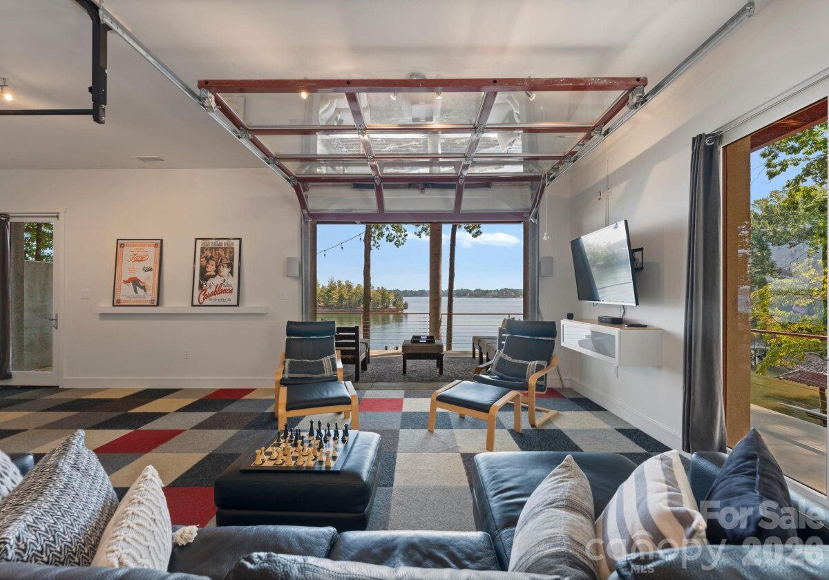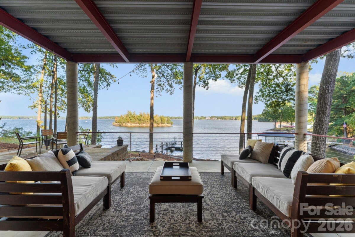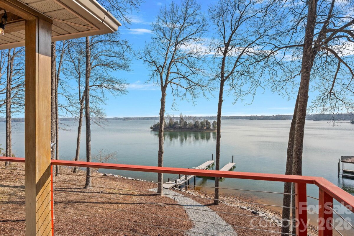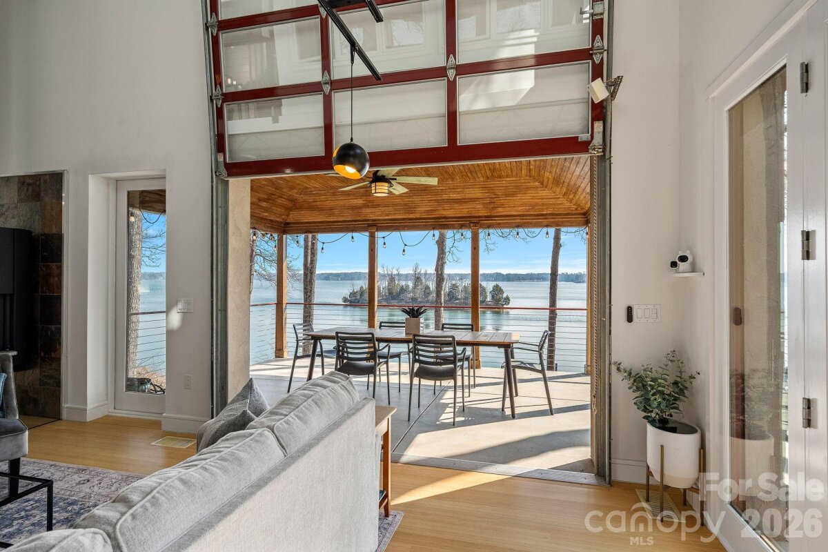 Waterfront living just beyond The Point on Lake Norman! This beautifully crafted home is tucked off the main channel near a charming island, offering calm water, sweeping sunrise views, and incredible long-range sunrise views. Enjoy your own private pier, rare sandy beach, and plenty of space to add a pool and spa. Designed for comfortable main-level living and optimizing the views, the open-concept floor plan is filled with natural light. Expansive sliding glass doors open to a large lakeside terrace, creating seamless indoor-outdoor flow — perfect for entertaining or relaxing while taking in the views. Upstairs features spacious guest suites, while the fully finished lake level includes a movie room, wine cellar, and flexible space ideal for a home gym, office, or additional living area. This home exudes quality construction and architectural design and is a must see. Outdoor living is a standout with three expansive terraces, a newly constructed dock with composite decking, and a low-maintenance Zen-style front garden. A detached two-car garage with storage above adds extra flexibility. Located near The Point, with optional access to world-class amenities including championship golf, tennis, pickleball, dining, and more. Septic permit is for 3 bedrooms; home offers potential for a 4-bedroom configuration.