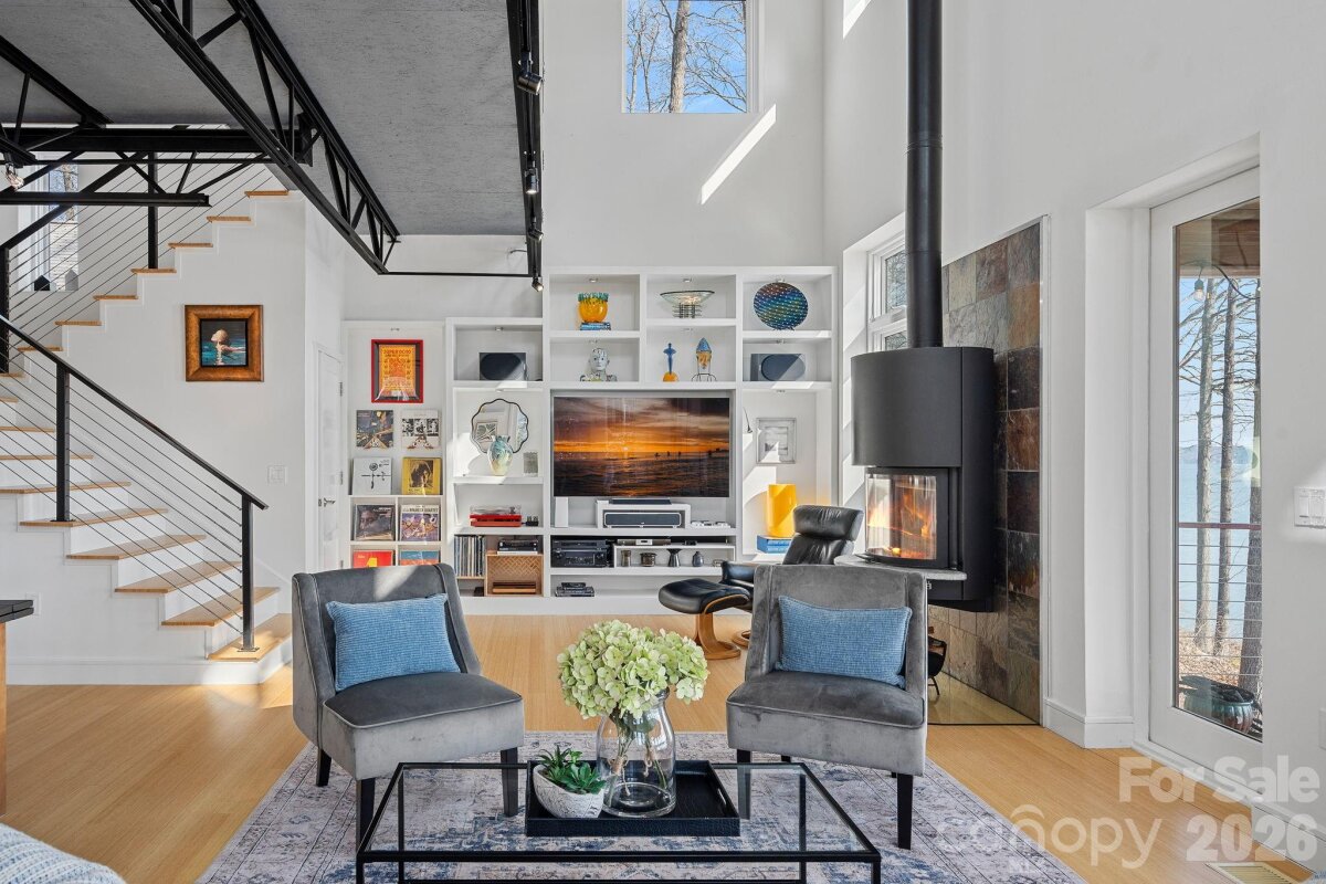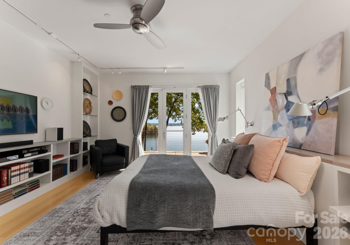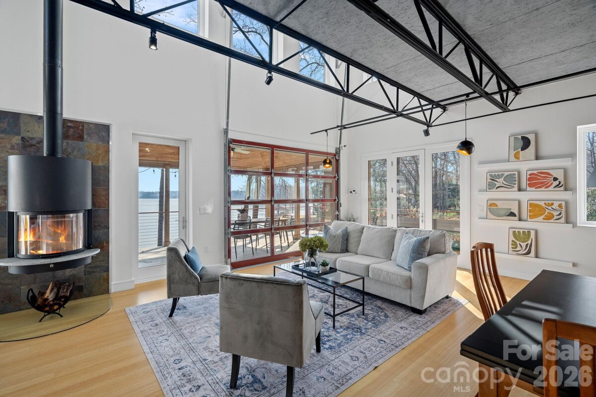 Waterfront living just beyond The Point on Lake Norman! This beautifully crafted home is tucked off the main channel near a charming island, offering calm water, sweeping sunrise views, and incredible long-range sunrise views. Enjoy your own private pier, rare sandy beach, and plenty of space to add a pool and spa. Designed for comfortable main-level living and optimizing the views, the open-concept floor plan is filled with natural light. Expansive sliding glass doors open to a large lakeside terrace, creating seamless indoor-outdoor flow — perfect for entertaining or relaxing while taking in the views. Upstairs features spacious guest suites, while the fully finished lake level includes a movie room, wine cellar, and flexible space ideal for a home gym, office, or additional living area. This home exudes quality construction and architectural design and is a must see. Outdoor living is a standout with three expansive terraces, a newly constructed dock with composite decking, and a low-maintenance Zen-style front garden. A detached two-car garage with storage above adds extra flexibility. Located near The Point, with optional access to world-class amenities including championship golf, tennis, pickleball, dining, and more. Septic permit is for 3 bedrooms; home offers potential for a 4-bedroom configuration.