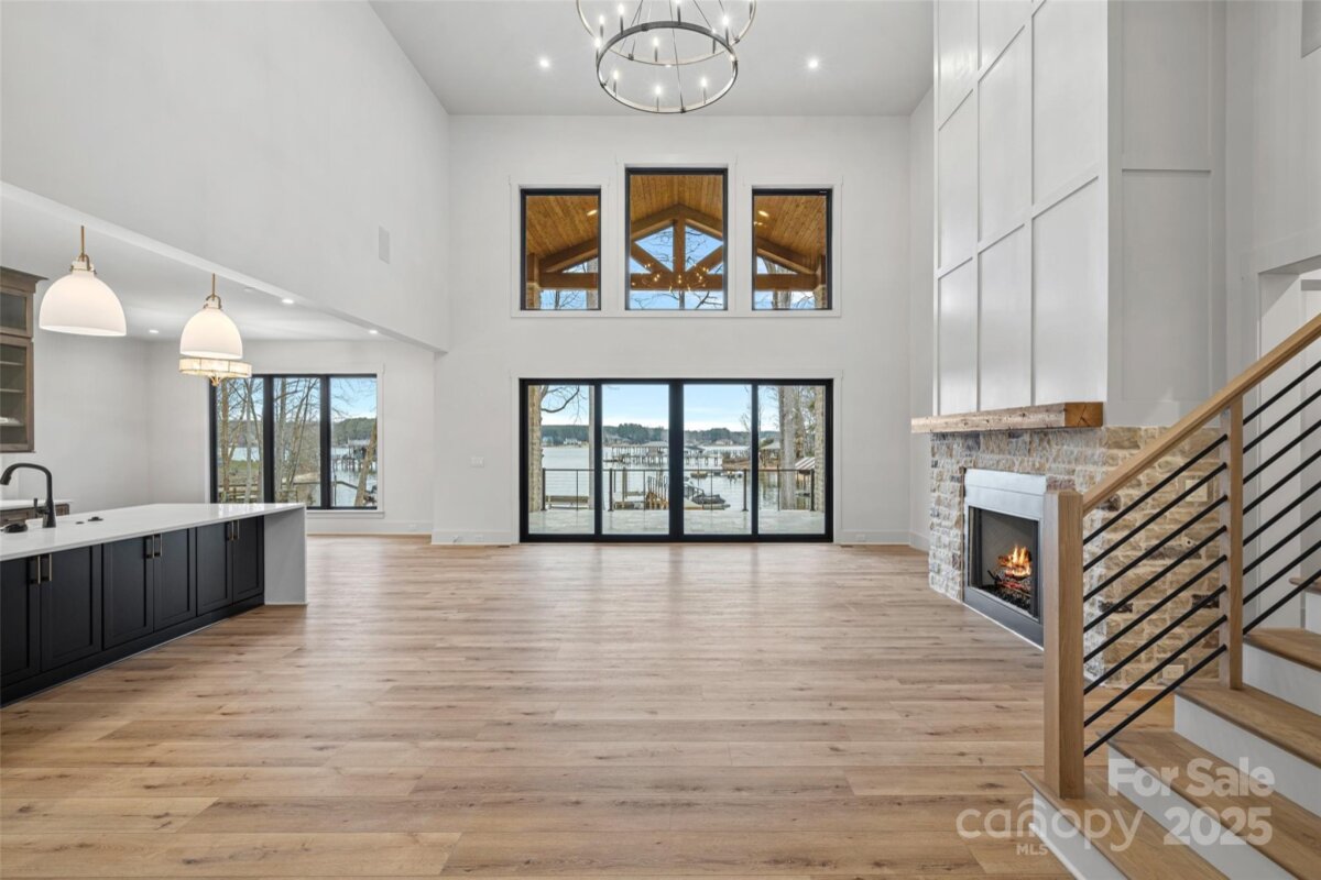 Beautiful Custom Waterfront Home – No HOA! Exceptional custom home located on a waterfront lot offering quality craftsmanship and designer finishes throughout. The main level features a spacious two-story great room with a stunning two-story fireplace, a gourmet kitchen with high-end appliances, custom cabinetry, and designer-selected finishes. A formal dining room provides an elegant space for entertaining. The primary suite and a custom office are also located on the main level for added convenience. Upstairs includes two bedrooms with water views, an additional bedroom, a large bonus room, and a flex room for extra space or storage. A cozy reading nook on the stair landing overlooks the lake, creating the perfect spot to relax and unwind. Outdoor living features covered and uncovered porches, a patio, and a private boat dock for enjoying lakefront living at its best. A three-car garage provides ample parking and storage. This home showcases premium materials and attention to detail throughout—too many quality features to list.