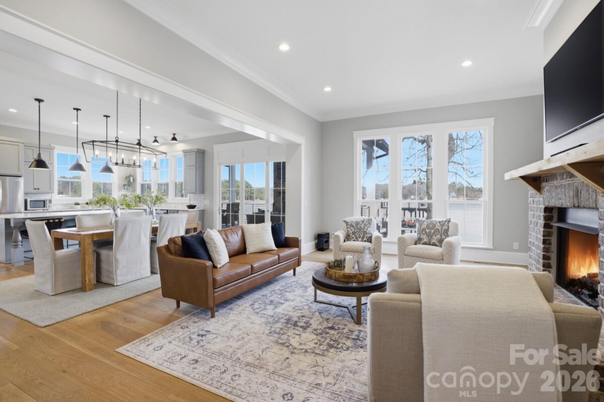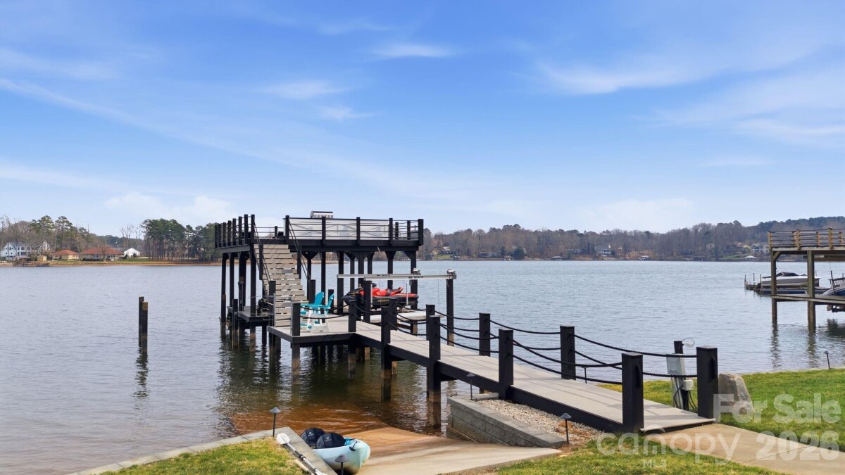 Welcome to "The Carolina House" on the shores of Lake Norman with serene views and deep water at your own private double decker dock awaiting your lake adventures. Charming front porch greets you before entering main level living drenched in natural light and captivating views. Make memories in the thoughtfully designed chefs kitchen with plenty of room for your guests to gather. An expansive lakeside back porch anchored by a cozy fireplace - the perfect setting and sunrise views for year round outdoor living and entertaining. Spacious upper level with relaxing guest suite, flex room and a custom bunk-room. A private flex space above the carport offers exceptional versatility with plenty of storage space below. Perfectly positioned in a prime location, this is waterfront living at its finest. NO HOA and only minutes to The Point Country Club with world class amenities and fine dining.