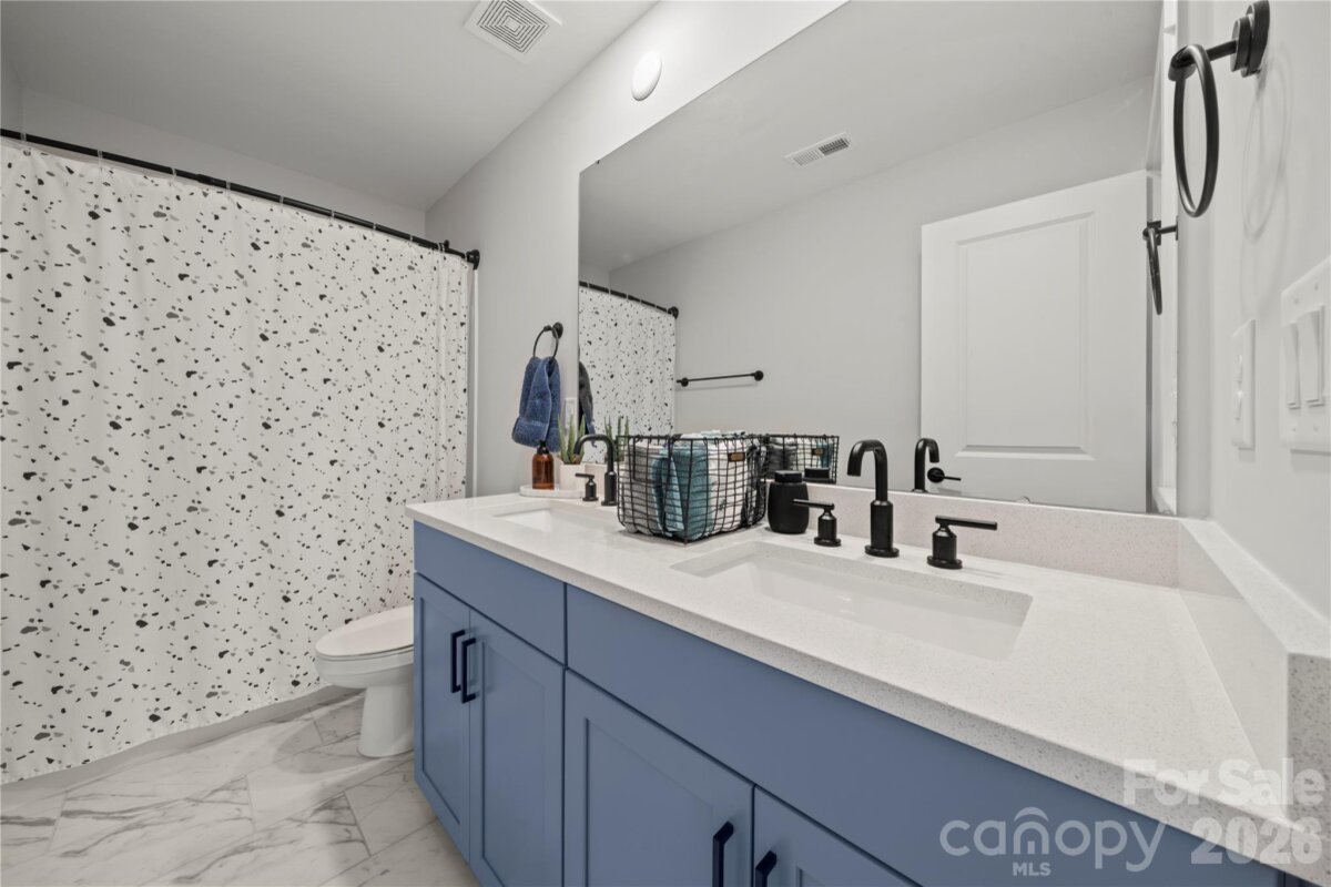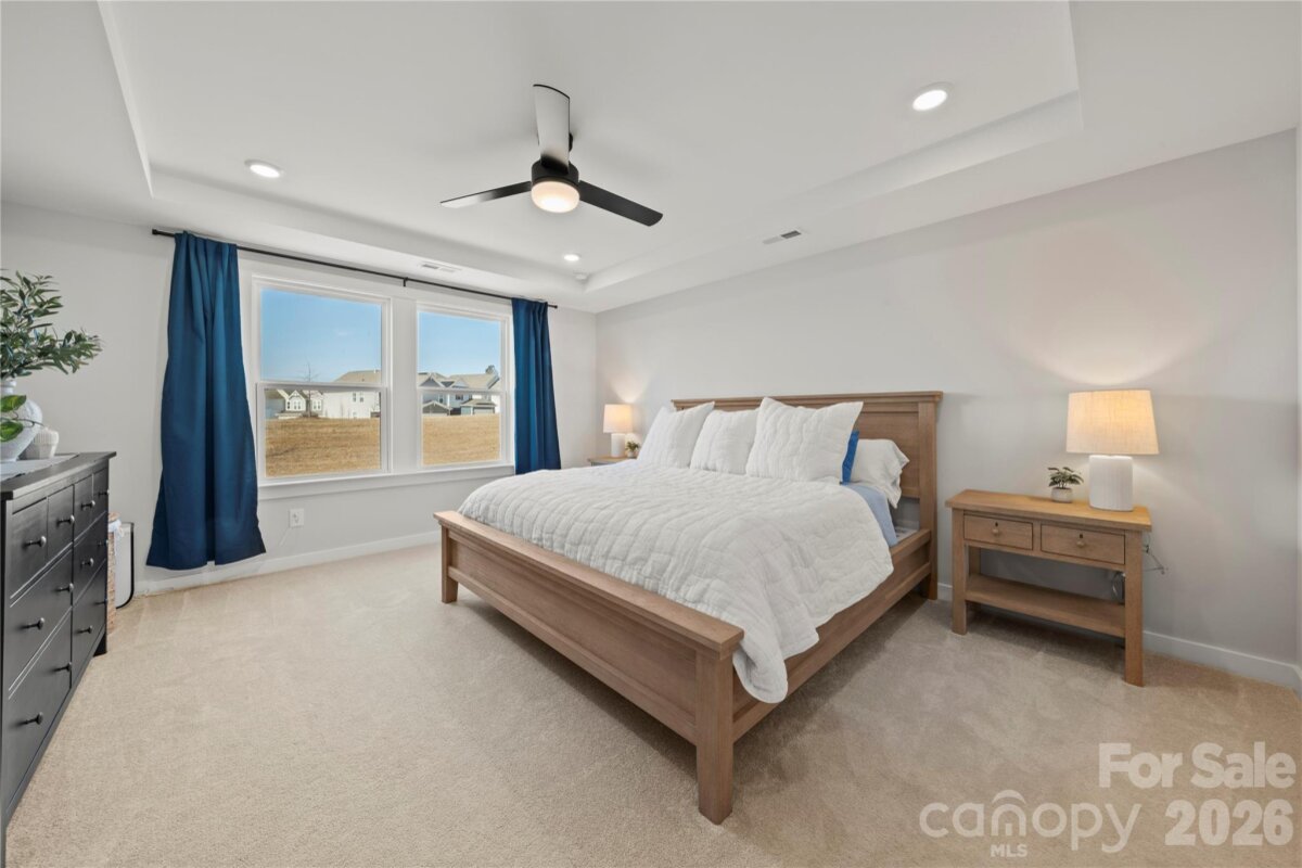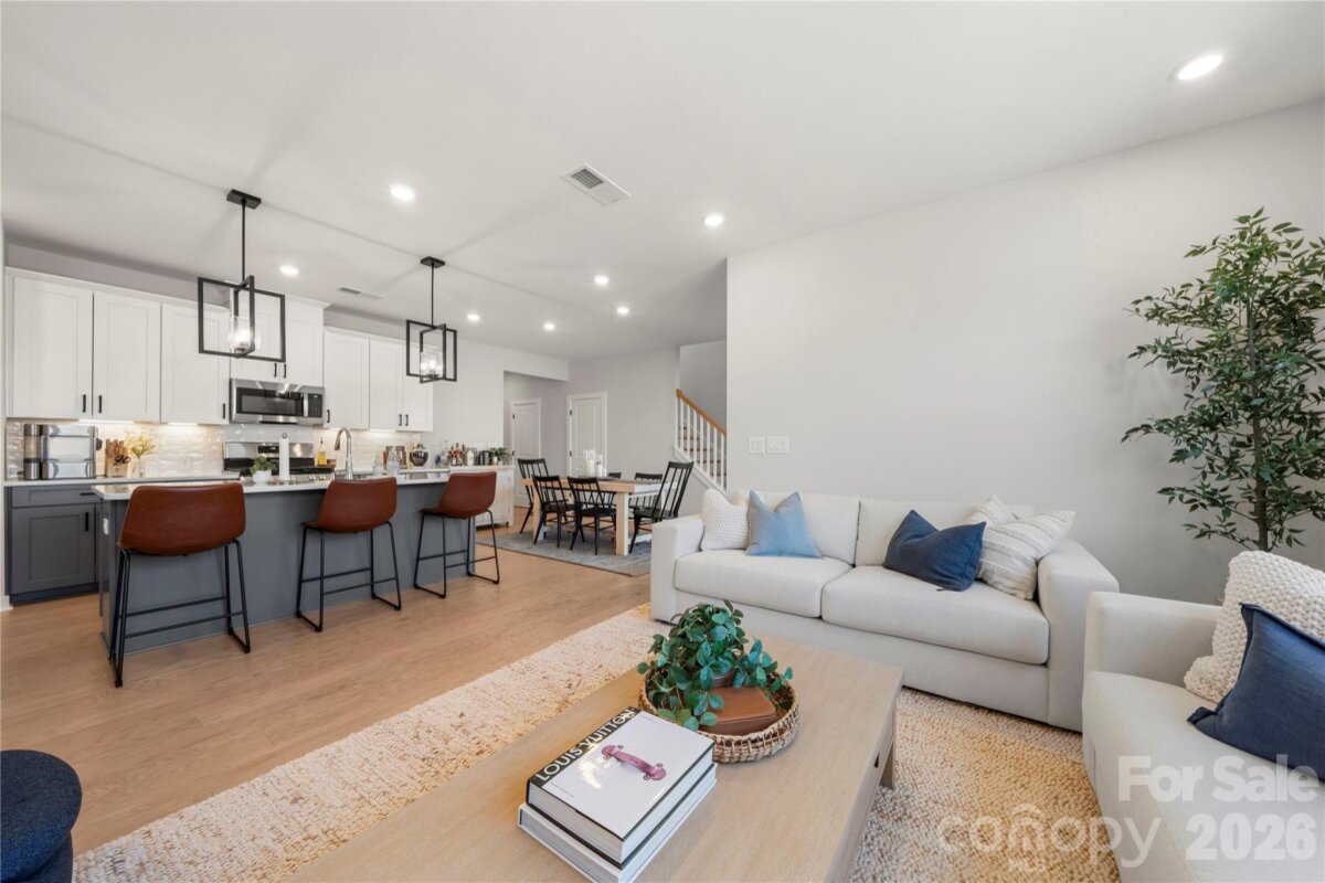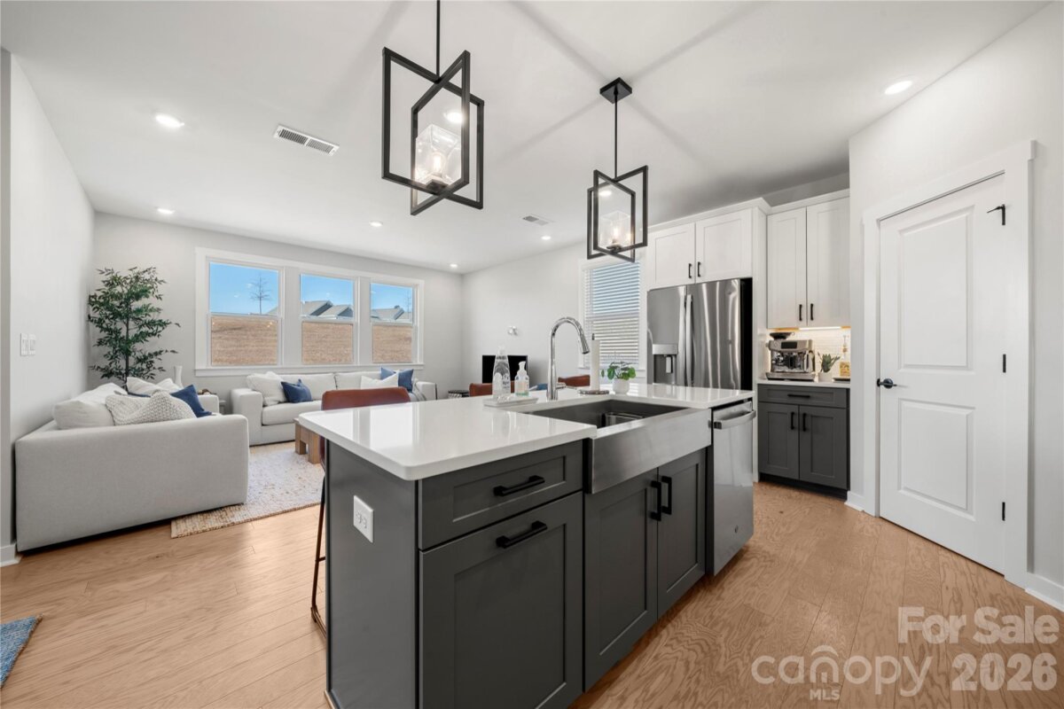 Nestled in the Village at North Reach, this two-story home built in 2024 is a must-see! Step inside to engineered hardwoods throughout the main level and an open-concept layout ideal for everyday living and entertaining. The kitchen features a gas range, stainless steel appliances, a large island with additional seating, and a walk-in pantry with a beverage refrigerator. It opens seamlessly to the dining area and living room. A main-level guest suite with access to a full bath offers flexibility for visitors or a home office, while a convenient half bath completes the main floor. Upstairs, a versatile family room provides additional living space. The primary suite includes a tray ceiling, an expansive walk-in closet and an en-suite bath with a double vanity and walk-in shower. Three additional bedrooms, a full bath, and a conveniently located laundry room complete the upper level. Enjoy the abundant closet space and storage throughout the home. Residents enjoy exceptional community amenities, including access to The Lake House, available for private events for a fee, kayak storage (additional fee), and lake access for swimming, paddleboarding, and kayaking (no motorized boats). A standout feature of this home is the social membership to Palisades Country Club included in your HOA dues, offering access to tennis, the outdoor pool, fitness facilities, and dining amenities (food and beverage charges not included). Additional membership levels are available for an added fee—see attachments for details. Come experience all this beautiful home and vibrant community have to offer!