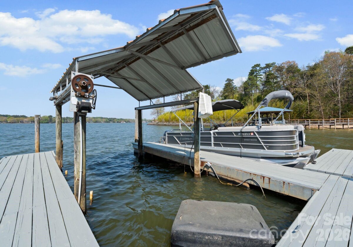 A rare stretch of shoreline where the home and the water are fully connected. Some properties capture a view. This one is built around it. From the moment you enter, the lake is the focal point. Expansive windows draw the water into the home, carrying natural light through the main living spaces and creating a constant visual connection that never feels secondary. Nearly every room is oriented to the view, so the lake becomes part of the experience whether you are moving through the home or simply spending time in it. Set on a gently sloping 0.67 acre lot with nearly 5,000 square feet, the home and land work together in a way that feels intentional. The transition from inside to outside is effortless. Living spaces open toward the deck, and from there the property continues outward, moving naturally through terraced lawn and gathering areas down to the shoreline. The outdoor spaces mirror the home in how they are used. The main deck offers a wide, elevated perspective over the water, while the lower terrace and fire pit create a more grounded, relaxed setting closer to the lake. Each space feels connected, but with its own purpose. At the water’s edge, a private sandy beach and centered dock complete the setting. It is a rare combination of usability and presence, where the shoreline is easy to access and the water is something you engage with daily, not just something you look at. What adds another layer to the lifestyle is the proximity to Copperhead Island, located just outside the entrance to the community. Connected to the McDowell Nature Preserve trail system, it offers an easy extension of the property for walking, exploring, or simply stepping into a quieter natural setting. Throughout the home and property, everything ties back to the same idea. The water is not separate from the living space. It is integrated into it, shaping how the home feels, how it functions, and how time is spent here.