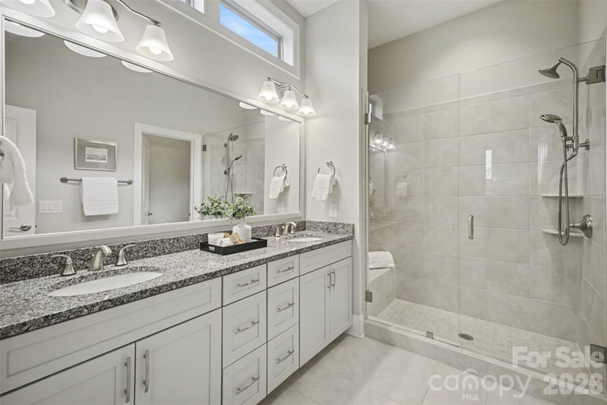 Experience the pinnacle of one-level living in this exceptional ranch at Regency at Palisades! Positioned on a premier lot that backs to a lush natural area, this property offers a rare level of privacy and a peaceful, wooded backdrop that creates a true personal sanctuary. The layout centers around a chef-inspired kitchen featuring a large center island that serves as both a culinary workspace and a natural gathering spot for guests. Sophisticated upgrades continue through luxuriously updated bathrooms, designed with modern fixtures. The primary suite offers a refined retreat, boasting an expansive walk-in closet with ample room for any wardrobe. The interior flows seamlessly into a stunning, light-filled sun porch—a bright and airy space perfect for enjoying an indoor-outdoor feel year-round. Beyond the main floor, an expansive unfinished basement provides incredible versatility, offering a blank canvas for a custom home gym, private workshop, or future recreation suite. The lower level is also pre-plumbed, offering a seamless head start for adding an additional full bath. You can find even more ample storage in bonus area above the garage! Enjoy an effortless, maintenance-free lifestyle with lawn care and irrigation included in the monthly HOA fee. This freedom allows more time to explore world-class amenities centered around a magnificent 12,000-square-foot clubhouse. Residents enjoy access to pristine indoor and outdoor pools, a state-of-the-art fitness center, and courts for pickleball, tennis, and bocce, along with Lake Wylie access for kayaking and canoeing. You aren’t just moving into a new residence—you are joining a thriving social community and the lifestyle you’ve been searching for!