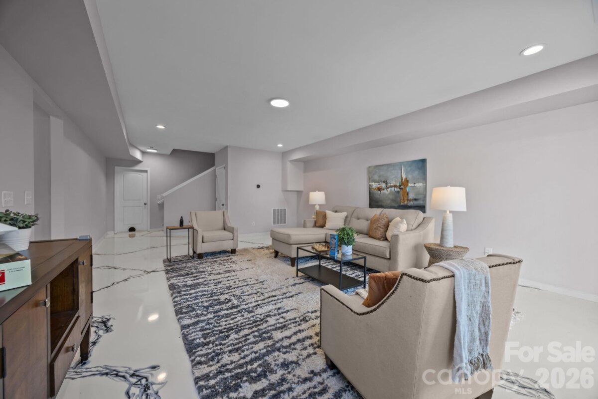 This beautiful, spacious home is located on a cul-de-sac street in the Ridgewater community near Lake Wylie. The lake is so close, you can see it through the trees on the back deck!! With 6 bedrooms, a loft, and a fully finished walkout basement, this home has rooms for all your needs! Each floor has a bedroom and full bath for multi-generational living, or multiple private home offices. The main floor has an elegant kitchen with gas cooktop and a built-in wall microwave and oven units. With a large kitchen island open to the living room, you don't have to miss a thing! The living room has a cozy, gas log fireplace and leads to the 1st floor bedroom and full bathroom. Not to be missed are the dining room/flex space and the eat-in area for function and style. The 2nd story boasts a lovely primary bedroom with ensuite bathroom including a walk-in shower and separate soaker tub! In addition, there are 3 more bedrooms, a dedicated laundry room, an additional bathroom, and a loft on the 2nd story. The fully finished basement is ready to make your own, with a HUGE open flex room, a bedroom, and full bathroom! The backyard is fully fenced with a patio and a deck off the kitchen to allow for the perfect outdoor evenings of grilling with friends and family. Imagine yourself in this move-in ready home, creating the perfect spaces to live your best life. Come tour today to see all this property has to offer you!