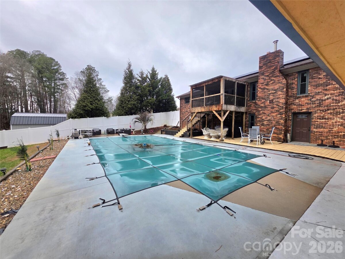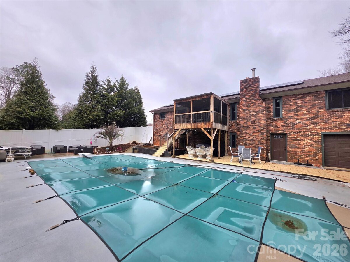 Full Brick house with partial basement & in-ground pool with a large pool house with a kitchen & full bath and storage room. 3 bedrooms 2 full baths on main floor, large open living room with brick fireplace, nice size Dining area that leads to a cozy screened in porch. Nice, updated kitchen with a nice size pantry. Large laundry room with storage space. A wonderful private office, all this on the main floor. Basement has a cozy den that has a brick fireplace and half bath. Storage room with a roll up garage door. Pool area is fantastic with plenty of patio/concrete area for entertaining. The pool house has a kitchenette with a full bath and storage room. Please don't miss out on this one.