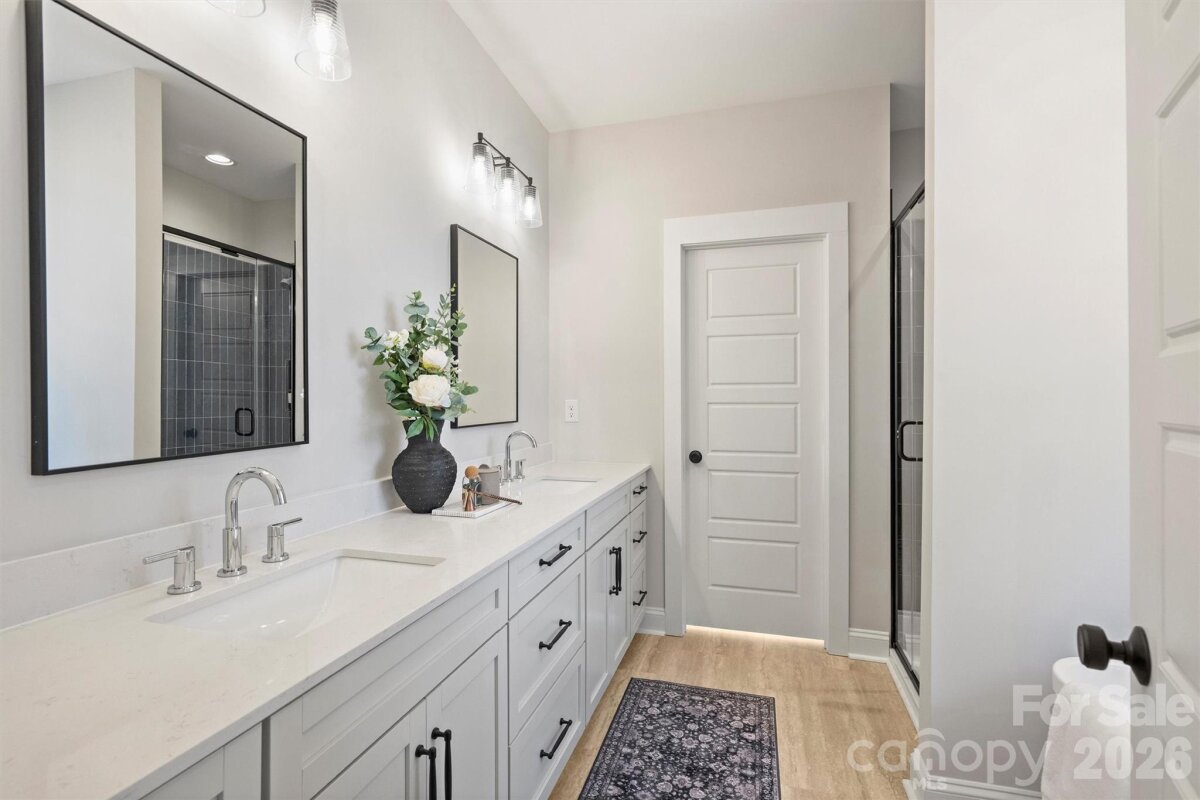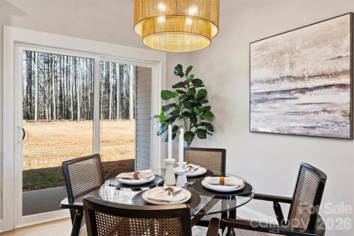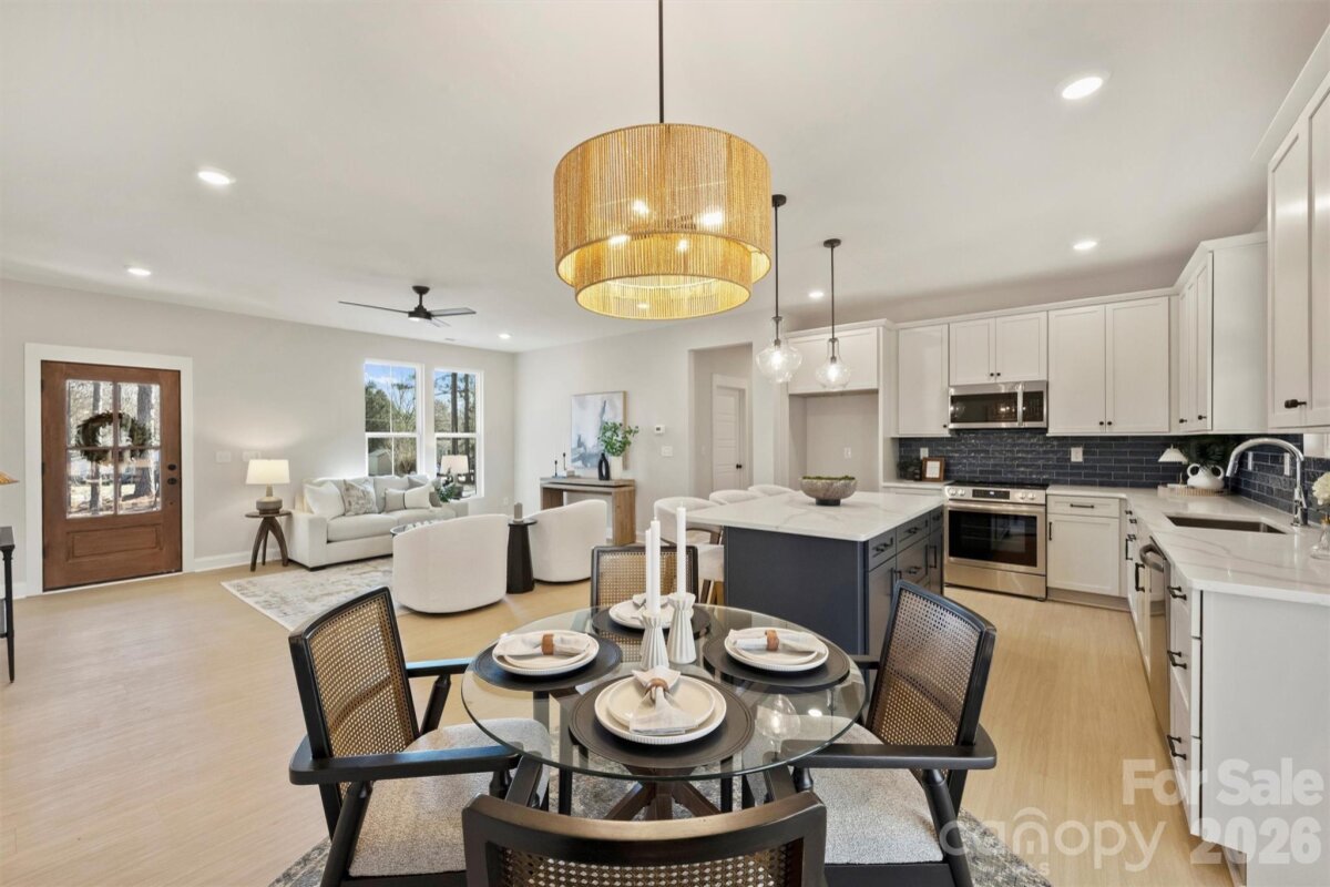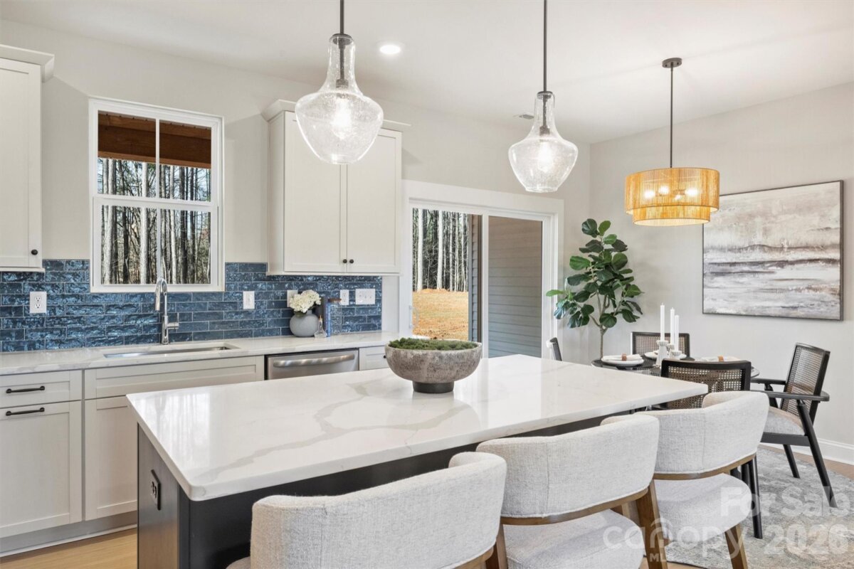 Just completed and now available, welcome to North Pines—Lincolnton’s newest community of thoughtfully designed single-level homes by Brancer Homes. This 1632-square-foot residence at 2295 Lee Lawing Road offers refined finishes, modern comforts, and the peaceful privacy of tree-lined homesites, all just 15 minutes from downtown Lincolnton and convenient to shopping in Sherrills Ford and Denver. The inviting exterior showcases brick accents and a stained wood front-porch column, creating warm, timeless curb appeal. Inside, the builder’s Lakeside Designer Package delivers an elevated aesthetic with upgraded lighting selections, mixed-tone high-end cabinetry, and quartz countertops throughout for a cohesive, upscale feel. The open-concept kitchen features pendant lighting over the island, a walk-in pantry, and seamless flow into the main living area—ideal for both everyday living and entertaining. The primary suite offers a spa-inspired retreat with a stand-alone soaking tub, full shower wall tile, and a calming designer color palette complemented by crisp white ceilings. Thoughtful details continue with a functional drop zone, added recessed lighting, and a well-appointed laundry room with cabinetry and quartz counters. Now that construction is complete, this home is part of a newly released collection in North Pines—offering a rare opportunity to own move-in ready new construction with elevated design and natural privacy in one of Lincolnton’s fastest-growing areas. Finishing touches include an extended two-car garage with an exterior exit door and additional driveway parking, offering both convenience and flexibility. Designed for low-maintenance living in a natural, rural setting, this home combines craftsmanship, comfort, and Carolina charm in the heart of North Pines.