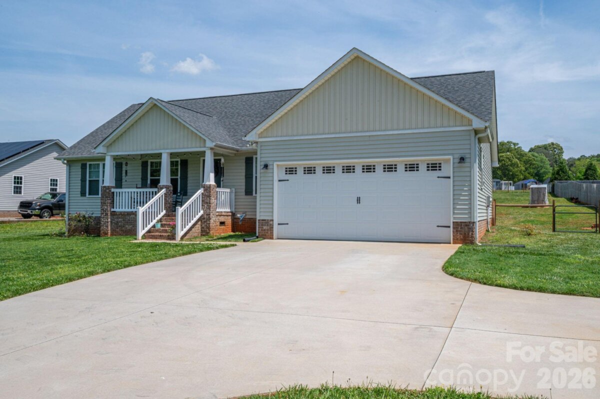 Welcome to Farm house style on a spacious 3/4 of an acre in sought after western Lincoln County! As you walk-in the front door you can't help but feel the warmth of the beautiful dark luxury vinyl plank flooring which is perfectly balanced with light colored walls, shiplap accents, white kitchen backsplash and counter tops and white shaker kitchen cabinets. The living room boasts vaulted ceilings which makes your open Kitchen-Dining-Living area feel plenty spacious for those large family gatherings. It has a faux fireplace with an electric heater complimentary of the farmhouse vibe. Also tucked away off of the living room is a small office perfect for working from home! The split bedroom floor plan allows privacy for all and even would be perfect for multigenerational living. A bathroom accommodates both bedrooms on that side of the house and a beautiful barndoor has been installed to close off the entire left side of the house if desired. Entering from the two car attached garage with an attic pull down you will find a lovely mud room/laundry room where you can drop the dirty shoes before entering your quaint home. Off the dining room you can head out back to your large deck and enjoy the privacy of a fenced back yard. If you have ever dreamed of having your own fresh eggs, this could be the perfect place for you as the chicken coops and chickens are negotiable! The hardest part is getting started and here you can walk right into collecting your own fresh eggs. As is if this isn't ideal enough, all appliances convey as well, even the washer and dryer! Don't wait to schedule your appointment to see this home!
