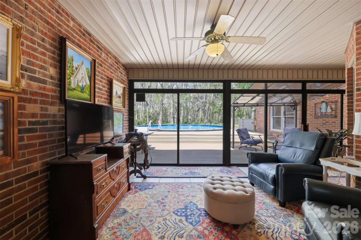 Discover peaceful country living in this beautifully updated stately all-brick ranch home, perfectly situated on 1.66 acres across two private lots in Lincolnton, NC. This immaculately cared for property offers the ideal blend of charm, comfort, and outdoor enjoyment. Step inside to find an inviting open layout with beautiful hardwood floors in the family room, dining room and kitchen. There are 3 bedrooms and 2 baths, including a renovated primary suite featuring a stunning tile shower, beautiful new cabinetry, double vanities and walk-in closet. The kitchen shines with granite countertops, updated appliances and thoughtful updates. Throughout the home you will find modern touches while maintaining its classic appeal. The large main floor laundry room is equipped with cabinets and extra storage and in addition, there are closets and storage throughout the home that you will appreciate. You will love spending time in the bright sunroom that overlooks the expansive pool deck and new pool area, creating a relaxing retreat and a perfect spot for gatherings with friends and family. The composite decking, beautiful front porch with teak wood, and spacious yard offer endless opportunities for outdoor entertaining. The oversized double garage has tons of space including extra storage room and pull-down attic. Outside, you’ll also find a large 12×24 storage shed with a lean-to porch, ideal for hobbies or extra storage, along with a 20×20 canopy perfect for your RV, boat, or additional equipment. There is also additional parking next to the garage with ample parking for your guests or extra vehicles. This property is move-in ready with space, and the peaceful country setting you’ve been searching for—yet remains conveniently close to Lincolnton amenities. A rare find with room to live, relax, and enjoy. Ready for you to move in and start enjoying the pool just in time for summer! Book your showing today!
