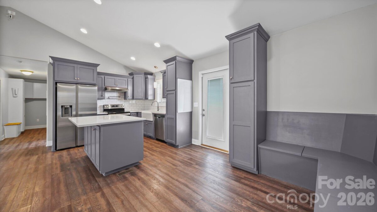 Welcome to this charming ranch home, situated in a rural setting, just minutes away from Hickory and downtown Lincolnton, with convenient access to Highway 321. This home features an open floor plan that seamlessly connects the living, dining, and kitchen areas, making it ideal for both relaxation and entertaining. The kitchen boasts modern grey cabinets, offeringa functional island for meal preparation. Retreat to the spacious primary suite, featuring a large walk-in closet and a luxurious primary shower and soaker tub. Designed for functionality, the home features a split bedroom plan, ensuring privacy for family members and guests alike. The detached garage offers ample space for a workshop, welding, or mechanics work, making it perfect for the hobbyist. Additionally, there is room for RV parking to accommodate your outdoor adventures. This property presents a unique opportunity to enjoy country living while being close to urban amenities.
