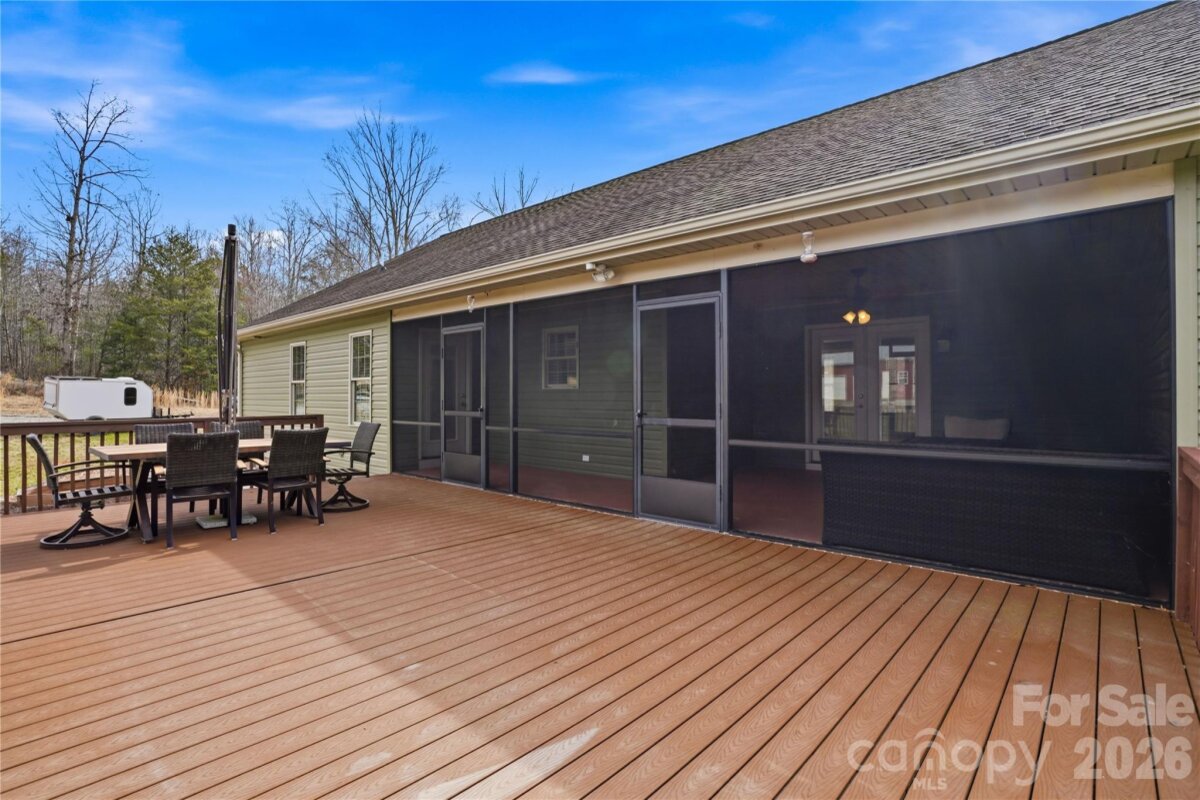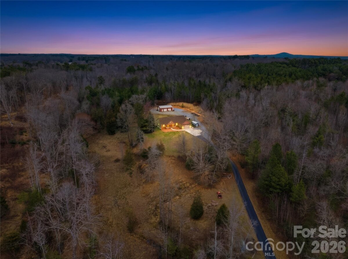 Set on more than 18 private acres with a small creek winding through the property and a long private driveway behind a gated entrance, creating a grand approach, this custom-built 3 bedroom, 2.5 bathroom home offers exceptional privacy, natural beauty, and a thoughtfully designed open floorplan connecting the kitchen, dining, and living areas for effortless everyday living and entertaining. The split layout places the primary suite on one side and two additional bedrooms plus a versatile office/bonus room on the other, providing both privacy and functionality. The kitchen boasts stainless steel appliances, a flat-top electric cooktop, built-in convection ovens, pantry storage, a center island, and stylish pendant lighting, while the living room is anchored by a warm, inviting fireplace. Hardwood flooring runs throughout most of the home, enhancing the warm and refined interior. The primary suite is a luxurious retreat with dual vanities, a soaking tub, separate shower, walk-in closet, and direct access to the screened porch, also accessible from the living area, creating a seamless indoor-outdoor living space perfect for quiet mornings or relaxing evenings. Additional outdoor features include a spacious rear deck finished in durable Trex decking, a welcoming covered front porch, and a dedicated sandbox play area, all surrounded by a beautiful blend of wooded areas, open land, and pasture views, with room for horses, small-scale farming, or other outdoor pursuits. The attached double garage offers extra storage, and the impressive 30x40 detached garage/workshop features three bays and 100-amp electrical service, providing outstanding space and power for equipment, hobbies, or projects. A rare opportunity to own a private, estate-style retreat that combines refined comfort, striking setting, and room to truly live.