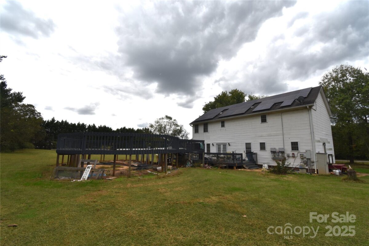Spacious 4BR/3BA 2-story home on 2.2 acres offers plenty of room inside and out! Main level features a living room, formal dining, kitchen with lots of cabinetry and large walk-in pantry, laundry room, full bath, and flex room (currently used as 5th BR). Upper level includes a large primary bedroom suite with walk-in closet and ensuite bath w/ double vanities and walk-in shower. Upper level also includes 3 additional bedrooms, full bath, and large centrally located closet in the hallway. Enjoy outdoor entertaining on the large deck. Decking for above-ground pool remains—ready for a new pool if desired. Solar panels help reduce electric costs. 2.2 usable acres of land, perfect for recreation, gardening, or future additions. Tons of space and potential—schedule your showing today!