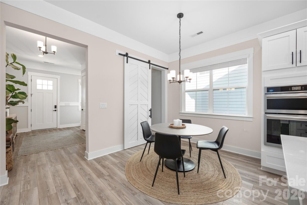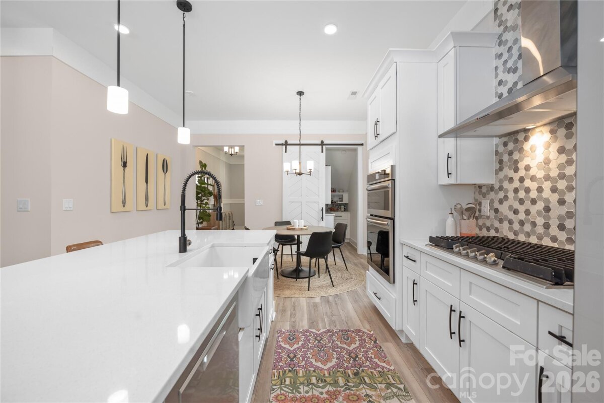 Welcome to 1027 Masefield Avenue, a thoughtfully designed 5-bedroom, 3.5-bath home located in the highly sought-after Tennyson community — just 3 miles from charming downtown Matthews and 10 miles to Uptown Charlotte. This modern farmhouse showcases impeccable design and an open-concept layout that seamlessly connects the living room, dining area, and chef’s kitchen — ideal for both everyday living and entertaining. The kitchen features a large quartz island, gas cooktop, farmhouse sink, stainless steel appliances, and shaker-style cabinetry. The main-level primary suite serves as a private retreat, complete with a spa-inspired bath offering a walk-in shower with a built-in bench, dual-sink vanity, private water closet, and spacious walk-in closet. Upstairs, you’ll find four generously sized secondary bedrooms, two full baths, and a versatile flex room perfect for a media room, home gym, or office. Notable features include dual laundry rooms (main and upper level), a convenient drop zone off the two-car garage, 10-foot ceilings, luxury vinyl plank flooring throughout the main living areas, and elegant crown molding. Step outside to enjoy a private, fenced backyard that backs to wooded views, complete with a patio ideal for relaxing, pets, or play. The Tennyson community offers amenities including walking trails and a dog park — providing a perfect blend of suburban tranquility and easy access to dining, shopping, and city conveniences. Modern comfort meets functional design in this beautifully appointed home.