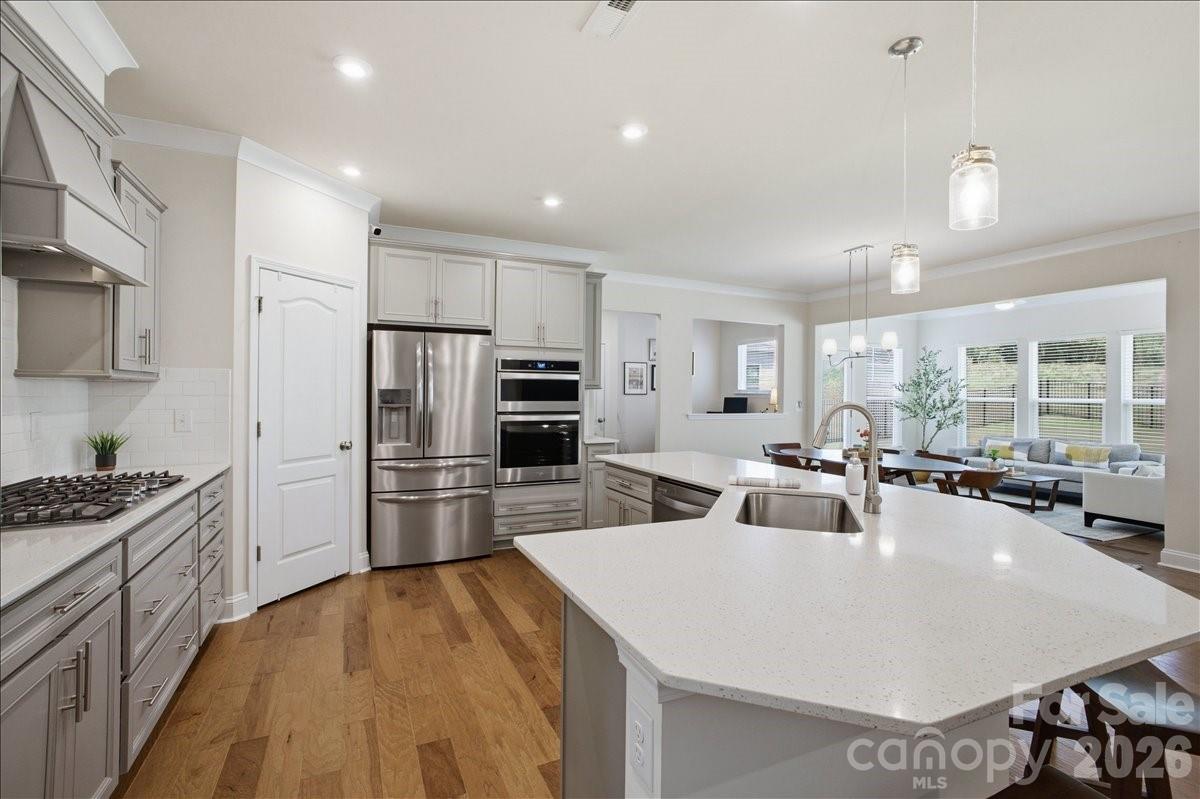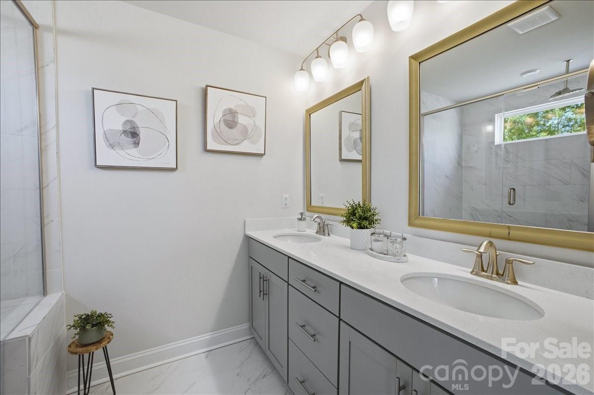 Welcome to 11432 Oakhampton Way, a beautifully designed home nestled in the sought-after Castleford Reserve community next to Waverly. This pristine 4-bedroom home offers the perfect blend of functionality, comfort, and modern style—ideal for both everyday living and entertaining. The main level features an expansive layout with abundant living space and a seamless flow throughout. A welcoming foyer creates a warm first impression, while the inviting living room with gas log fireplace provides the perfect setting for cozy evenings or gathering with guests. A defined mudroom adds convenience and organization to daily life, making this home as practical as it is beautiful. At the heart of the home, the open-concept kitchen is designed to impress, featuring a large island, granite countertops, stainless steel appliances, a stylish tile backsplash, and designer cabinetry—perfect for both casual meals and entertaining. Upstairs, the generously sized primary suite serves as a true retreat, complete with a large ensuite bathroom and an impressive custom-fitted walk-in closet. The closet also offers access to additional attic storage-a highly functional feature. The well appointed secondary bedrooms are spacious. Throughout the home, you’ll find upscale finishes including hardwood flooring on the main level, detailed trim work, modern lighting, and spa-inspired bathrooms with upgraded tile and fixtures, creating a polished and elevated living experience. The backyard is fenced, backs to a wooded area and is ready for your vision! This home features an in-ground irrigation system. Ideally located just minutes from Waverly and Rea Farms, Castleford Reserve offers convenient access to premier shopping, dining, grocery, and fitness options, while also being close to Ballantyne, Blakeney, SouthPark, and Uptown Charlotte. With easy access to I-485 and Providence Road, commuting and daily errands are effortless. Walk to Waverly and enjoy all this shopping and dining area has to offer! Combining space, thoughtful design, and an unbeatable location, this home presents an exceptional opportunity to enjoy the best of South Charlotte/Matthews living in a vibrant and connected community.