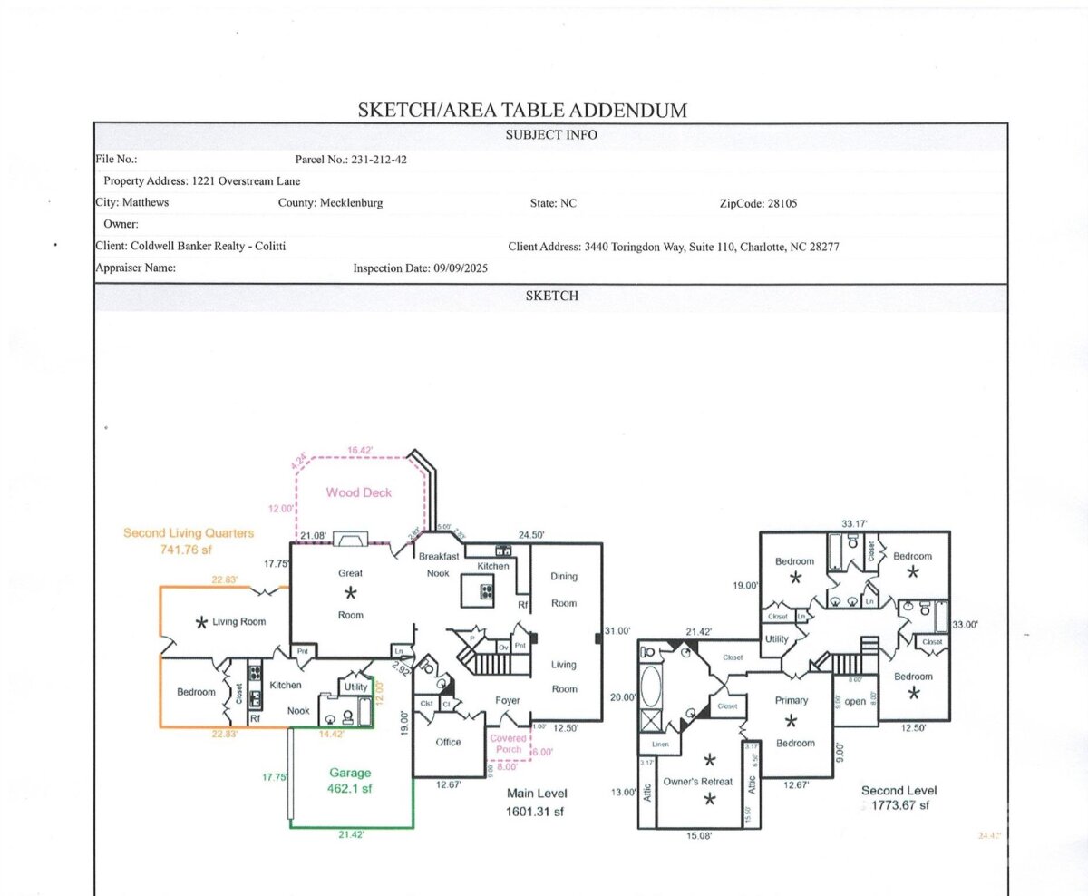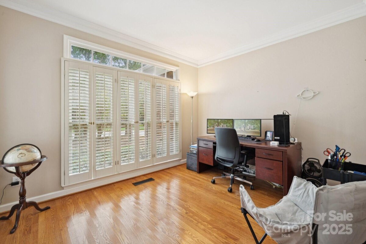 Welcome Home to this John Wieland built home in popular Providence Hills. This home features an attached 2nd living quarters with it's own separate entrance from the exterior and an entrance from the interior of the garage. It has a large living room with 10' ceiling, bedroom with 10' ceiling and 2 closets, Kitchen with range, microwave, refrigerator, pantry and a laundry closet with stackable washer and dryer that conveys. There is also a private patio entered through the French doors in the living room. This home sits on a .55 acre wooded lot with deck, fire pit and slate paver patio. There is also irrigation and gutter guards. The main home features a family room with vaulted ceiling, built-ins and wood burning fireplace. The kitchen has loads of cabinet space, huge island with gas cook top and wine rack. There is a first floor office with French doors and closet, as well as a formal dining and living room. There are plantation shutters and crown molding throughout the home. There is hard wood flooring throughout the main level, stairs and upstairs hallway. The primary suite boosts a large flex room. Perfect for an office, home gym or nursery. The huge primary bath includes new LVT flooring, 2 separate vanities, shower, jacuzzi tub and huge linen closet. Bedroom 2 is attached to a full bathroom. Bedrooms 3 and 4 share a jack and jill bathroom. This home also features a whole house attic fan and dehumidifier with wall control. The garage has a sink and 4 hanging ceiling shelve units for ample storage. Providence Hills has a community pool, tennis, playground and clubhouse with numerous events throughout the year. Check out ProvidenceHills.Org for more information and Providence Hills NC Facebook page. The location is close to I485, shopping, parks with walking trails and downtown Matthews. GreatSchools.org has rated Matthews Elementary 8/10, Crestdale Middle 9/10 and David Butler High 7/10. An American Home Shield Warranty is in place for the next owner. Termite Bond with Terminex