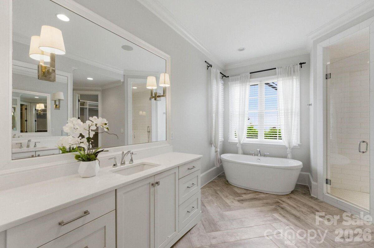 Welcome to 1605 Arborfield Commons in the lovely Stevens Grove neighborhood! Beautifully landscaped with a private fenced backyard, this home is perfect for indoor-outdoor living. It features a covered stone porch, brick-paved patio with pergola, and fire pit. Inside, an open floor plan showcases a gourmet kitchen with Thermador appliances, 6-burner gas range, farmhouse sink, large breakfast area and butler’s pantry with sink, wine shelves and beverage refrigerator. The oversized kitchen opens into the family room with custom built-ins and a modern fireplace. The main-level primary suite offers a spacious retreat with dual vanities, freestanding tub, water closet, and two large walk-in closets. The convenient drop zone off the garage includes a hidden stackable washer and dryer and lots of storage. Upstairs features three additional bedrooms, each with attached bath. One of these is currently being used as an office. Upstairs also has a large bonus room, dedicated gym with full bath, and a second laundry room with sink. Walk-in attic access and exceptional storage throughout complete this impressive home.