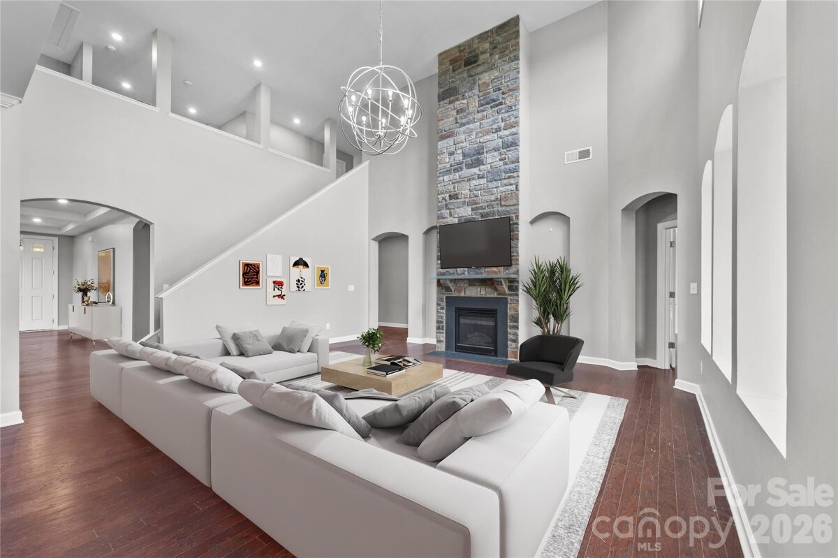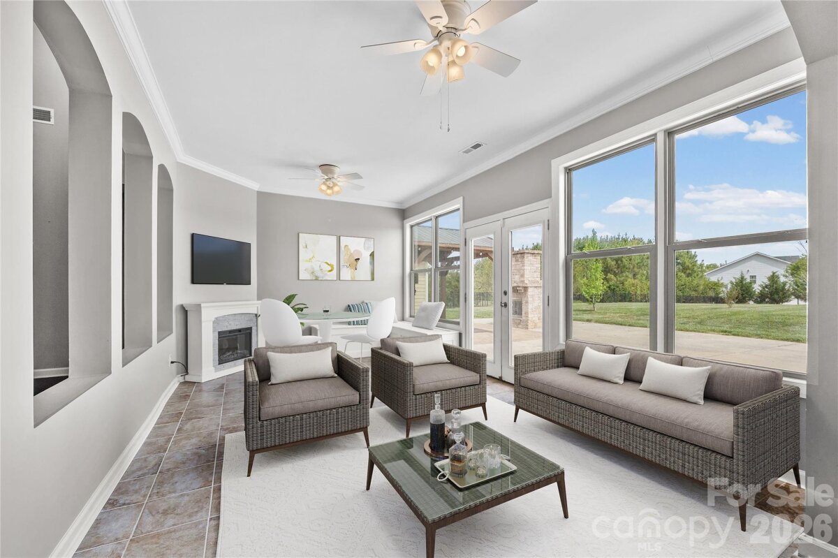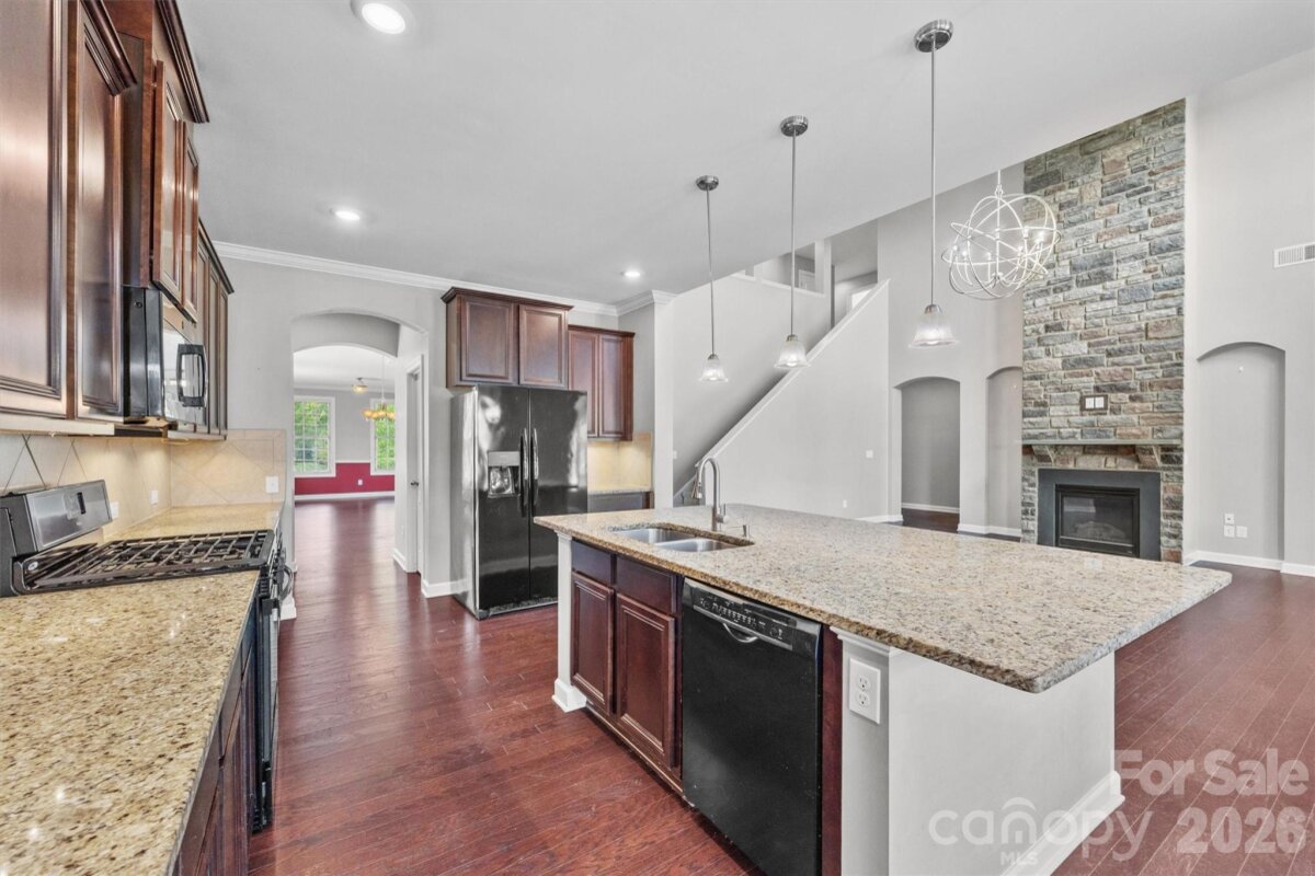 Welcome Home! Discover exceptional living in this stunning 5-bedroom, 3.5-bathroom home boasting an impressive 4,327 square feet of thoughtfully designed space. This masterfully constructed home delivers a perfect blend of elegance, comfort, and craftsmanship. The generous living areas flow seamlessly, offering versatile spaces ideal for both everyday living and entertaining. The main level has a beautiful kitchen with island and breakfast bar, as well as a gas range, dishwasher and microwave. There is a large, beautiful, primary bedroom which has an ensuite bath with garden tub, separate walk-in shower and separate water closet. The wonderful two-story living room has a gas log fireplace. There are also separate living room and dining room and a wonderful sunroom with electric fireplace that leads to the expansive rear patio and rear yard. The outdoor space truly sets this property apart. The patio features a fireplace, a nice covered area, that would be great for a hot tub, as well as an area with a pergola. The generous rear yard is fenced and is an inviting backdrop for relaxation, children, pets, gardening, and gatherings with family and friends. The home also has an irrigation system for the entire yard, as well as landscape lighting. The surrounding Matthews neighborhood delivers a wonderful lifestyle of convenience and community. Families will appreciate proximity to elementary, middle and high schools. Everyday errands are effortless with Target, Food Lion, and PetSmart just minutes away. This is more than a home — it's a lifestyle anchored by generous living space, and a neighborhood that fosters connection and convenience. Properties of this caliber in Matthews move quickly, so schedule your private showing today before this extraordinary opportunity is gone. Rooms/areas showing furniture and other items, other than washing machine and applices, have been virtually staged, and do not reflect the actual appearance of the property.