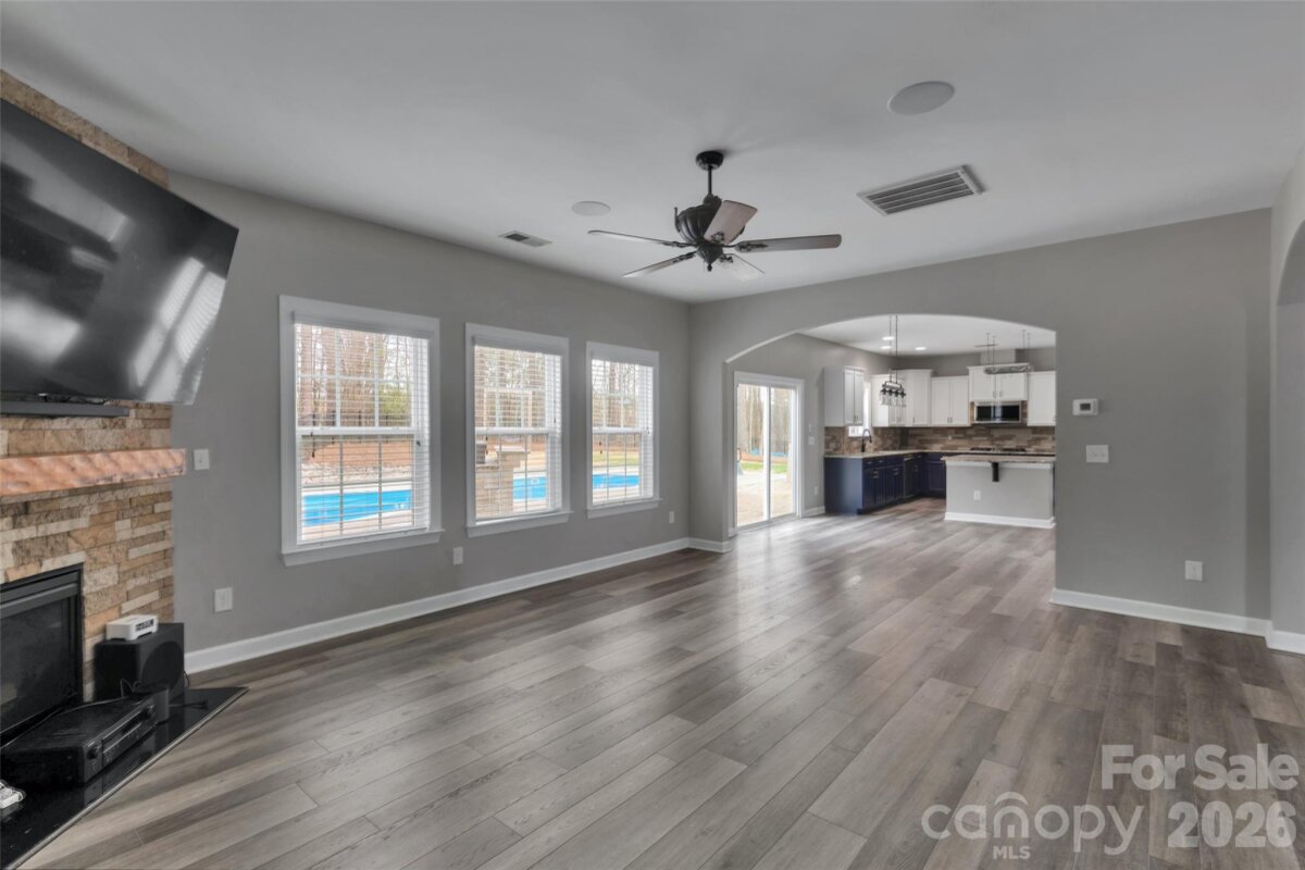 Welcome to this charming rocking-chair front porch home, filled with upgrades throughout! The main level features new Luxury, waterproof flooring. Step into your own private oasis with a custom saltwater heated pool complete with a hot tub, in-pool seating, and a water slide. The wrought-iron fenced backyard offers privacy from neighbors and includes an outdoor kitchen with a gas grill—perfect for entertaining. Inside, enjoy a spacious custom kitchen with a large island, stone backsplash, and upgraded stonework surrounding the gas fireplace in the great room. A 75" flat-screen TV in the great room conveys with the home, along with a Sonos sound system. Situated on one of the largest lots in the neighborhood, the property also offers direct access to Pleasant Plains if needed. Conveniently located within walking distance to Downtown Matthews and the Greenway. Don’t miss the opportunity to make this one-of-a-kind home yours! MOTIVATED SELLER - PLEASE SUBMIT ALL OFFERS