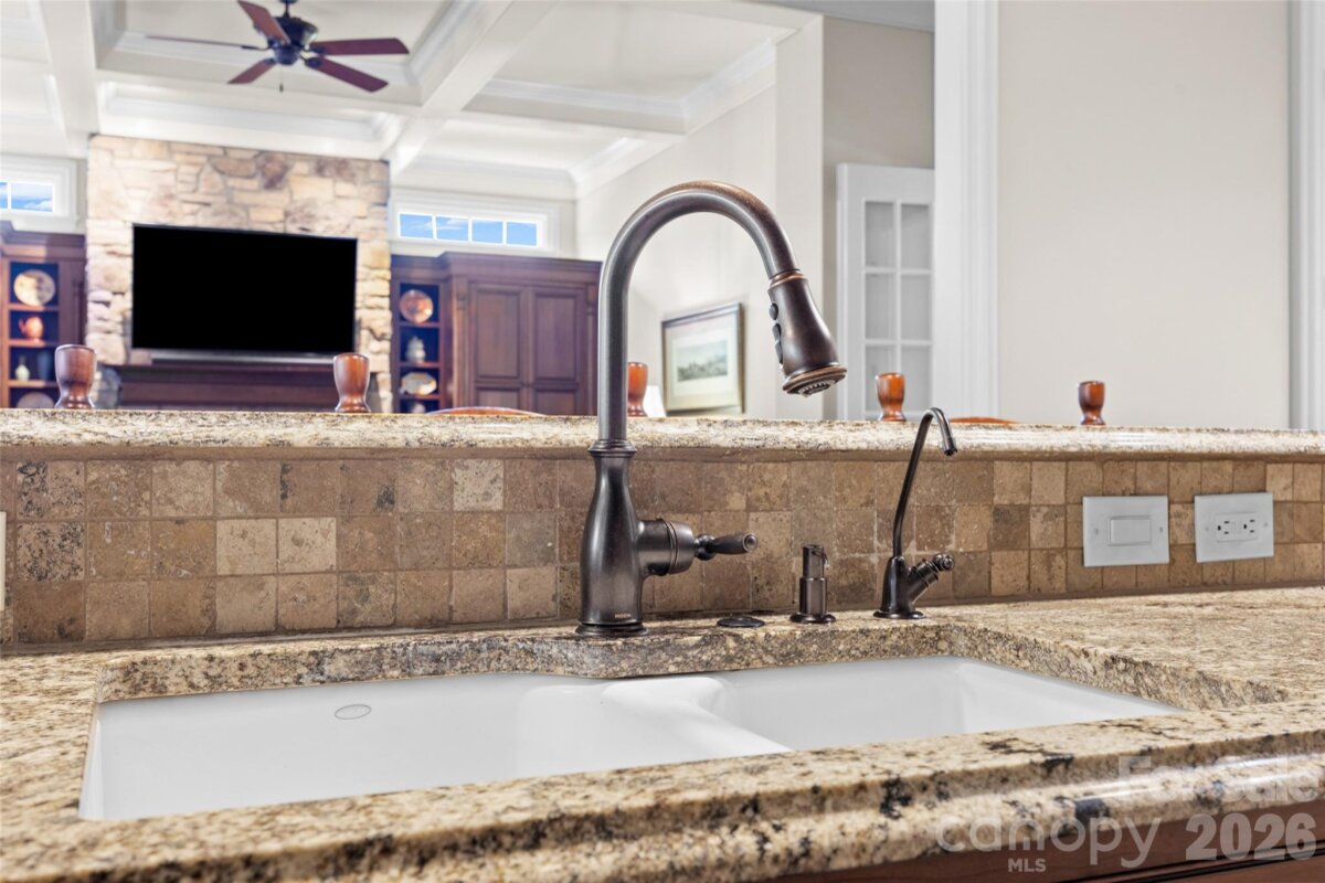 Meticulously crafted by Harrington Builders, this custom stone and stucco home is located in the highly sought after Highgate. The backyard has been transformed to a park like setting with lush landscaping, including new plantings new courtyard, fence, sidewalk, freshly sodded front and rear yard all with complete irrigation. Beautiful porch and outside fireplace completes the outdoor living. Inside, the home offers an exceptional open floor plan with high end finishes throughout. Formal rooms frame the entry, leading you to a stunning family room with coffered ceilings, a stone fireplace and elegant shutters. The kitchen open to the family and breakfast room showcases richly painted cabinetry, Bosch oversized 5 burner cooktop with pot filler and ample space for entertaining. The oversized primary on the main level overlooks the backyard. The spa like bath features soaking tub, large shower and dual vanities with granite counters. Upstairs you’ll find three bedrooms, each with en-suite baths along with a spacious bonus room and additional flex space perfect for a home office or exercise. 3 Car side entry garage. Whole house water filtration system, Generator. 8 Zone irrigation system. All exterior trip painted 2026, Most of interior freshly painted. A must see home.