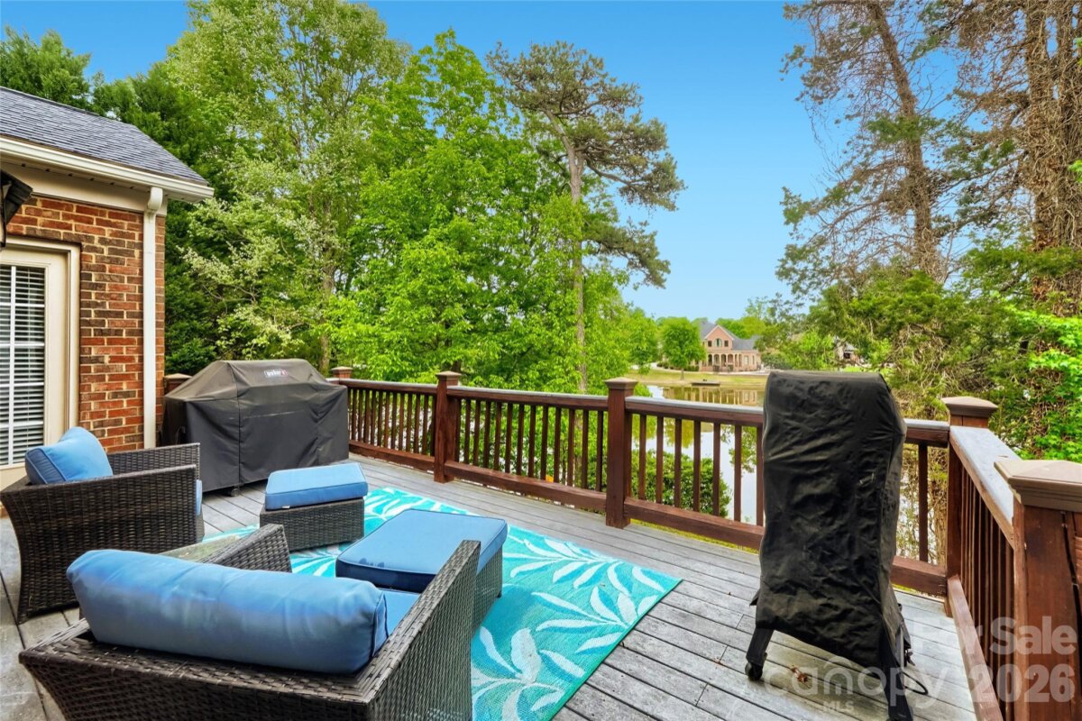 Experience refined lakefront living at 844 Clonmel Dr, located in the highly sought-after Shannamara community and within the desirable Union County school district. This full-brick home offers over 5,300 square feet on a beautifully landscaped and fenced 0.67-acre lot with direct access to Lake Shannamara. Ideally positioned just 1.7 miles from I-485 at Idlewild Rd, the property combines privacy with convenient access to Matthews, Charlotte, and surrounding amenities. Outdoor living is designed for both relaxation and entertaining. The private saltwater Pebble Tec pool is complemented by an upper deck, covered patio, and a screened porch with peaceful lake views. A private dock provides direct access to the water, ideal for kayaking or enjoying quiet moments by the lake. Inside, the two-story great room features arched windows that fill the space with natural light and a floor-to-ceiling stone fireplace. The open-concept kitchen offers granite countertops, stainless steel appliances, a large island, and an oversized walk-in pantry. A formal dining room and a flexible main-level space provide options for a home office or guest accommodations. Upstairs, the primary suite includes a tray ceiling, dual walk-in closets, and a spacious bath with granite vanities, a soaking tub with column detailing, and a separate shower. Three additional bedrooms and two full baths offer a well-designed layout with ample space. The finished walk-out basement adds versatility with a built-in theater, bar area, game room, fitness space, and additional storage. This level connects seamlessly to the outdoor living areas, enhancing the home’s functionality. Recent updates include a new roof and two HVAC systems installed in 2023, offering efficiency and peace of mind. Additional features include a three-car garage and ample driveway parking. Shannamara offers community amenities including a clubhouse, pool, tennis and pickleball courts, and scenic lakes. Located approximately 6 miles from Downtown Matthews and about 20 miles to Uptown Charlotte, this home provides a balance of space, updates, location, and access to the highly regarded Union County schools.