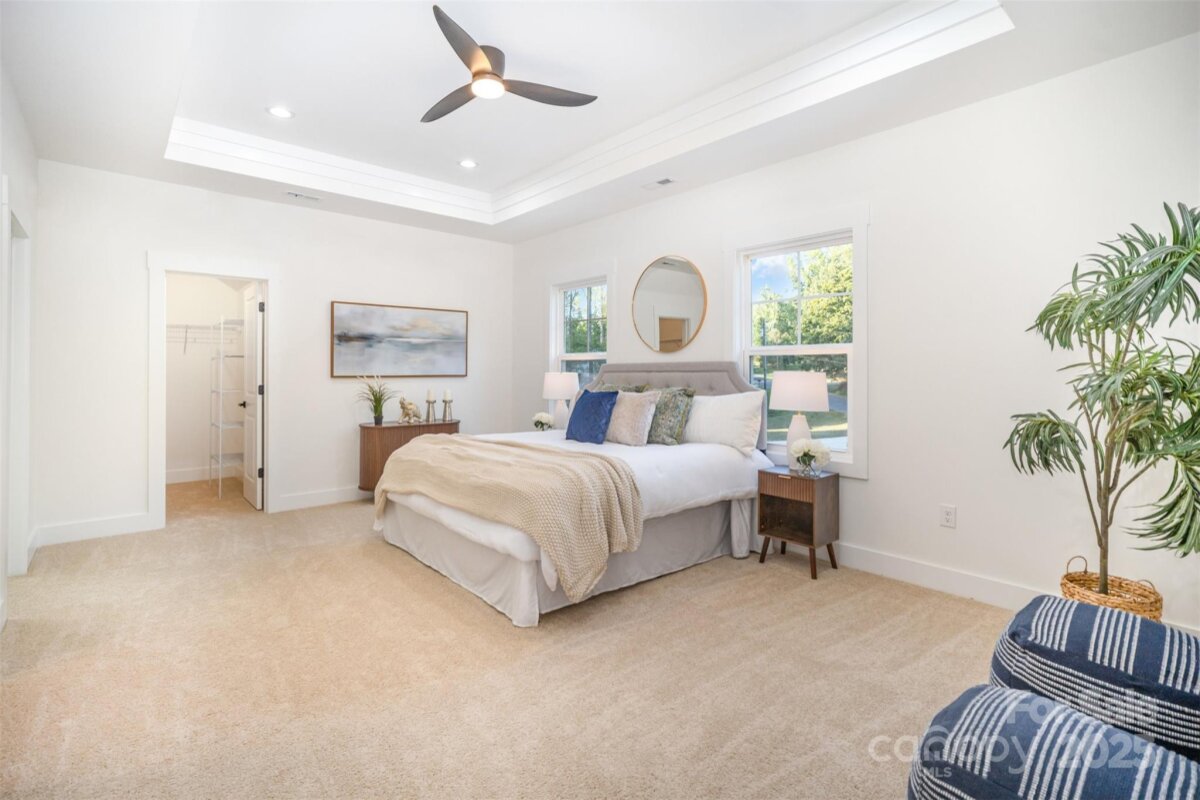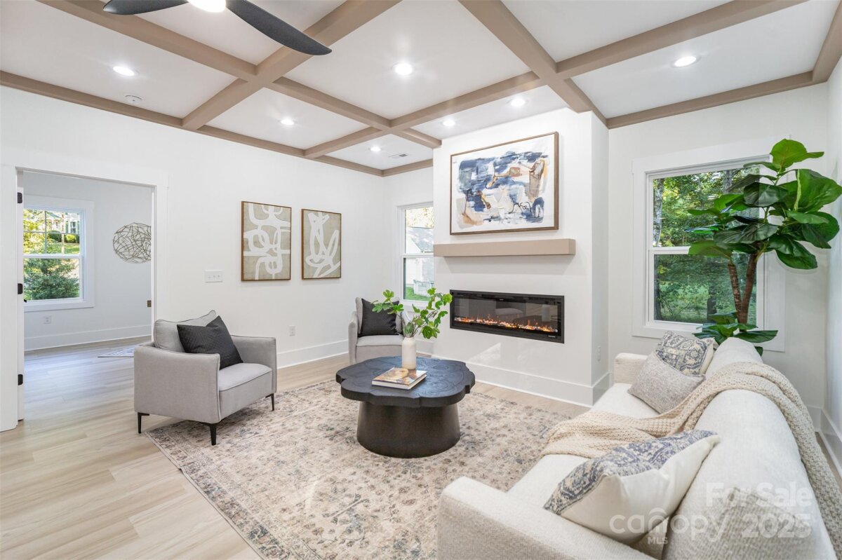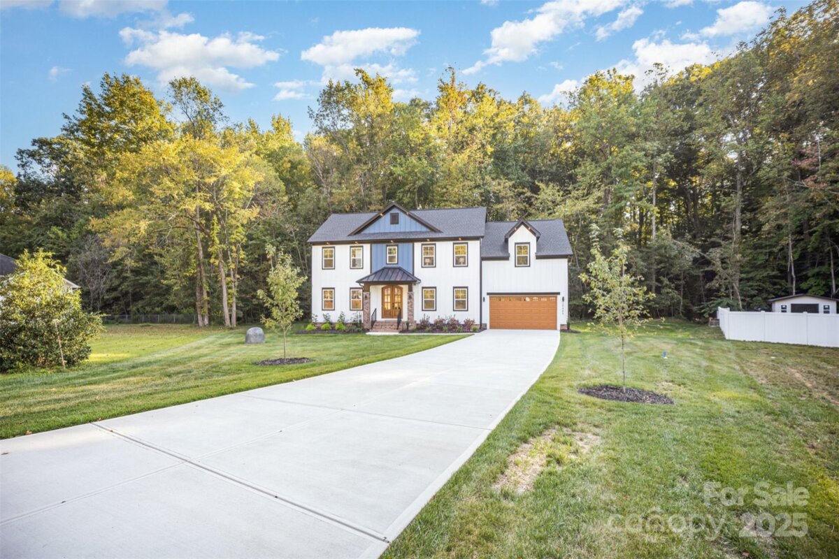 Seller offering $5,000 toward buyer concessions. A rare opportunity in desirable Mint Hill, this newly built smart home sits on 0.83 acres with no HOA. The mahogany front door opens to a welcoming foyer, leading to a dedicated office and a private guest suite with full bath. An open kitchen with quartz countertops, premium GE appliances, and shaker cabinetry flows into the family room with coffered ceiling and modern fireplace. A Bluetooth enabled cooktop adds convenience to the kitchen, while additional smart features include an electric car charging connection and pre-wiring for security cameras at the front porch, corner, and back deck. Elegant finishes and integrated technology make this home a refined choice in a sought after setting.