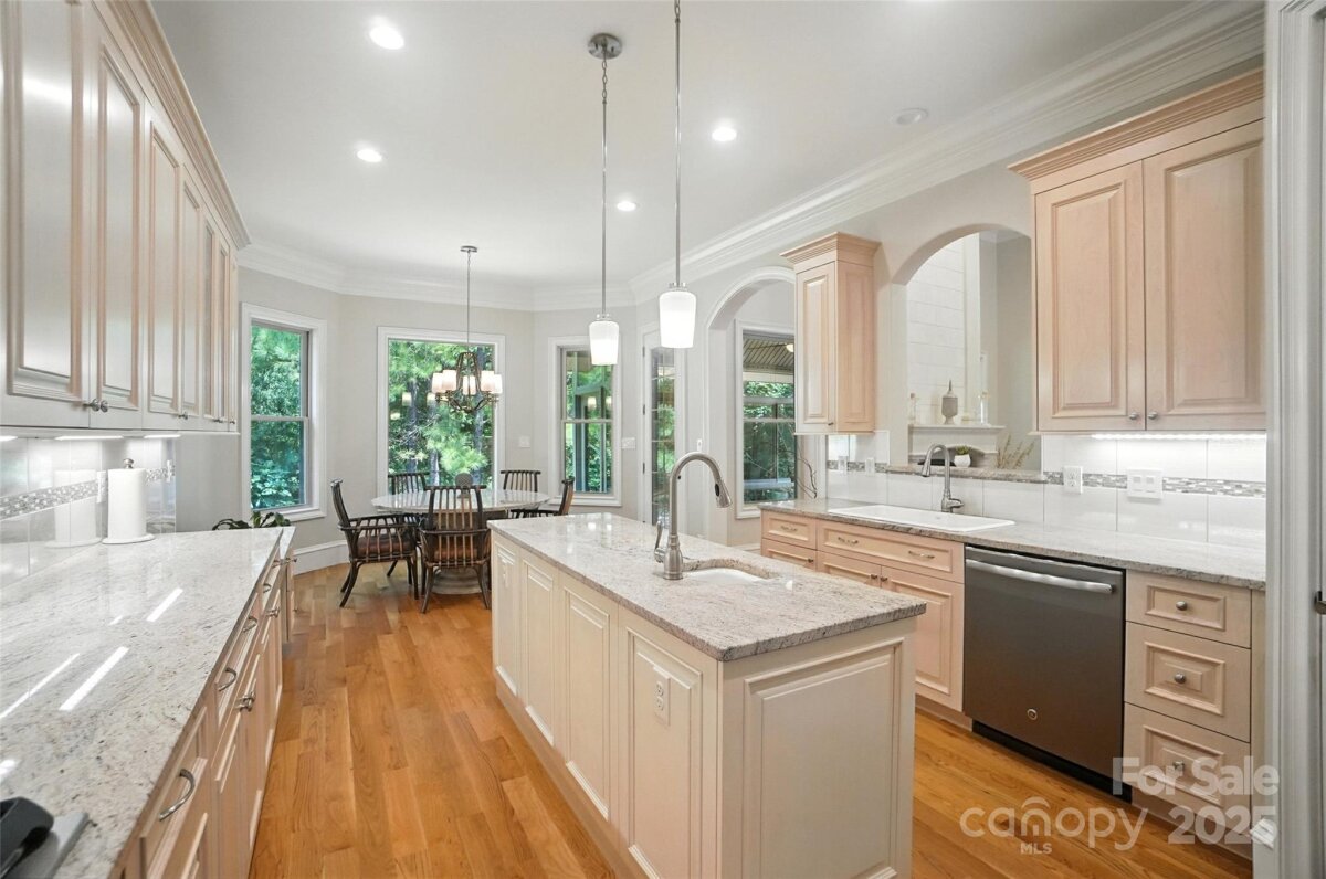 Welcome to this meticulously-crafted, custom built, private estate located on 3+ private wooded acres in charming Mint Hill! Upon entering, admire the cast stone columns and impressive wood burning fireplace amidst a soaring 16 ft ceiling. Step into the stunning chef’s kitchen with custom built maple cabinetry and beautiful granite countertops. Revel in the beauty of the primary suite that includes flawless marble tile, cast-iron free-standing tub, stone veneer shower, and expansive walk-in closet with custom built-ins. This home features 3 bedrooms on the main floor with an additional 4th bedroom/bonus on the second level, each with their own walk in closet. Wide plank white oak hardwood floors flow seamlessly throughout the home. Triple stacked crown moldings, custom 8 ft solid wood doors and double baseboards evidence the quality and admirability of the home. This home boasts a detached solid cedar sauna w/ Finnish wood burning stove, that includes an additional full bath and area for entertaining. Considerable 3 car garage and additional below grade garage/workshop w/ it's own garage door at rear of house. Ideally situated, minutes from I-485, this home combines serenity, privacy and convenience. Schedule a private tour today!