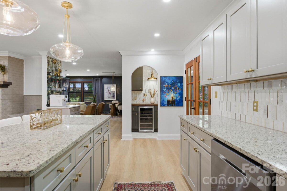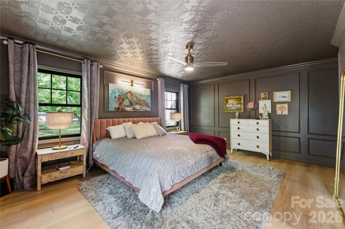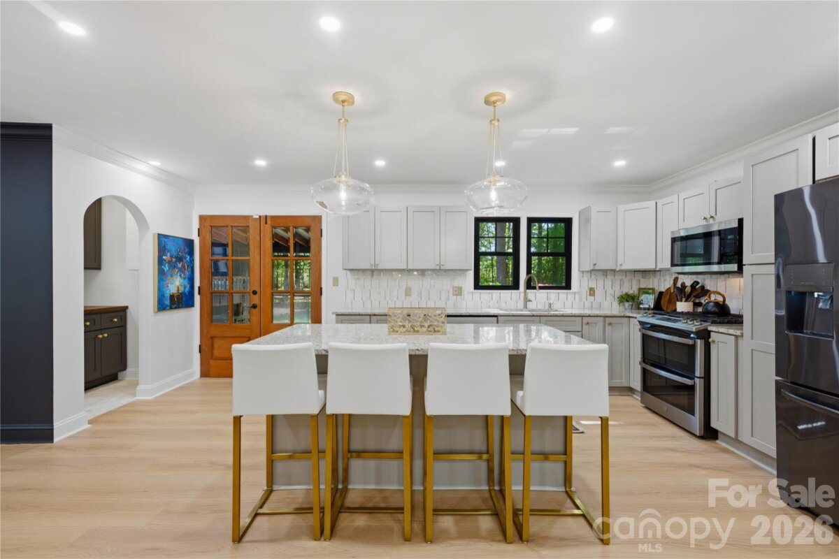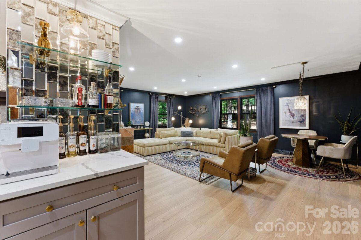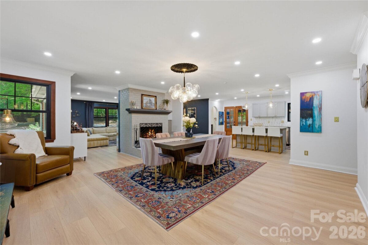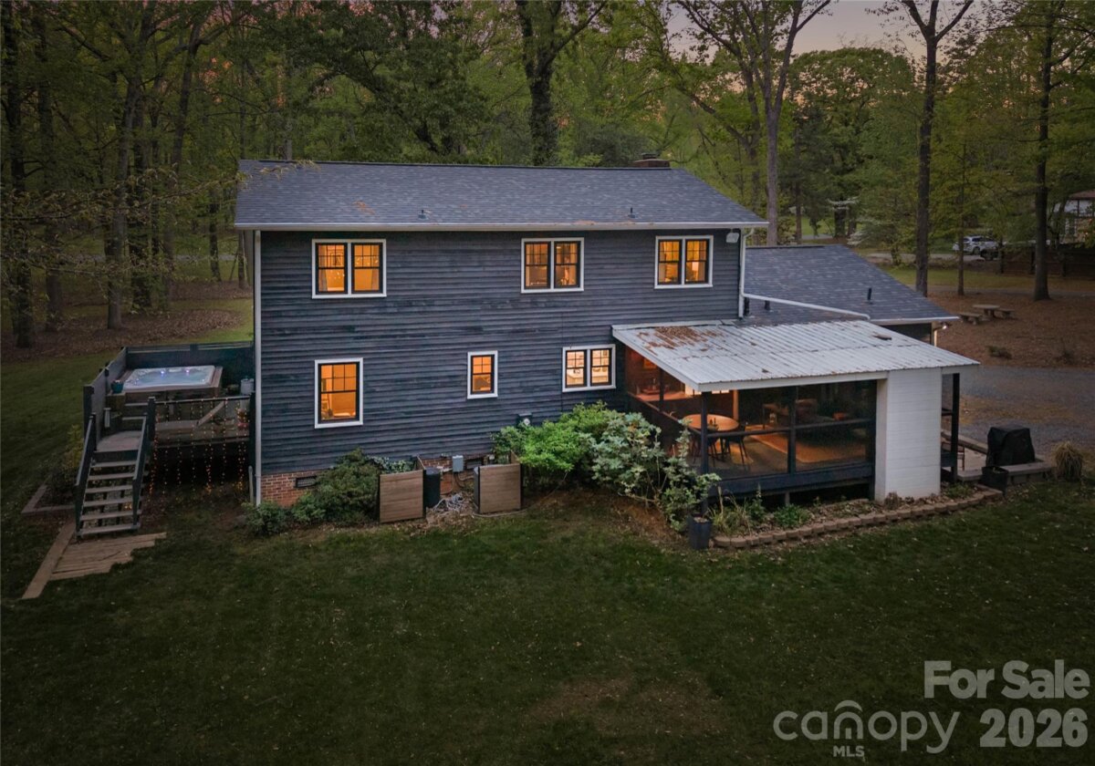 Already extraordinary, this home has now been refined with even more luxurious upgrades. Nestled on 3 wooded acres in Mint Hill, this custom residence offers a rare sense of privacy & serenity while remaining conveniently located inside the 485 loop & just 20 minutes from Uptown Charlotte. Featuring 5 bedrooms, 3 bathrooms, & thoughtful modern enhancements, this property blends tasteful craftsmanship with sophisticated appeal. The kitchen now featuring a new butler’s pantry & new tile backsplash, offering added style & functionality. A tankless gas water heater (2026) has also been installed for enhanced efficiency, comfort, & convenience throughout the home. Showcasing 3 fireplaces—wood, gas, & electric—the home is rich in warmth & character. A covered rocking chair front porch & screened-in back porch with fireplace create inviting spaces to relax & enjoy the peaceful wooded setting. The main level includes both a bedroom and the primary suite, while the three additional bedrooms upstairs provide generous flexibility for guests, a home office, or a flex room if needed. The primary suite also offers direct access to an exceptionally designed hot tub deck, complete with Massaranduba Brazilian hardwood decking & a Caldera Seychelles 7-person saltwater spa. Throughout the home, timeless finishes such as a fireplace built from ancient reclaimed Mediterranean stone, a travertine grilling patio, imported designer wall covering, & elegant lighting create a refined sense of character. Outdoor living is equally inviting, with an oversized fire-pit & fenced-in raised bed garden set within a peaceful wooded setting. Recent improvements include Monotech Monolithic hardwood floors installed in September 2025, an architectural shingle roof (2023), triple-pane windows (2022), mahogany wood doors (2022), a whole home water filtration system, & fully finished 2-car detached garage completed in 2024 with commercial-grade Polyurea flooring.