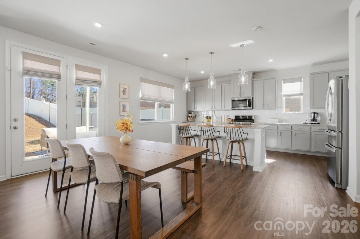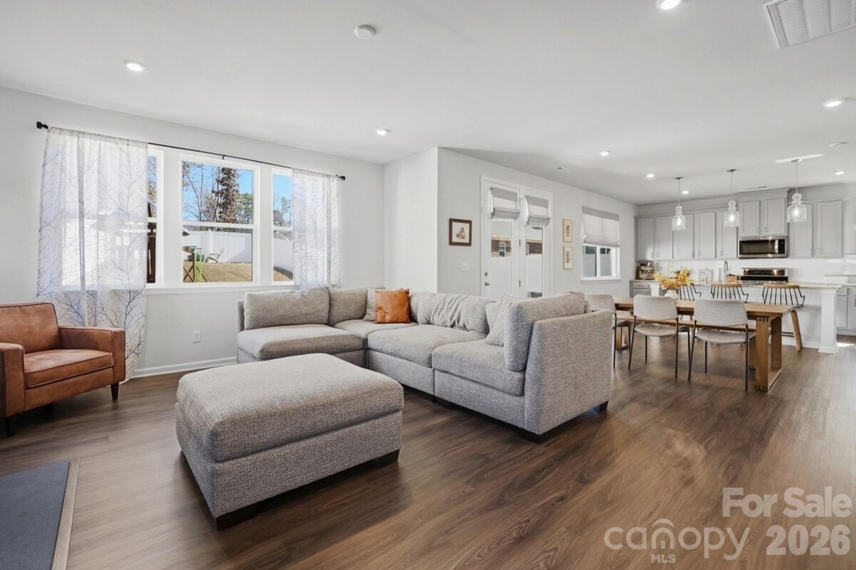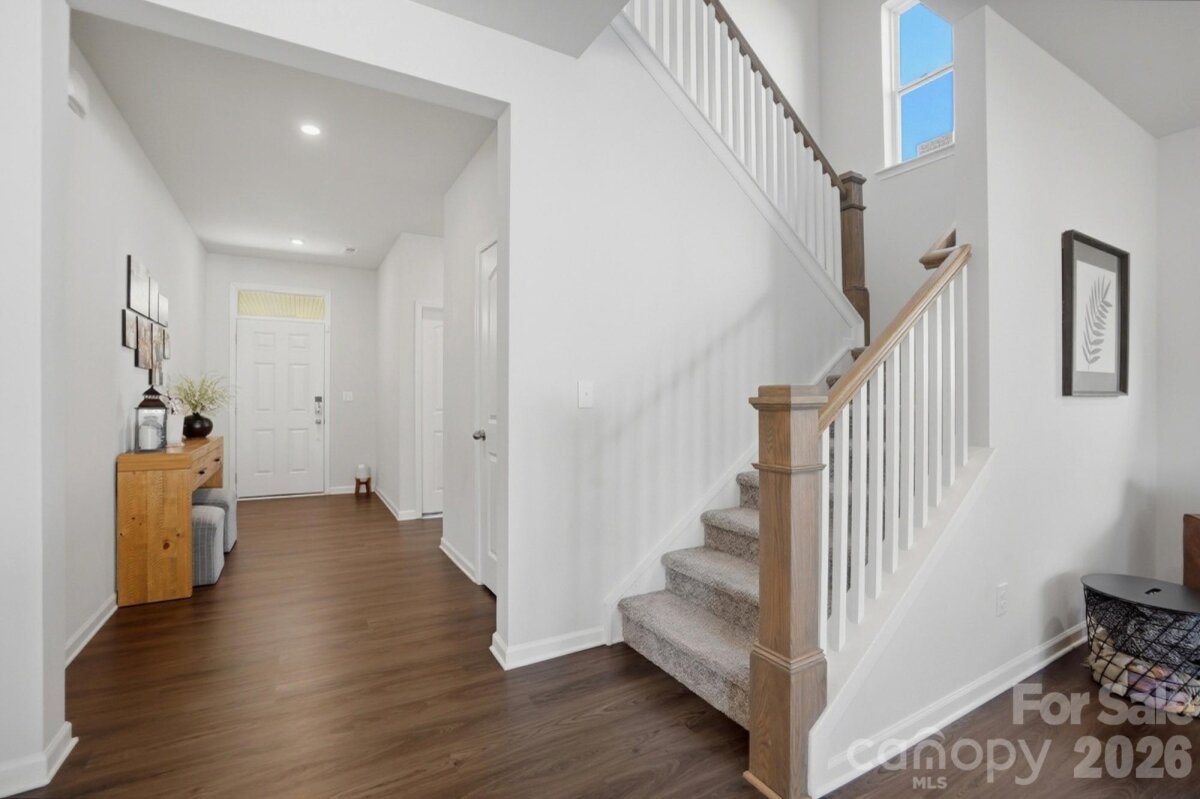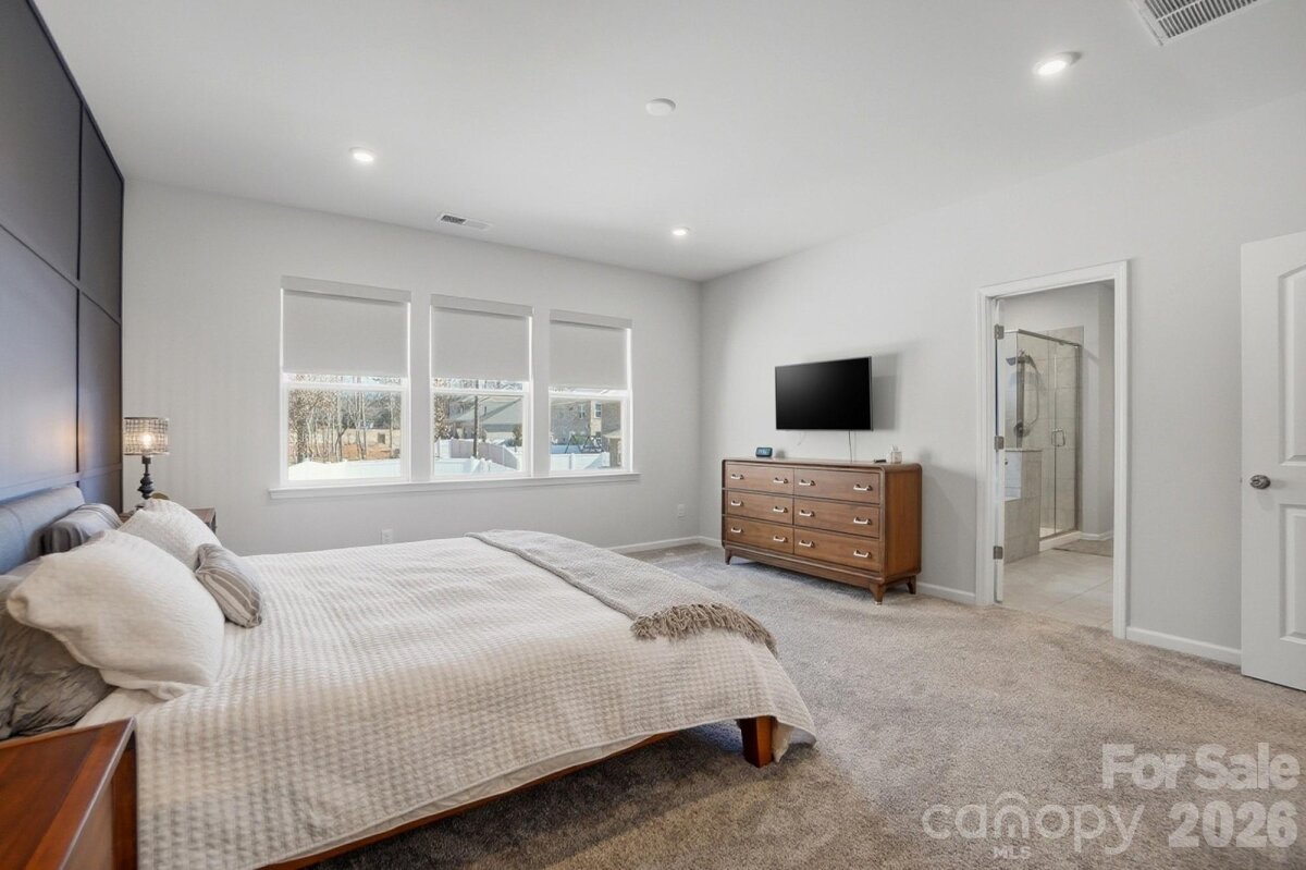 This stunning 5-bedroom, 4-bathroom home built in 2023 is located in the heart of Mint Hill and is ready for you to call home! Step inside from the rocking chair front porch to find the foyer that leads to a cozy great room with fireplace and a gracious dining area that opens to the well-appointed kitchen featuring a large center island with pendant lighting, stainless appliances, gas range, plenty of cabinetry and a generous size walk-in-pantry. Additional main level highlights include a spacious bedroom with a full bathroom and a functional drop zone entry off the garage. On the upper level you’ll find two secondary bedrooms—sharing a full hall bathroom—plus a multipurpose loft and a convenient laundry room. The elegant owner's suite showcases an attached deluxe bath with dual vanities, a benched shower and custom-built walk-in closet. Multiple oversized closets throughout the home provide even more storage. Enjoying the outdoors is easy with a covered rear patio that overlooks the backyard with a full privacy fence. Prime Mint Hill location walkable to downtown Mint Hill where you can enjoy outdoor dining spots & the farmers market!