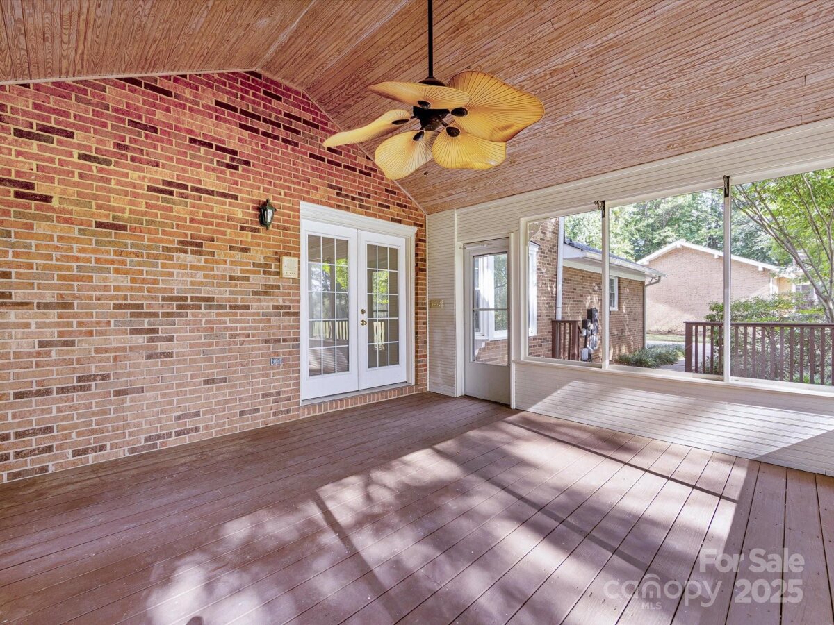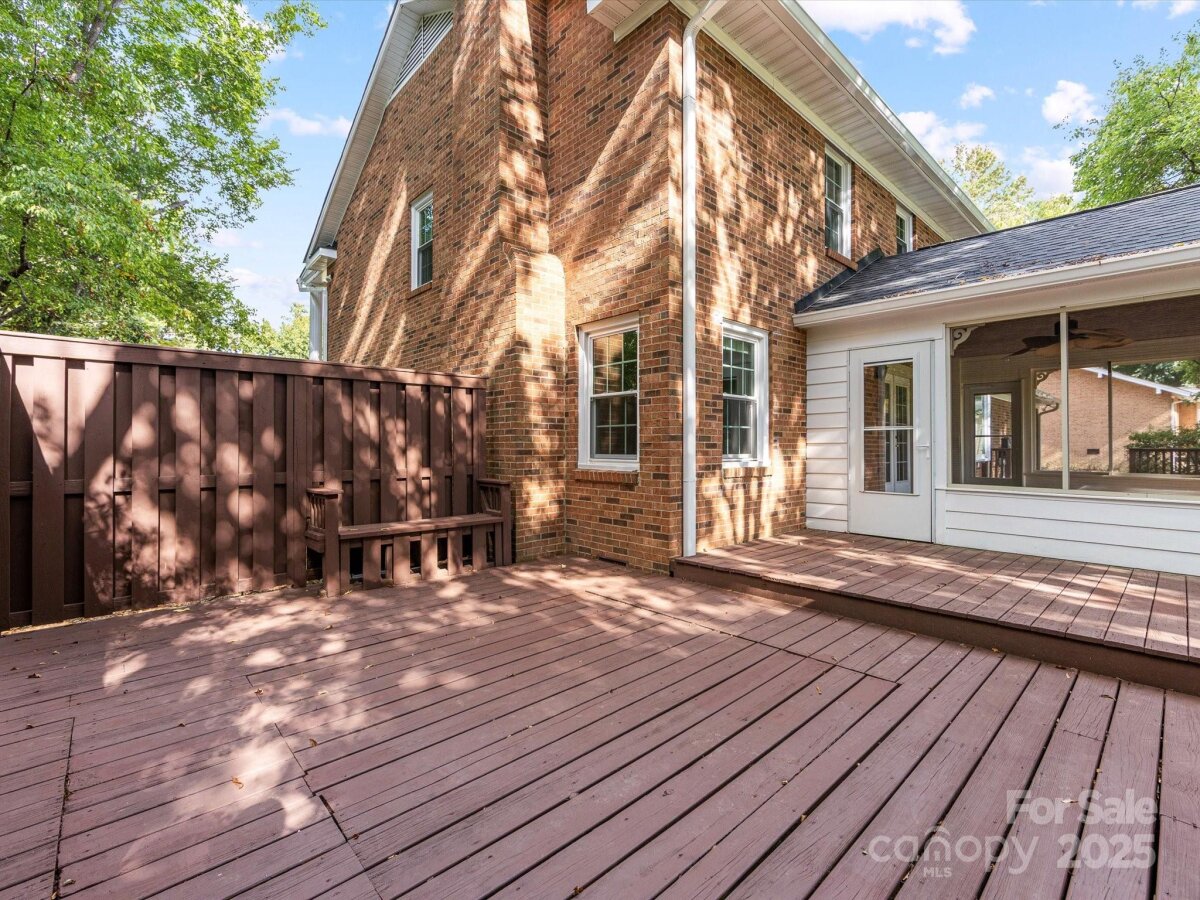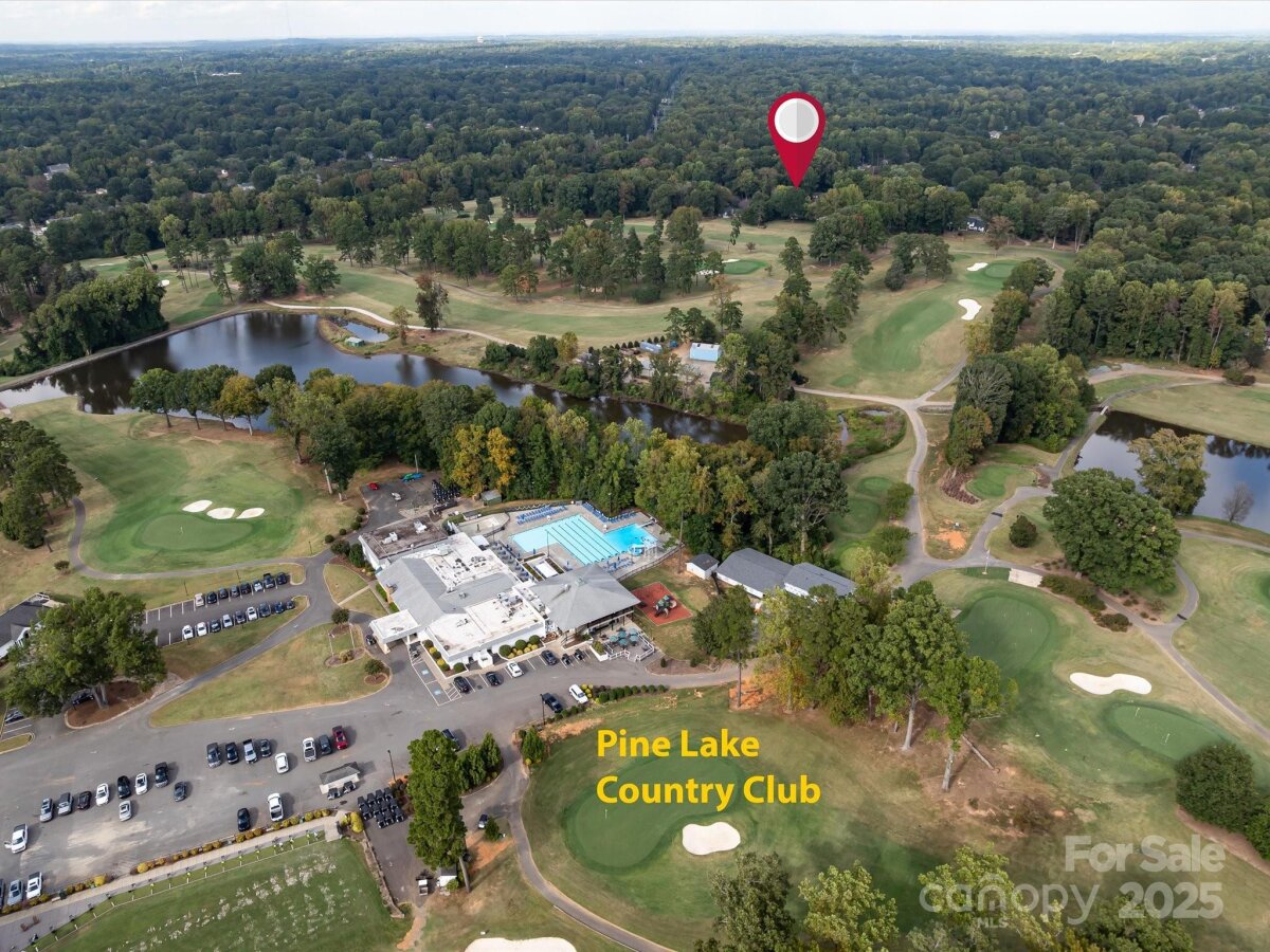 Welcome to your retreat on Pine Lake Country Club’s No.7 green & 2nd fairway, where golf course and lake views create a stunning backdrop. This full-brick, two-story home features a stately covered front porch and circular driveway, offering timeless curb appeal. Inside, you’ll find a formal dining room and a spacious office (or 4th bedroom) with French doors and built-in bookcases. The kitchen is well-appointed with oak cabinetry, granite counters, tile backsplash, NEW cooktop & DW. Newer Microwave and an appliance garage. A bay-window breakfast area overlooks the backyard with sweeping golf and lake views. The family room features LVP flooring, a gas fireplace, and French doors that open to a screened porch with beadboard ceiling and ceiling fan—perfect for relaxing or entertaining. The primary suite includes a tray ceiling, cedar closet, and wood flooring, with an ensuite bath offering dual vanities, a jetted tub, walk-in shower, and tile flooring. Bedrooms two and three are joined by a Jack-and-Jill bath with a walk-in shower. Outdoor spaces include a screened porch, multiple decks (one previously used for a hot tub with wiring still in place), a patio, and a backyard shed. The side-load two-car garage includes a storage room. Recent updates add peace of mind: • New Pella windows (2022) with transferable warranty • Gutters and gutter guards (2022) • Roof with custom cupola and golfer detail (2022) • HVAC gas pack (2016) • Water heater (2016) • Fresh interior paint and exterior porch columns (2024) With utilities and cable lines now underground, the views from the porch and decks are unobstructed and truly remarkable.
