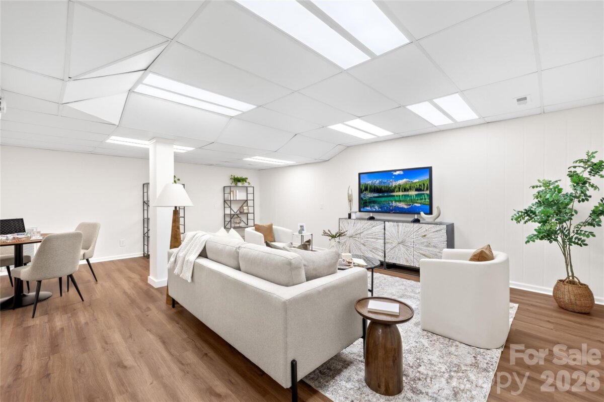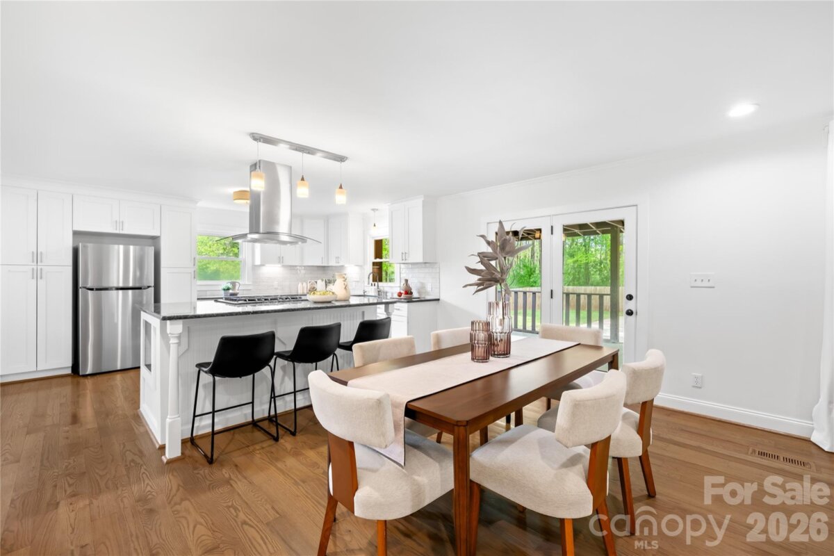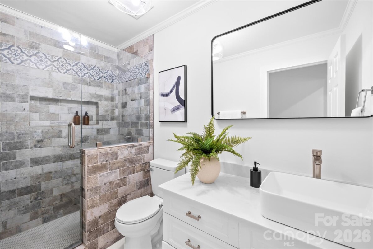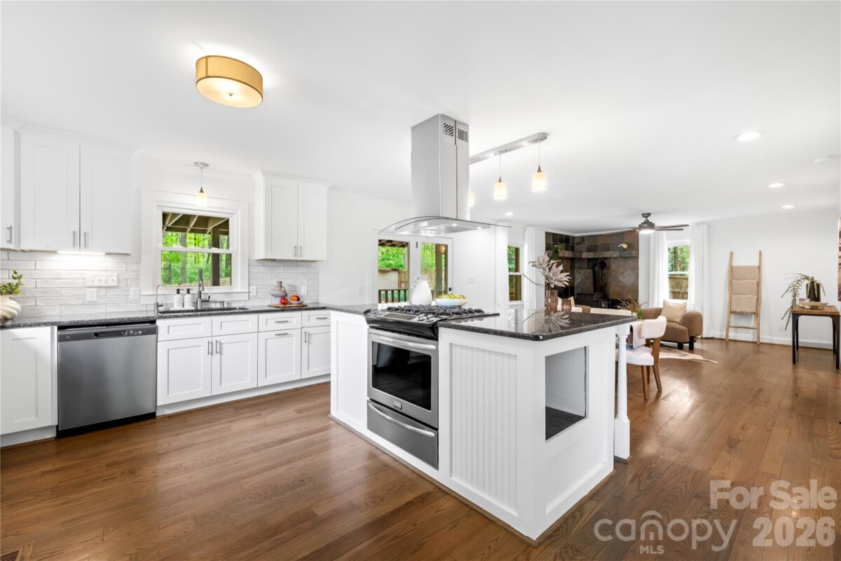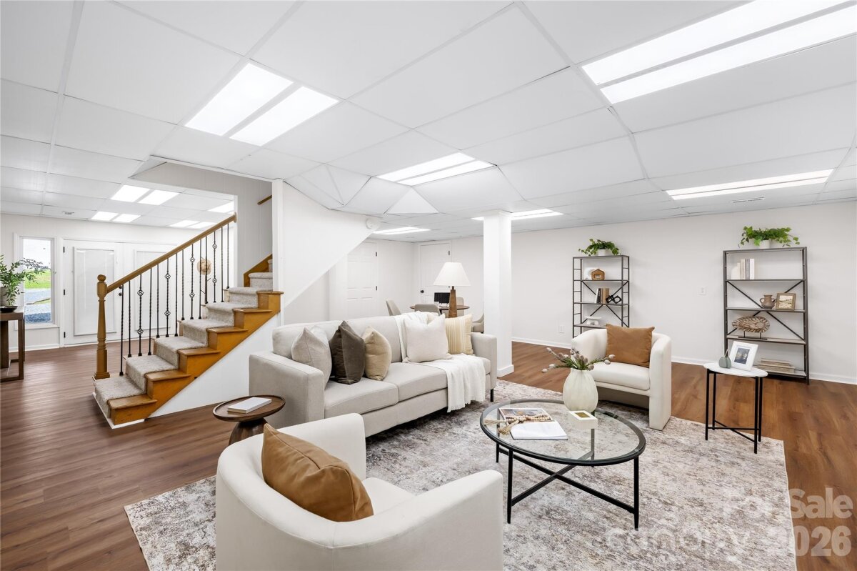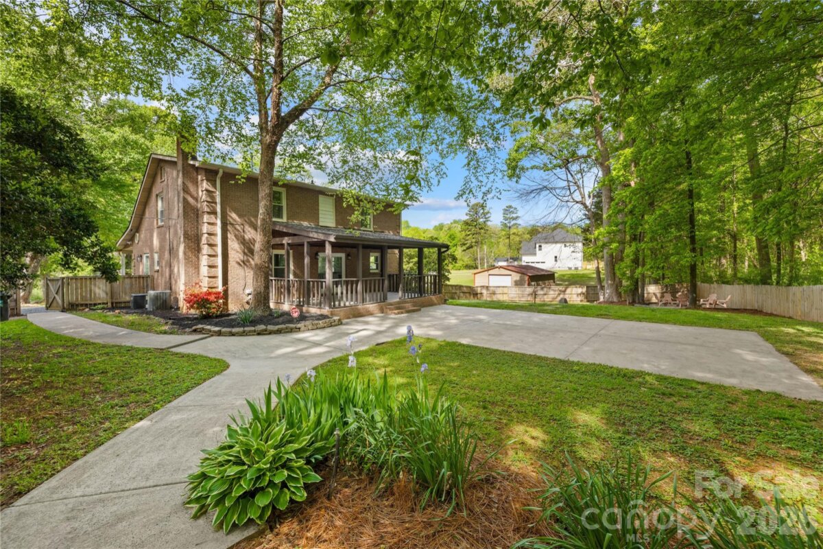 Welcome to 6002 Lake Rd in Mint Hill—recently remodeled and situated on over an acre of no-HOA living, offering the perfect blend of privacy, flexibility, and convenience. This property features two driveways, a fenced backyard, fire pit, and a flat, cleared lot ideal for sports, entertaining, or future expansion. Enjoy peaceful outdoor living from the wide covered front porch or the private covered back deck. Inside, the main level offers a dedicated office and an open layout centered around an oversized kitchen island—perfect for cooking and hosting. Hardwood floors run throughout the main level, with new carpet upstairs and luxury vinyl plank flooring in the fully finished walkout basement. The basement includes a 4TH BEDROOM suite with a separate handicap accessible entrance—ideal for rental income, in-law living, or a private guest space. The layout also provides excellent potential for a kitchenette setup. The primary suite upstairs features a spacious bedroom, walk-in closet, and an updated bathroom with quartz countertops, double vanity, and a newly tiled shower with sliding glass doors. Additional highlights include a detached garage/workshop, covered carport, two functioning wells for the house and supplying water to the garden area, and a recently pumped 3-bedroom septic system. Major updates include a new roof (2026), gas water heater (2022), and stainless steel appliances with a gas range. Located just minutes from I-485 and downtown Mint Hill, this home offers a quiet country feel with easy access to everything Charlotte has to offer!
