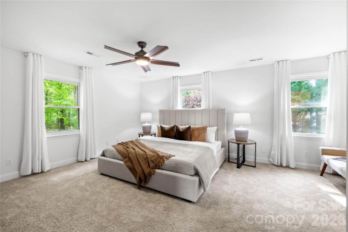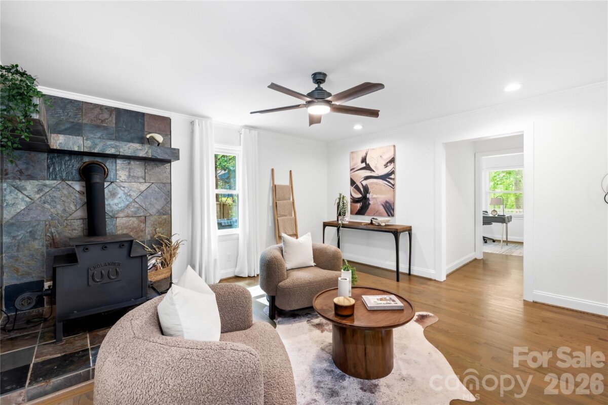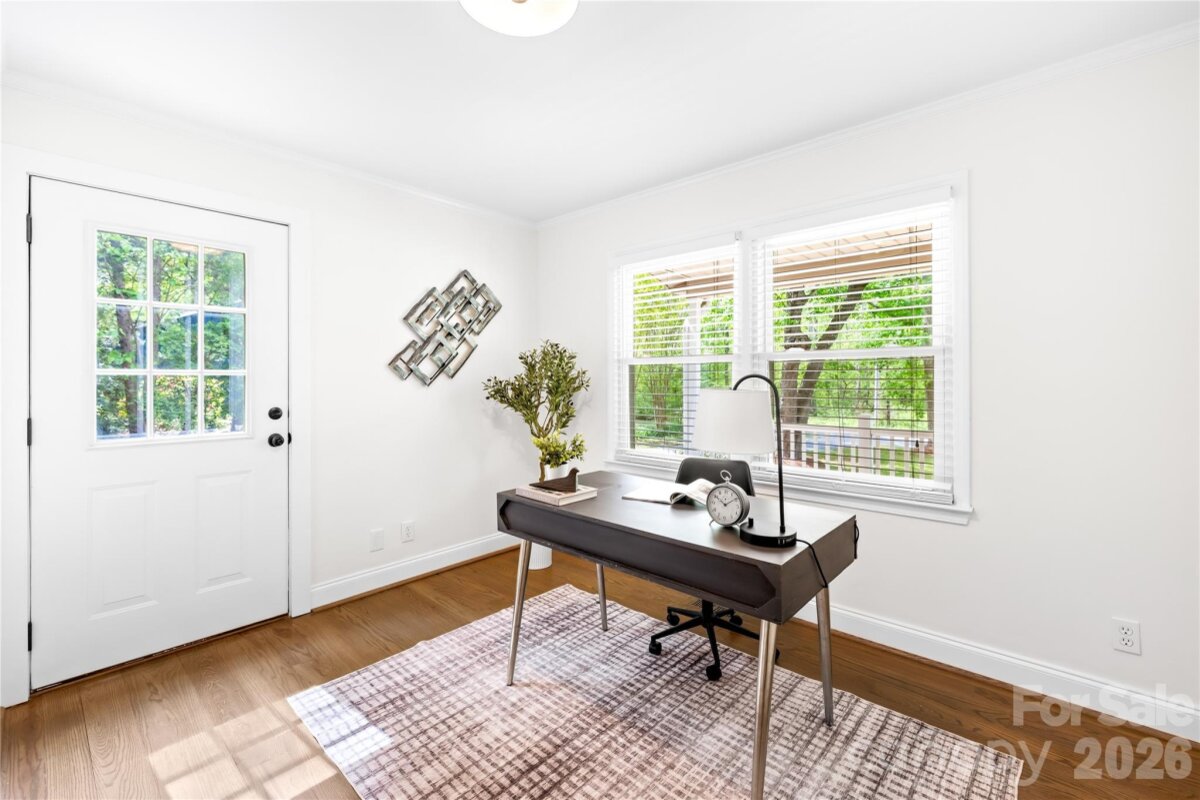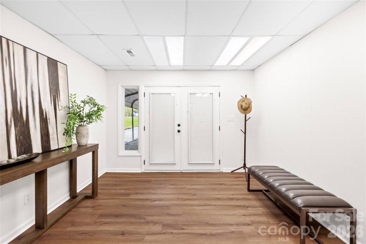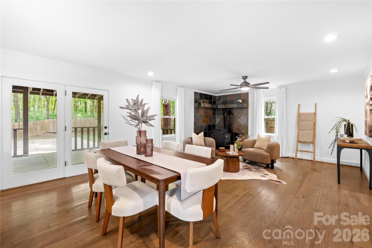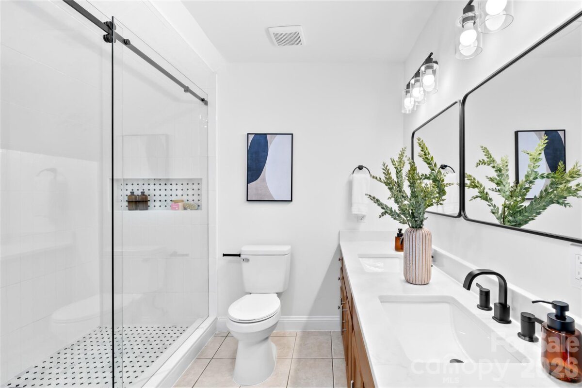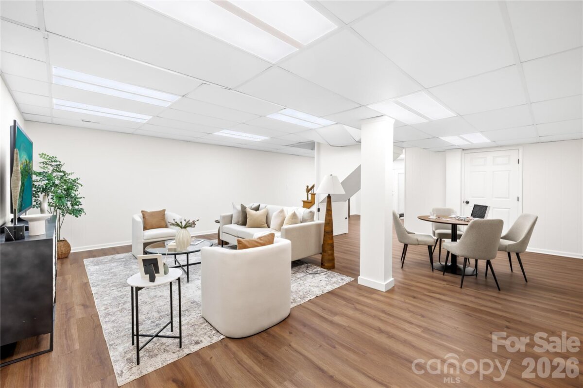 Welcome to 6002 Lake Rd in Mint Hill—recently remodeled and situated on over an acre of no-HOA living, offering the perfect blend of privacy, flexibility, and convenience. This property features two driveways, a fenced backyard, fire pit, and a flat, cleared lot ideal for sports, entertaining, or future expansion. Enjoy peaceful outdoor living from the wide covered front porch or the private covered back deck. Inside, the main level offers a dedicated office and an open layout centered around an oversized kitchen island—perfect for cooking and hosting. Hardwood floors run throughout the main level, with new carpet upstairs and luxury vinyl plank flooring in the fully finished walkout basement. The basement includes a 4TH BEDROOM suite with a separate handicap accessible entrance—ideal for rental income, in-law living, or a private guest space. The layout also provides excellent potential for a kitchenette setup. The primary suite upstairs features a spacious bedroom, walk-in closet, and an updated bathroom with quartz countertops, double vanity, and a newly tiled shower with sliding glass doors. Additional highlights include a detached garage/workshop, covered carport, two functioning wells for the house and supplying water to the garden area, and a recently pumped 3-bedroom septic system. Major updates include a new roof (2026), gas water heater (2022), and stainless steel appliances with a gas range. Located just minutes from I-485 and downtown Mint Hill, this home offers a quiet country feel with easy access to everything Charlotte has to offer!