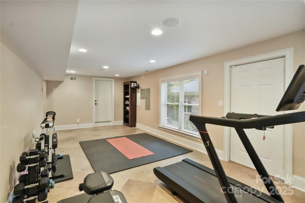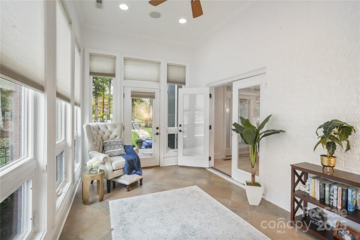 Welcome to "The Queen", a distinguished full-brick custom-built estate offering beautifully designed living space across three levels in the sought-after Olde Sycamore Golf Plantation. Positioned in one of the most desirable locations in the community, this home stands prominently along the main boulevard, directly across the tree-lined entrance path to the golf clubhouse. Overlooking Green #3, it enjoys a prime vantage point surrounded by manicured landscaping and decorative stone retaining walls that enhance its curb appeal. Extensively renovated in 2023-24, this property blends timeless design with modern upgrades, including three new HVAC systems and furnaces, a new water heater, fully encapsulated crawl space, full exterior and interior repaint, resurfaced flooring throughtout, designer lighting, a new privacy fence, custom landscape and new lighting, a flagstone walkway with gas fire pit and more. A grand brick staircase leads to a traditional front porch and an impressive double-height foyer, setting the tone for the interior, defined by flow and sophistication. The main level features a formal dining room, wet bar, and expansive gourmet kitchen with top brands new appliances, seamlessly connected to a white brick sunroom with window treatments. From the kitchen and breakfast area, step out to a covered screened patio and an adjoining deck with a grilling area—perfect for outdoor dining and entertaining. The primary suite on the main floor is a highly desirable feature, offering a generous bedroom, spacious bathroom, custom-built walk-in closet with wardrobes, and an additional walk-in closet for ample storage. A side entrance leads to a functional mudroom equipped with a dog-wash station and laundry area. Upstairs are three bedrooms, each with either an en-suite or Jack-and-Jill bathroom, plus a media/recreation room that could serve as an additional bedroom with its own walk-in closet. The finished basement offers flexible space for entertainment or the potential for a private apartment, with its own exterior access. A large unfinished attic provides additional opportunities for expansion. Outside, the professionally landscaped backyard features new sod, a stone pathway leading to the fire pit, and a peaceful outdoor setting that complements the home’s inviting interior. Within walking distance to community tennis and pickleball courts and the swimming pool, this residence represents a rare opportunity to own one of the most distinctive homes in Olde Sycamore Golf Plantation.