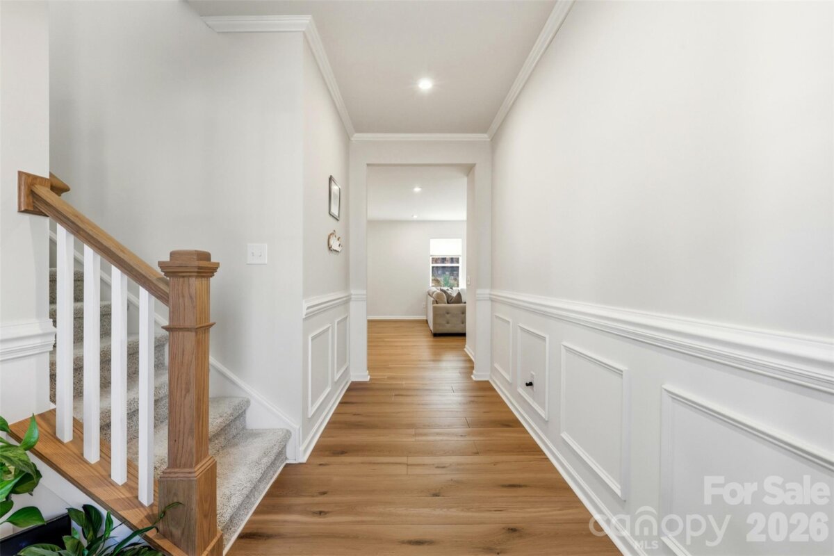 No need to wait for new construction, this like-new full brick home has added ceiling fans, pendant lights, appliances and gutter guards for you! Located in the heart of Mint Hill and still covered under the builder’s structural warranty! Thoughtfully upgraded and move-in ready, it offers the perfect blend of style, function, and peace of mind. The main level features a dedicated office and a show-stopping kitchen complete with a 36" gas cooktop, stainless steel appliances, sleek tile backsplash, quartz countertops, and a spacious walk-in pantry with added under-stair storage. Crown molding in the primary bedroom, bathrooms and entry way adds a polished feel. Step outside to a private 12' x 8' powered screened porch overlooking the trees. Upstairs, a versatile loft provides additional living space alongside three generously sized bedrooms. The upgraded primary suite impresses with a tray ceiling and crown molding, while the spa-inspired bath features an all-tile shower with glass walls. The secondary bath includes an upgraded vanity and tub surround. Enjoy low-maintenance living with a tankless water heater. All appliances, including washer and dryer, convey with the sale. The community offers a scenic pond and recreation area and the location is unbeatable, just minutes from shopping and a variety of dining options.
