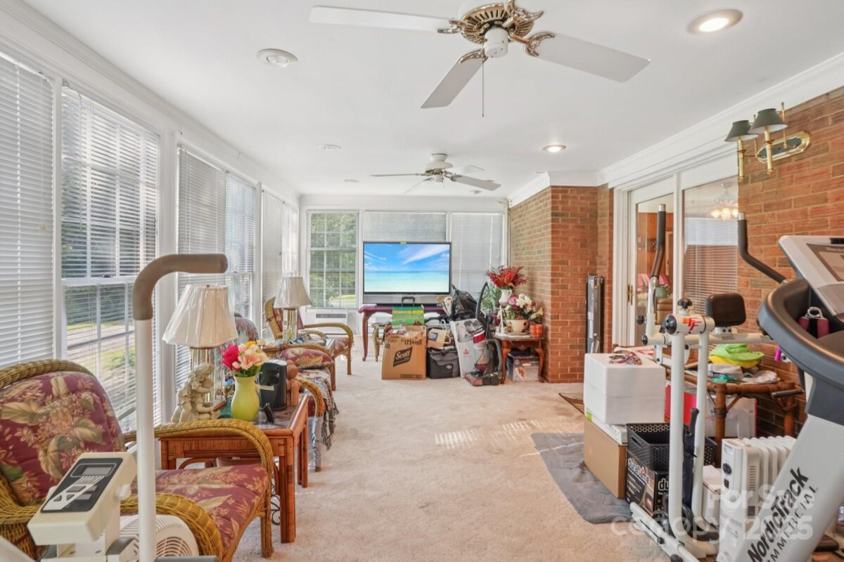This well-maintained brick split-plan home offers plenty of space, flexibility, and updates throughout. The layout includes an in-law suite or private primary suite option, a spacious den with a cozy fireplace, a bright sunroom, a covered patio for outdoor living, and an updated kitchen designed with functionality in mind. The home has been freshly painted on the exterior in August, giving it great curb appeal. Major systems are in excellent shape with new windows installed just 2 years ago, HVAC replaced only 7 years ago, and the roof just 9 years old, offering peace of mind for years to come. The property is ideal for those who need extra storage, workspace, or room for hobbies. A massive 32ft by 40ft barn with 15ft ceilings includes two large garage doors and its own electrical service, making it perfect for a workshop, equipment, or additional vehicles. There is also a 20x20 shop with roll-up door, plus a 3-car carport for even more covered parking. A generator conveys with the home, providing added security during storms or outages. Set on a large lot with mature trees and shrubs, the property offers both shade and privacy. With no HOA, you’ll have the freedom to use the space as you like. This home combines practicality, convenience, and thoughtful updates, making it move-in ready with plenty of extras that are hard to find.