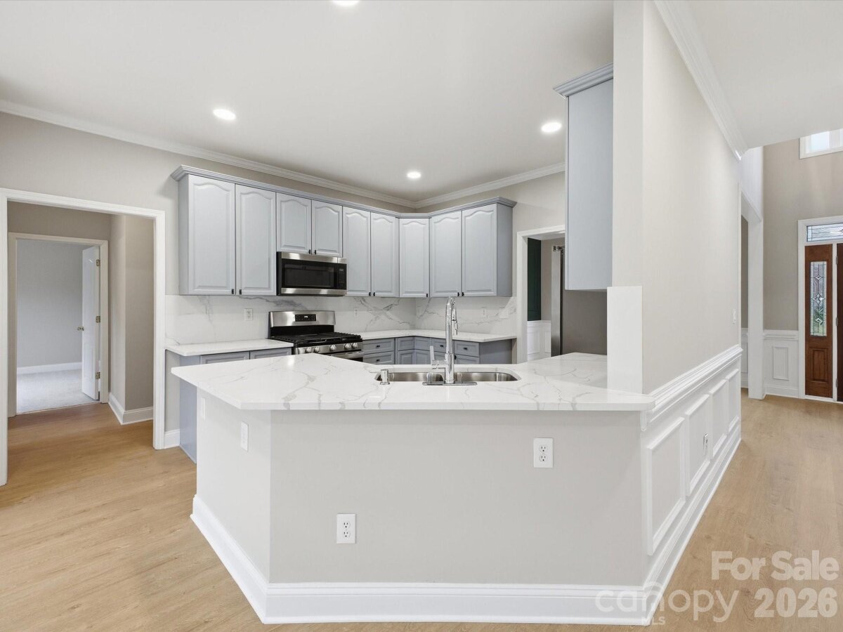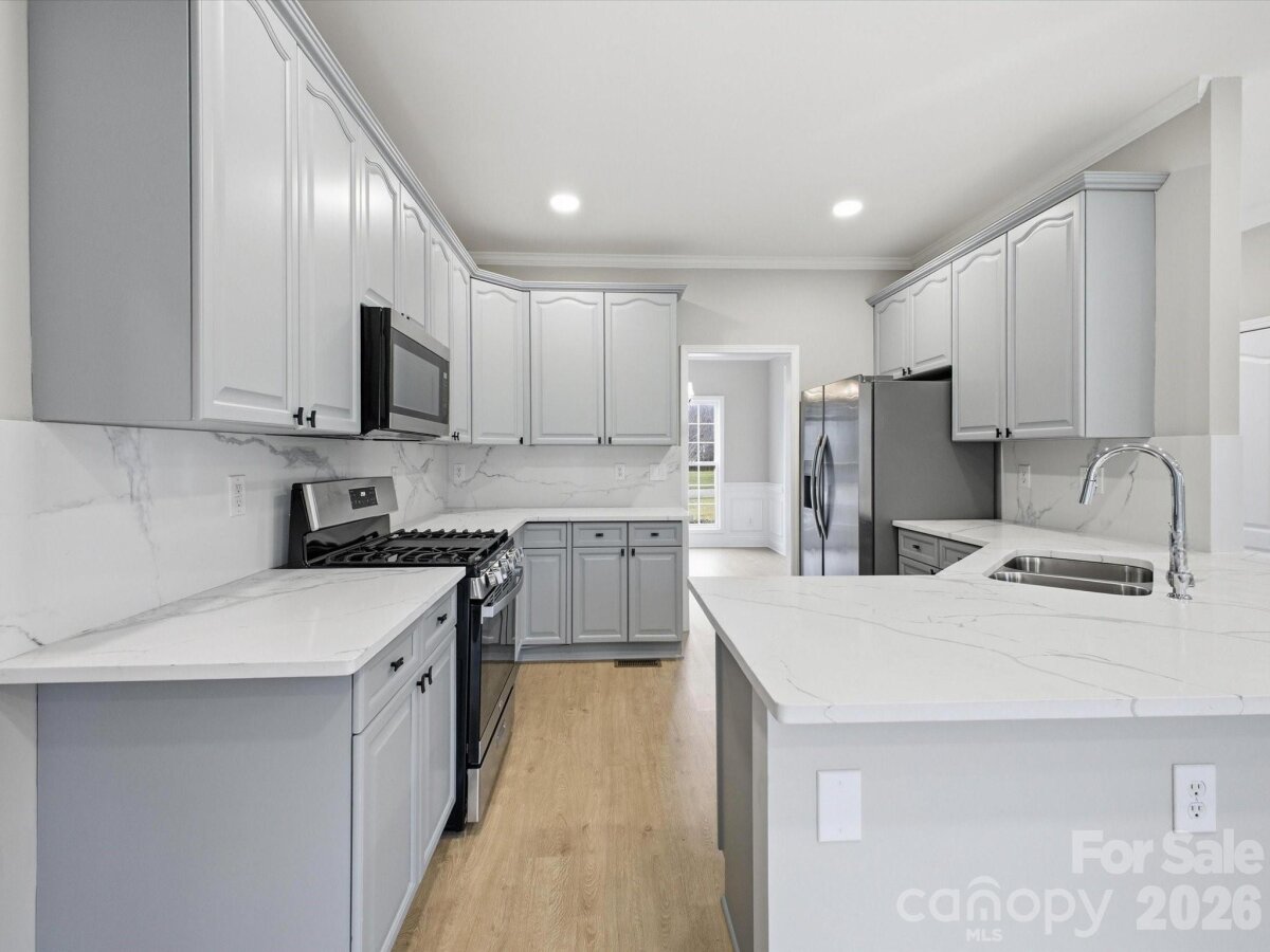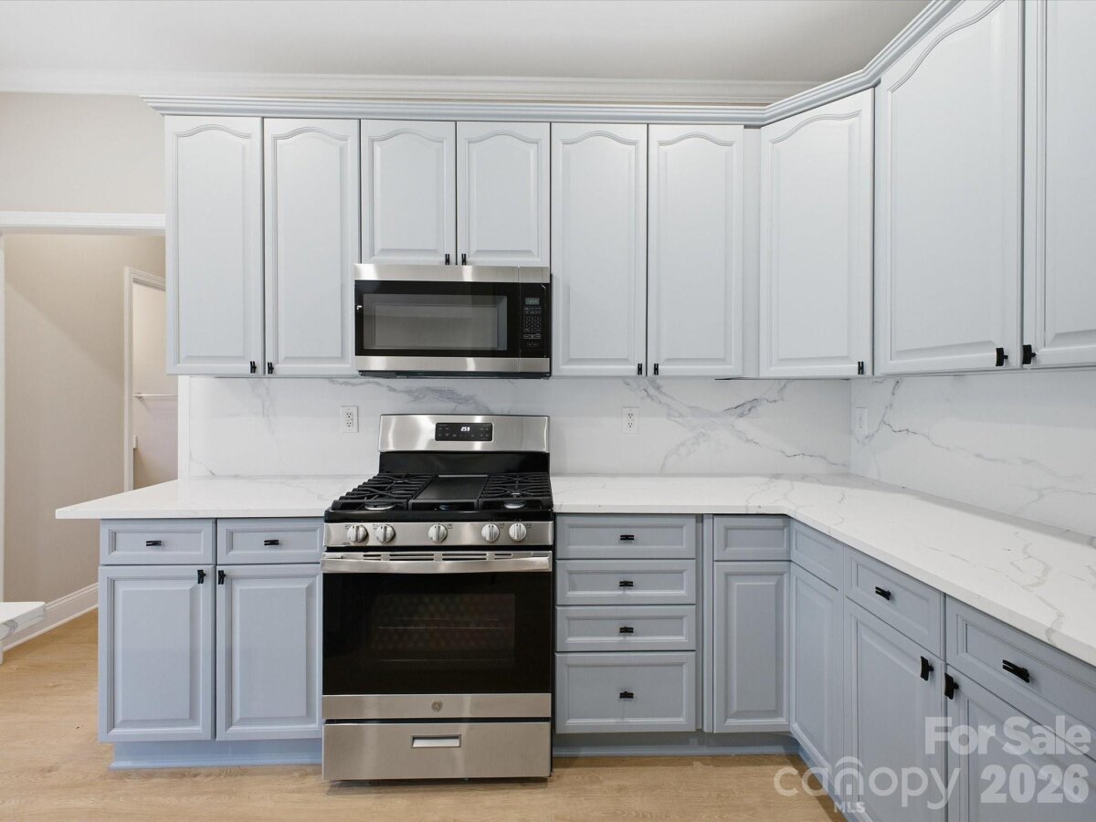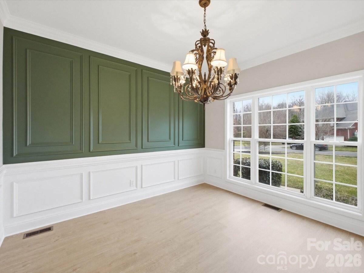 Tucked into the tranquil, tree-lined neighborhood of Oxfordshire in Mint Hill, this fully renovated full-brick beauty is the definition of move-in ready and modern-living goals. Sitting proudly on a spacious corner lot just under half an acre, the home immediately stands out with its classic curb appeal, side-load garage, and rebuilt back deck welcoming you in at any entrance. Step inside and you’re greeted by new hardwood floors that flow seamlessly through the main level, instantly giving the home that modern, magazine-worthy feel. Just off the foyer, a flex room with an accent wall and picture frame wainscoting creates the perfect space for a home office, lounge, or studio—elevated with designer details that make it anything but ordinary. The formal dining room makes a statement of its own, featuring a unique chandelier and chic two-tone accent wall with picture frame wainscoting, setting the tone for unforgettable dinner parties and gatherings. The fully renovated kitchen is the heart of the home, curated for both style and function. New appliances, gas range, sleek countertops, and a fresh backsplash are paired with a breakfast bar that’s ideal for quick bites, morning coffee, or casual entertaining & perfect for the home chef. Just beyond, the living area is anchored by a cozy gas fireplace, creating a warm, inviting space for everyday living. A full bedroom on the main floor offers true flexibility—perfect for guests, or a private office setup. Upstairs, the home takes on a quiet, restful feel. The spacious primary suite features a trey ceiling and a large walk-in closet, offering plenty of room to unwind and stay organized. The ensuite bathroom includes a glass-enclosed shower and a stand-alone soaking tub, creating a comfortable space to relax at the end of the day. A large bonus room with an additional sitting area can easily function as a media room, game room, or hobby space. The laundry room is also located on the second floor for added convenience. All bathrooms in the home have been updated, giving the spaces a clean and consistent look throughout. Outside, the rebuilt back deck extends your living space and is ready for grilling, hosting, or simply unwinding while overlooking your just-under-half-acre lot. The corner setting offers extra yard space and a sense of privacy, all within a community that keeps costs low with an HOA of only $125 annually. Modern convenience continues with a smart garage door opener that connects directly to your phone, adding everyday ease to your routine. Located in peaceful Oxfordshire, this home checks every box—fully renovated, 5 true bedrooms, multiple flex-spaces, and a prime Mint Hill location with easy access to I-485. You’re just minutes from downtown Mint Hill’s restaurants, shopping, and everyday essentials, making this property the perfect blend of style, space, and convenience.