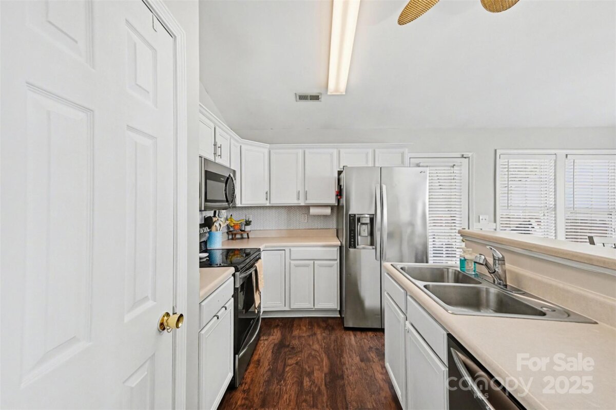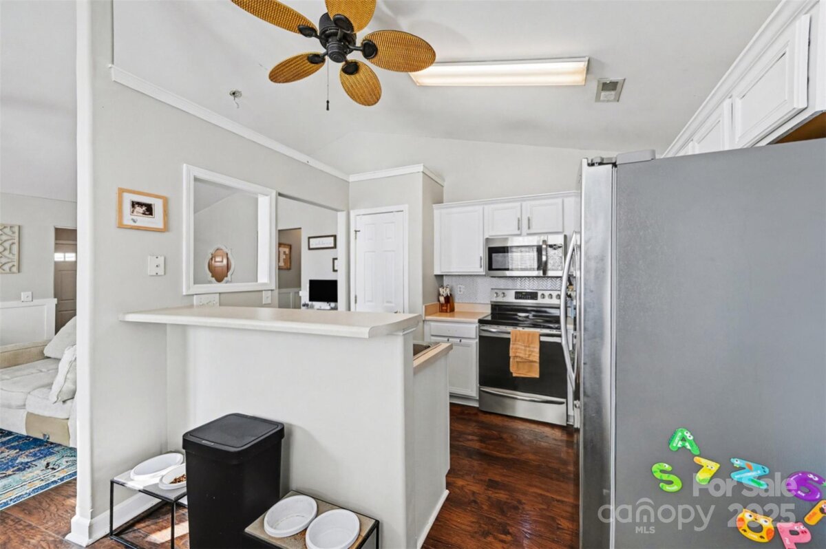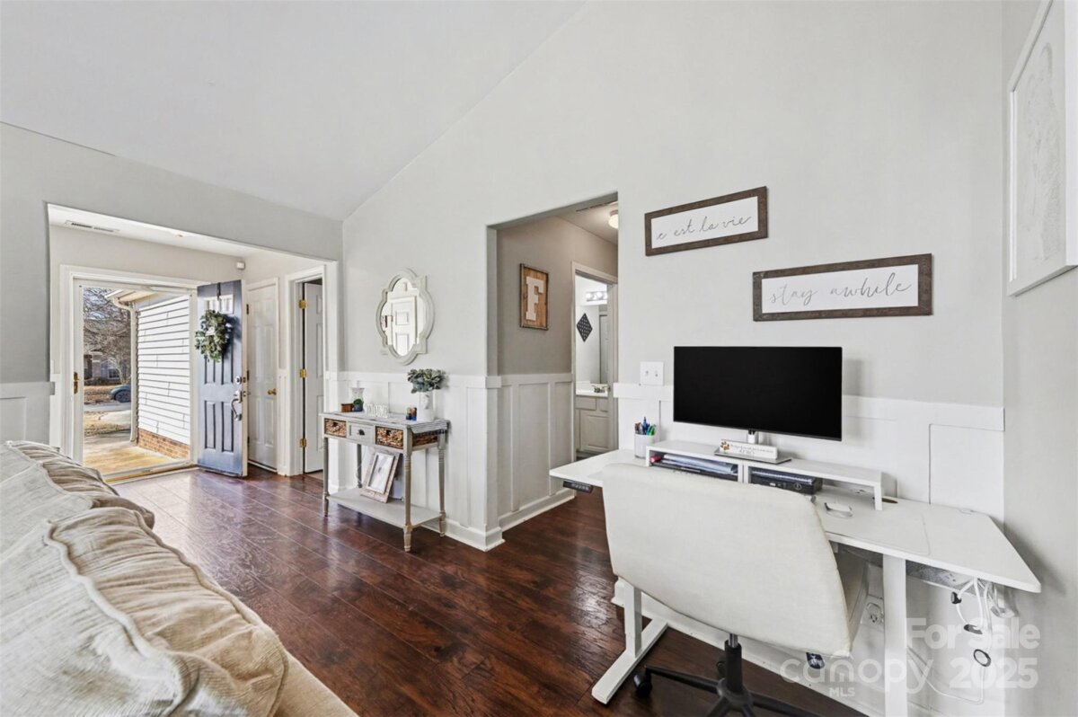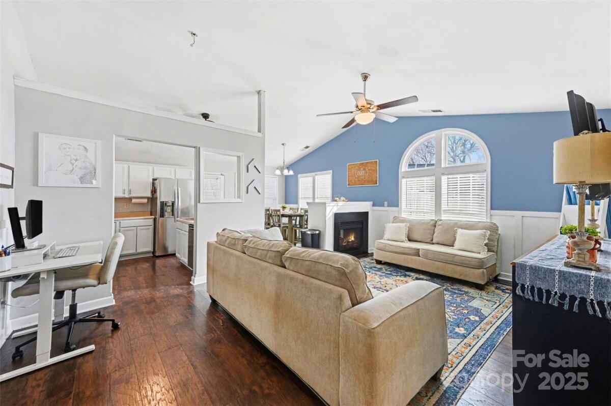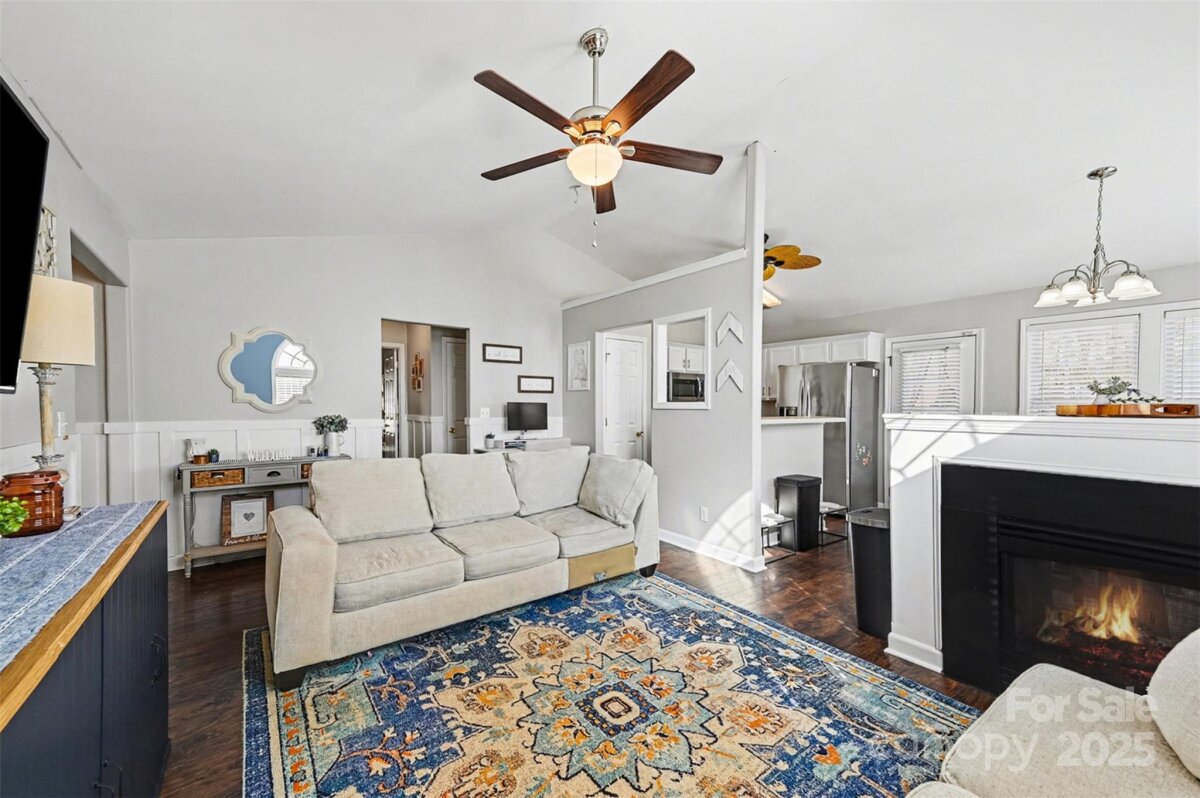 Welcome home to this beautifully maintained 3-bedroom, 2-bath ranch-style home nestled in a quiet Mount Holly neighborhood. Offering easy one-level living, this inviting residence blends comfort, style, and functionality—perfect for today’s lifestyle. Step inside to a bright, open living space with vaulted ceilings, updated lighting, and rich flooring throughout. The spacious living room flows seamlessly into the dining area and kitchen, making it ideal for both everyday living and entertaining. The kitchen features white cabinetry, stainless steel appliances, ample counter space, and a breakfast bar, all overlooking the main living area for an open, connected feel. The primary suite is generously sized and includes a private en-suite bathroom with a modern, tiled walk-in shower, updated vanity, and abundant natural light. Two additional bedrooms provide flexibility for guests, flex space or a home office and share a well-appointed secondary bathroom. Enjoy cozy evenings by the fireplace, and take advantage of the thoughtfully designed bonus spaces perfect for remote work or play areas. Outside, the level yard offers room to relax, garden, or entertain, while the attached two-car garage adds convenience and storage. Located just minutes from downtown Mount Holly, shopping, dining, parks, and major highways, this home combines suburban charm with everyday accessibility. Move-in ready and full of warmth—this is one you won’t want to miss!