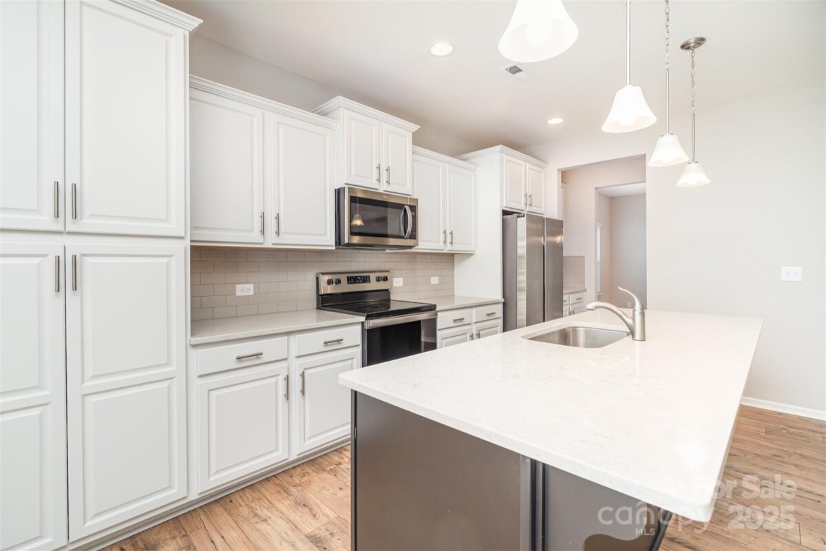 Move right in to this beautifully upgraded ranch home in Arbordale! Built in 2022, this 3-bed, 2-bath home features 9' ceilings, an open layout, and premium finishes throughout. The heart of the home is its gourmet kitchen, complete with a stylish backsplash, a large, eat-in island, butlers pantry, and a large pantry closet — as well as 2 additional dining areas for convenience. Well-lit living spaces flow into a rear, screened-in porch with dual ceiling fans, creating a seamless indoor-outdoor experience. An oversized laundry room and well-designed layout make daily living easier and more enjoyable. The primary bath includes double sinks, a spacious shower, linen closet & walk-in closet. The 2nd & 3rd bedrooms are sizable and the 2nd full bathroom features a tub for ease. Floors are a mix of plush carpet in the bedrooms & living room, and durable engineered hardwood and tile throughout the rest of the home. Outside, you'll appreciate a two-car garage and a well laid out lot that backs up to woods. Enjoy additional privacy as these woods are protected as Stanley Creek Forest Conservation Area! Nestled in the newly built Arbordale community by reputable builder True Homes, you're well positioned for proximity to local amenities and access to downtown Mount Holly, Belmont & Stanley. This home delivers the best of low-maintenance, stylish living.